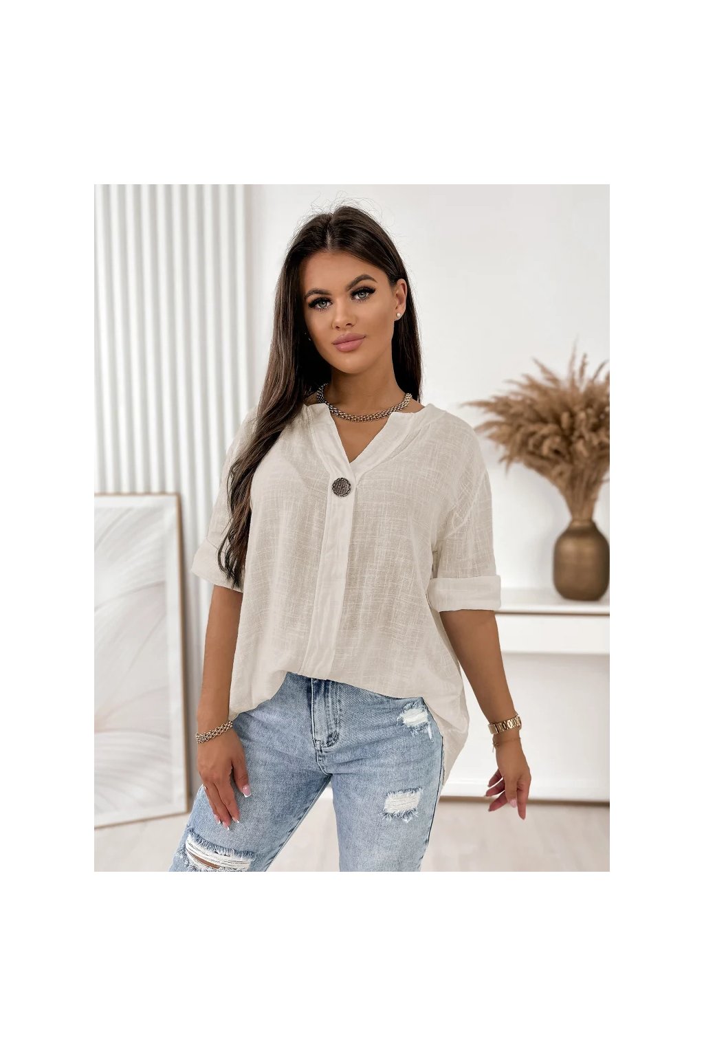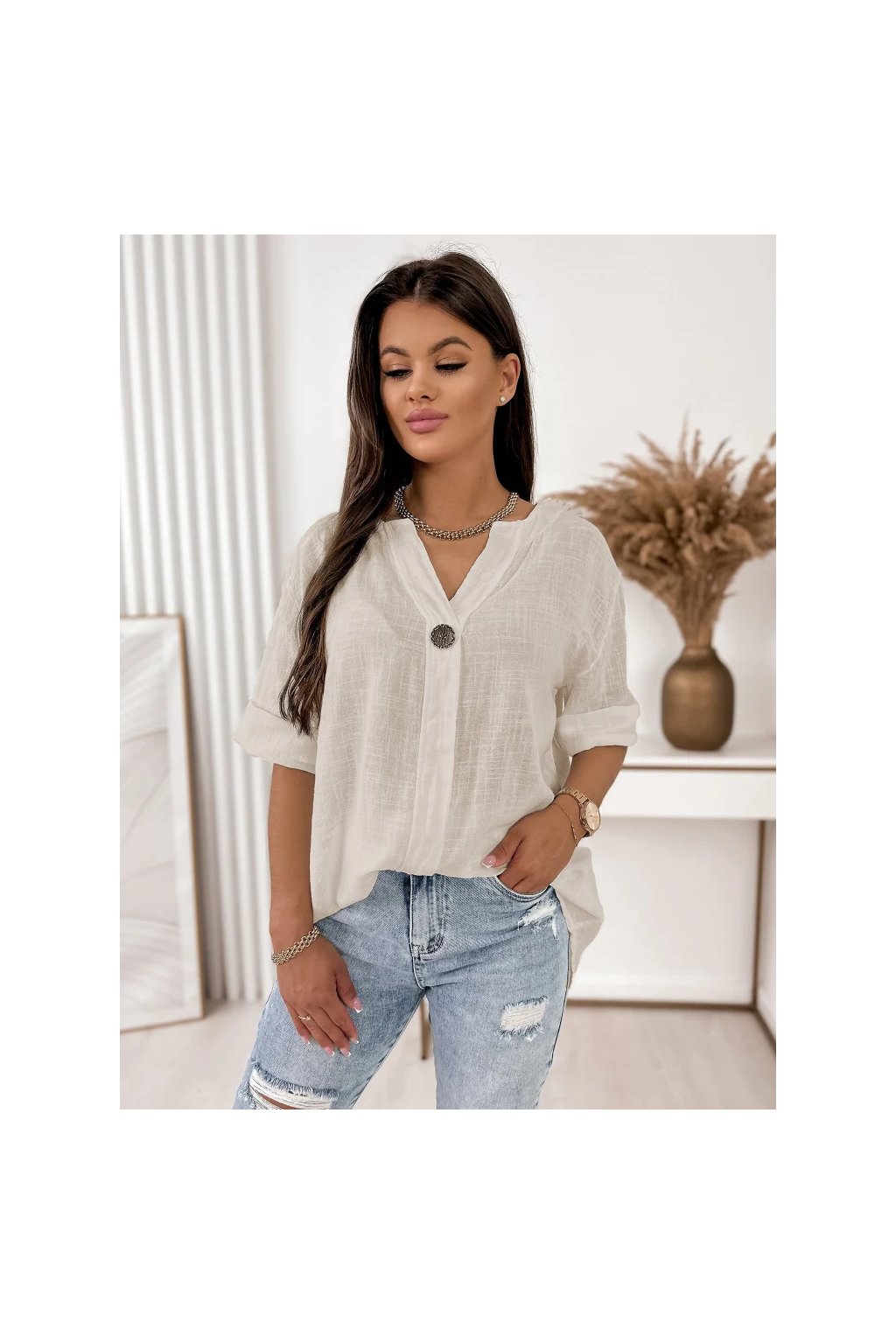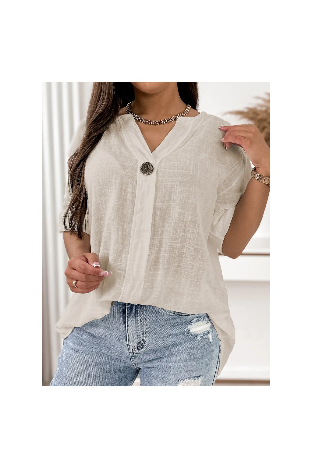 Perfektne sa kombinuje s džínsami, ľanovými nohavicami alebo sukňou – ideálna do mesta, na dovolenku aj na každodenné nosenie.