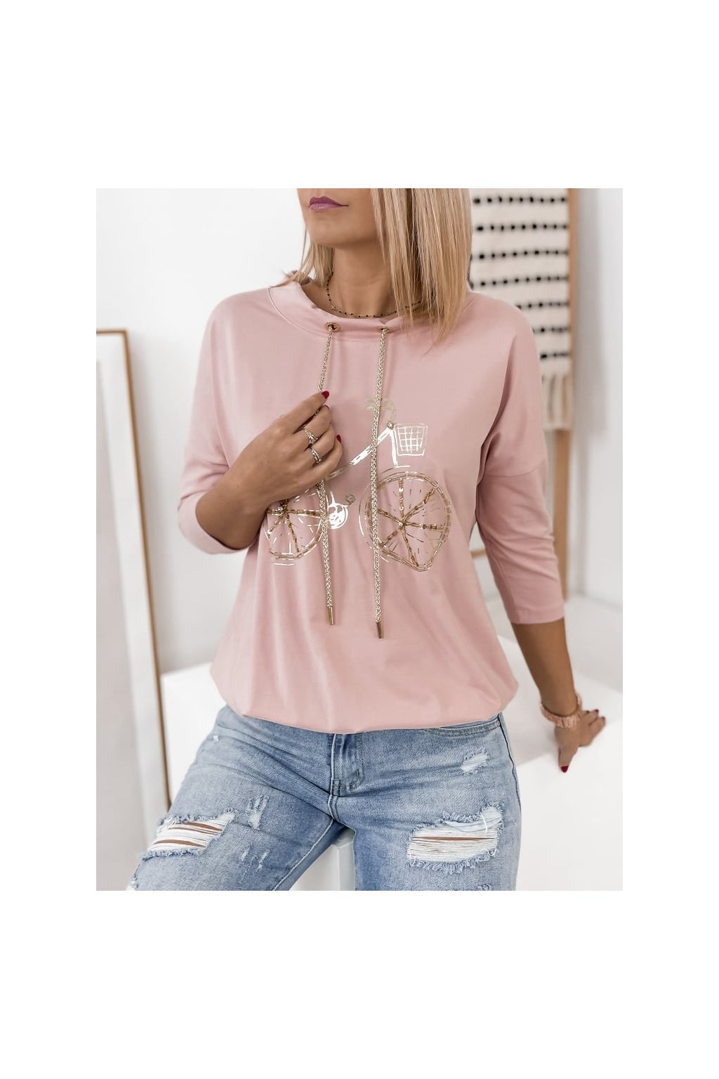 Štýlová dámska mikina/blúzka so zlatou potlačou bicykla je skvelou voľbou na každý deň.