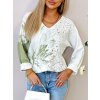Svetrová blúzka z kvalitného príjemného materiálu. Očarujúce dámsky sveter v ležérnom dizajne s výstrihom do V Jedinečná blúzka s dlhým rukávom zdobená kvetinovou potlačou a zlatými metalickými detailmi.