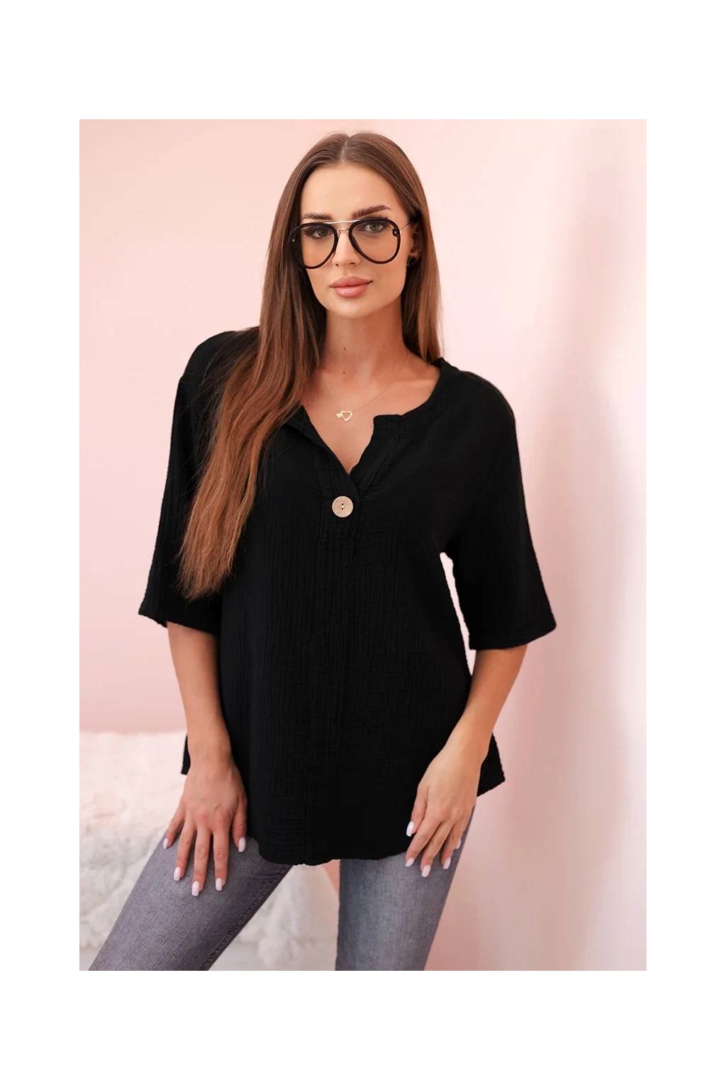 Italská Košilová halenka z lehké a příjemné bavlny.Krásná bavlněná halenka volného střihu, skvělá kvalita. Ozdobný knoflík v oblasti výstřihu dodává charakter. Zadní díl halenky je delší než přední, rukávy jsou 3/4 dlouhé. Je to perfektní základ pro mnoho každodenních stylingů a další. Materiál se nevytahuje
