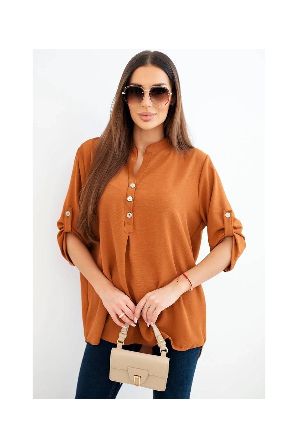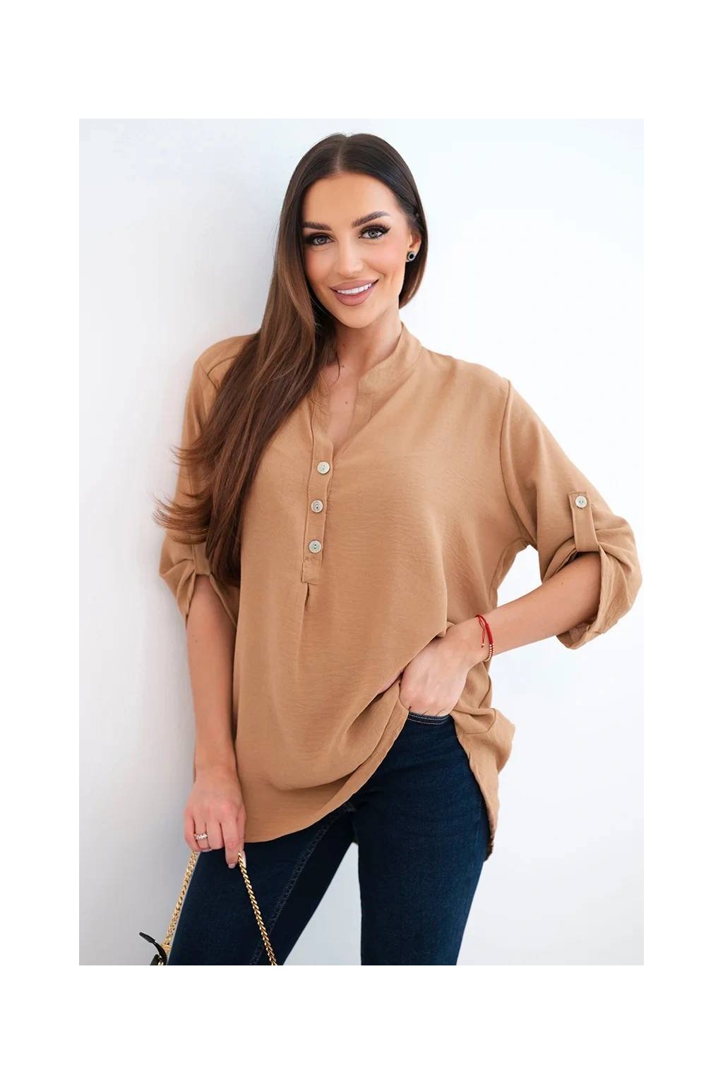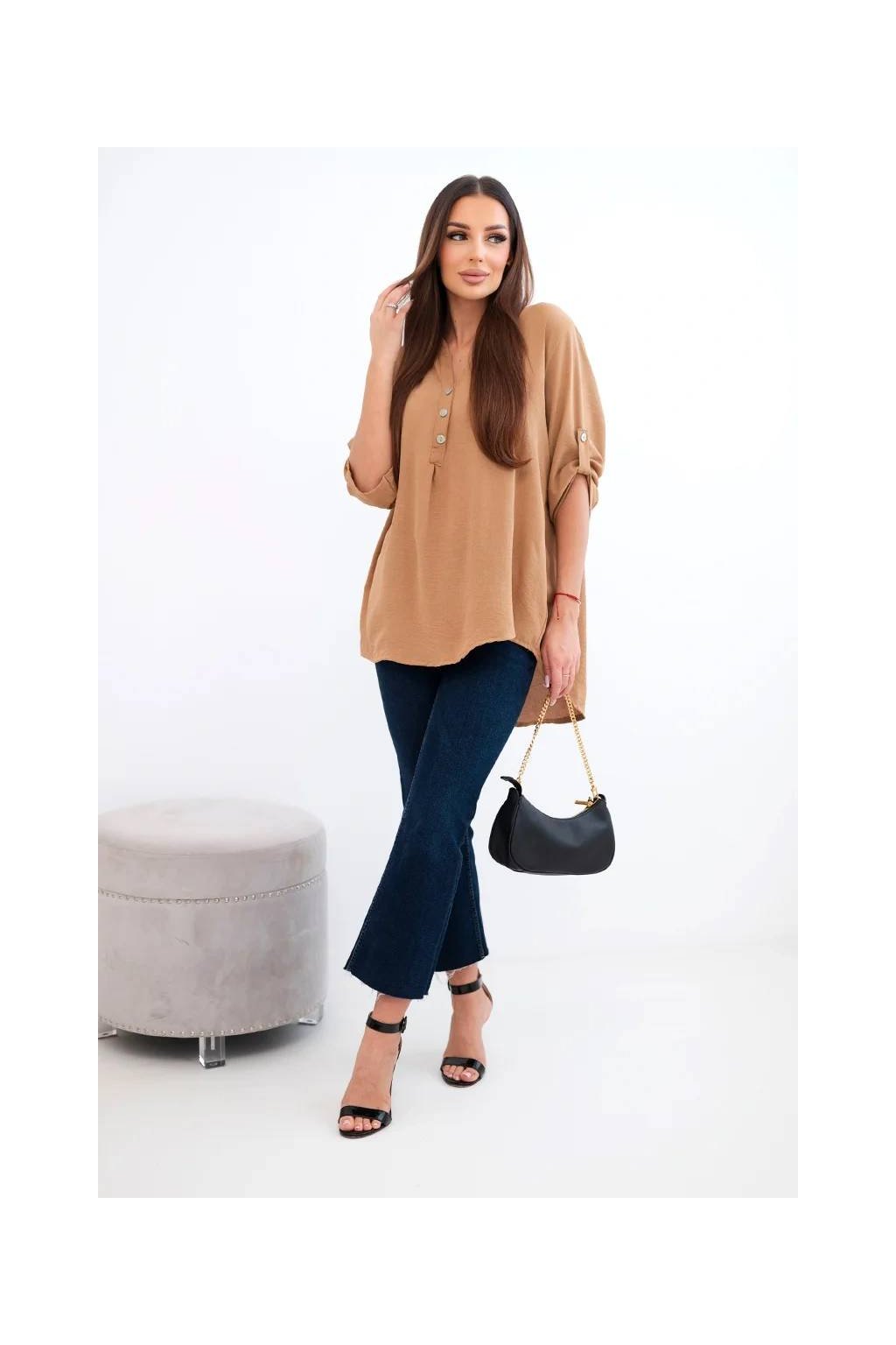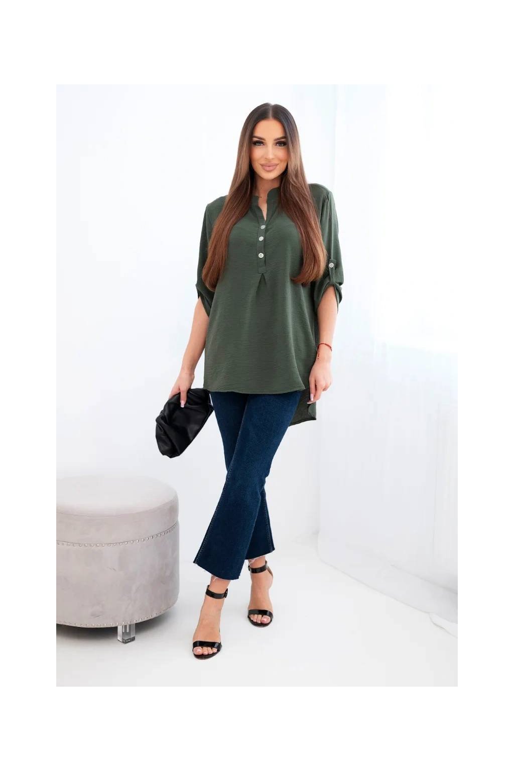 Talianska blúzka ležérneho strihu a krátkymi rukávmi v módnych farbách. Blúzka s dlhším zadným dielom, výstrihom na gombíky. Materiál je jemný, vzdušný a ideálny pre teplé dni. S ním vytvoríte mnoho nadčasových štylizácií.
