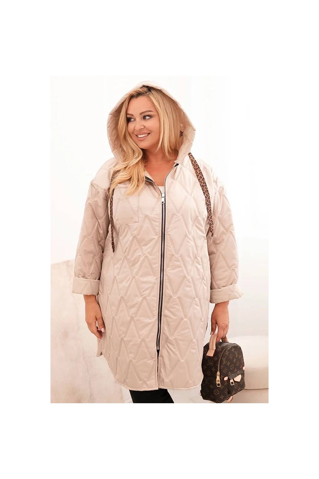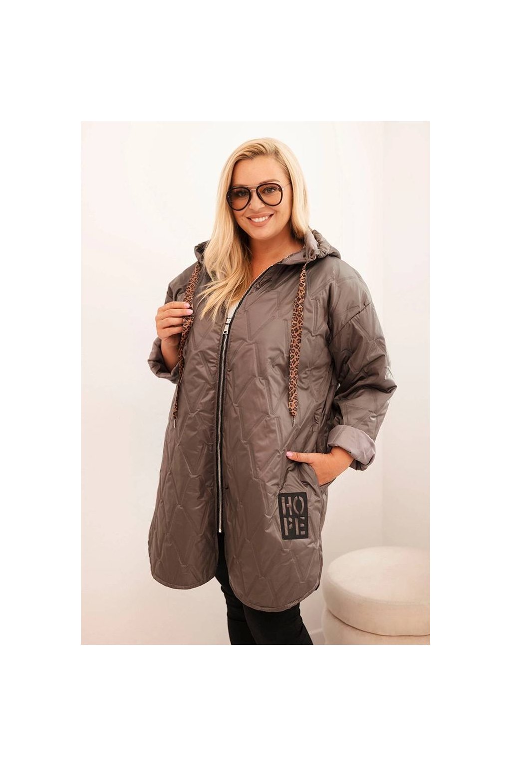 Stylová dámska prešívaná bunda vo veľkosti plus size je vynikajúcou voľbou pre ženy nosiace väčšie veľkosti – od XL do 4XL. Jej voľný, oversized strih zabezpečuje maximálny komfort nosenia a skvele sa prispôsobuje postave, neobmedzujúc pohyb. Model sa vyznačuje geometrickým prešívaním, ktoré opticky zoštíhľuje postavu, a módnou kapucňou so sťahovacou šnúrkou v leopardom vzore. Zips a praktická náprsné vrecko podčiarkujú moderný a funkčný charakter bundy.