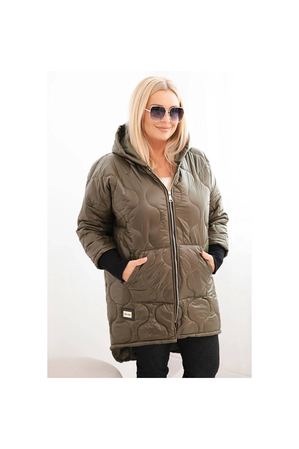 Teplá a štýlová dámska bunda Plus Size s moderným, asymetrickým strihom a predĺženým zadným dielom. Model vyrobený z prešívanej látky, ideálny na chladnejšie dni. Má praktickú kapucňu, zips po celej dĺžke a pohodlné sťahovače na rukávoch. Skvele sa hodí do každodenných outfitov – ako k nohaviciam, tak aj k legínam.