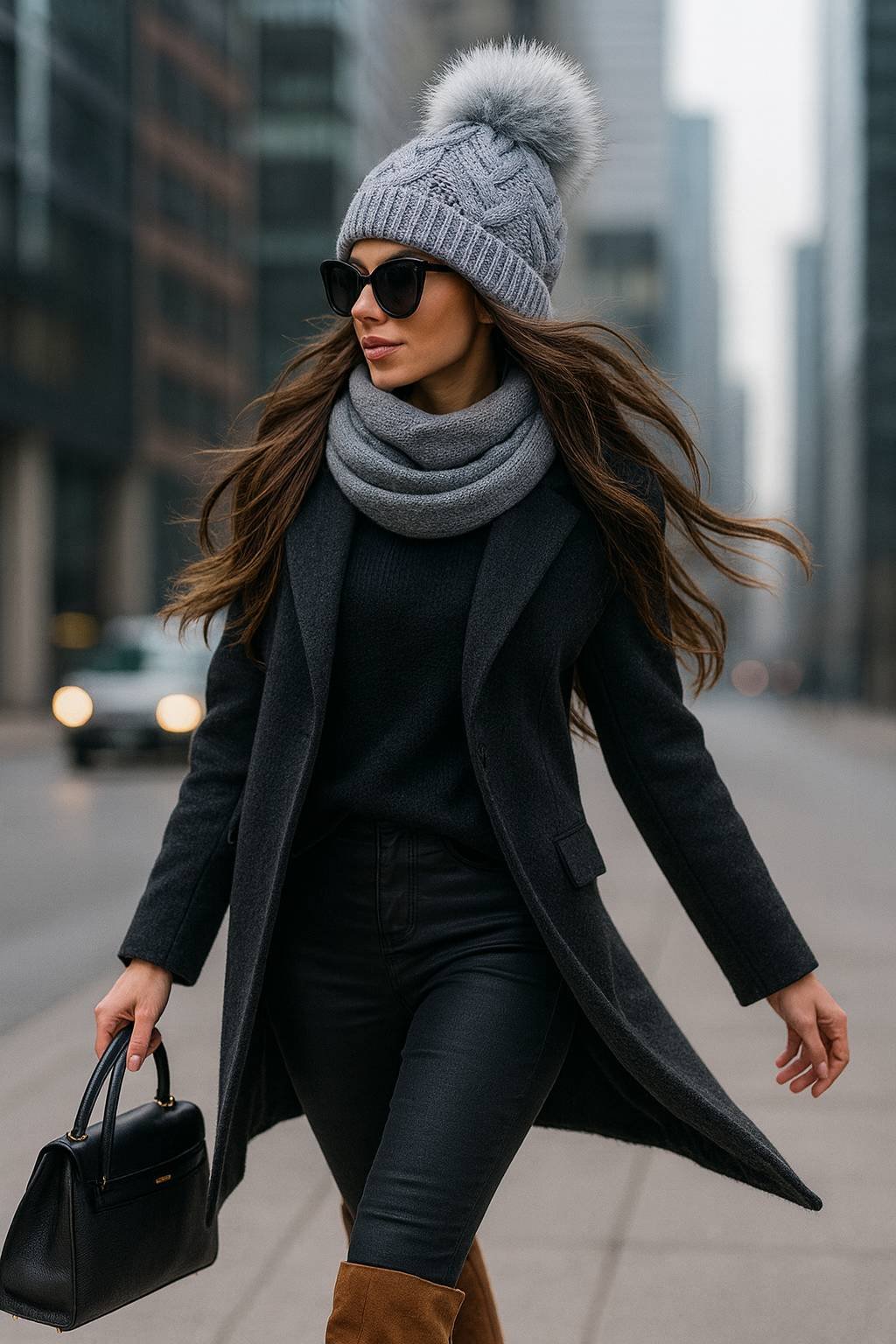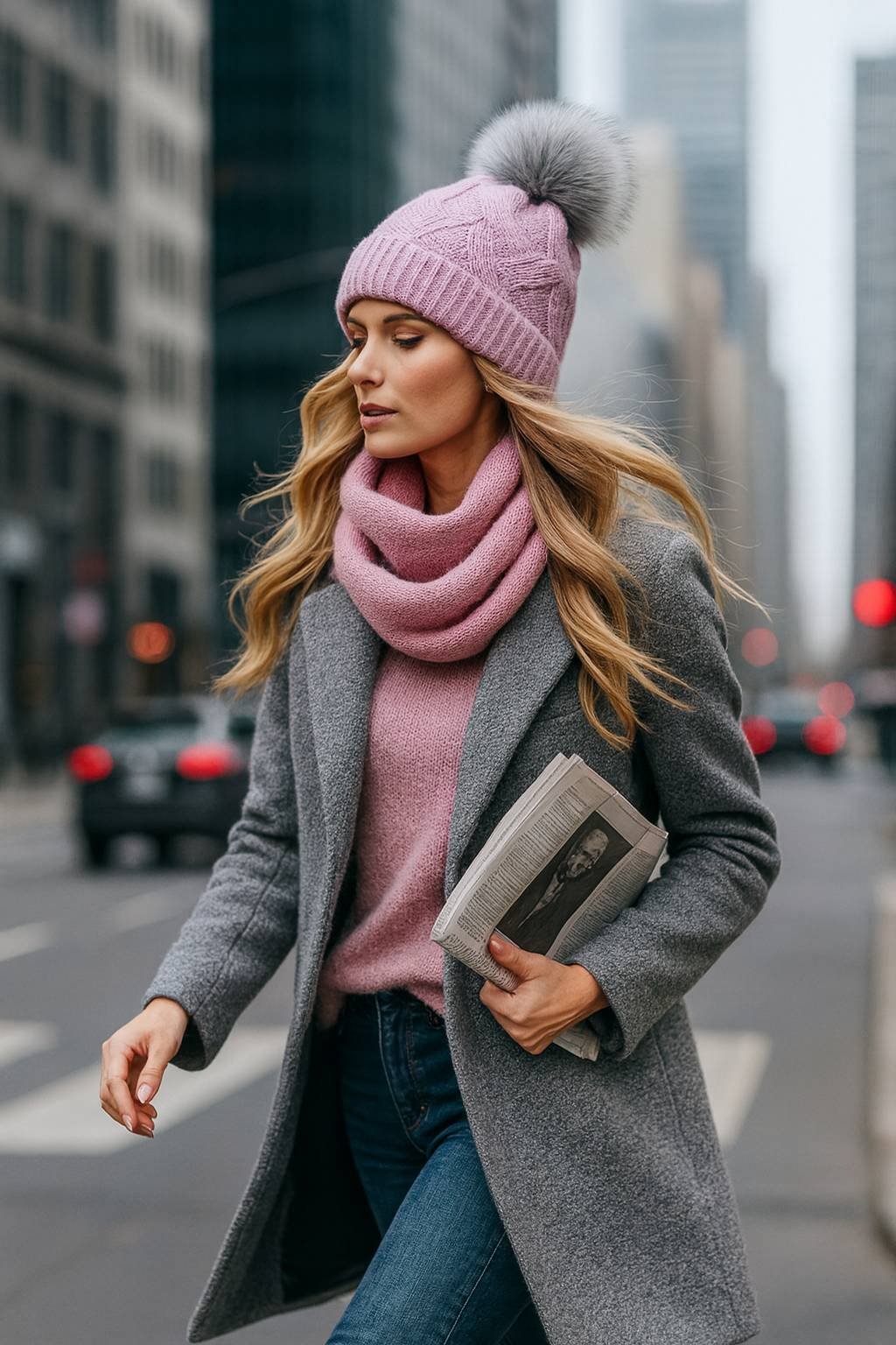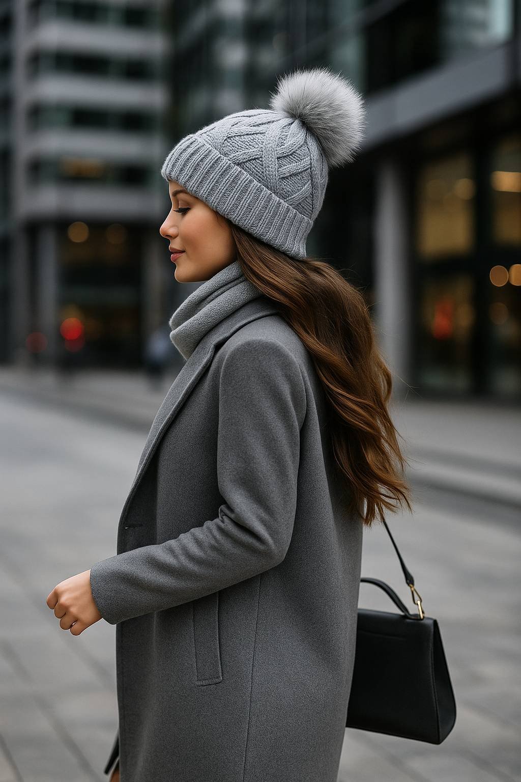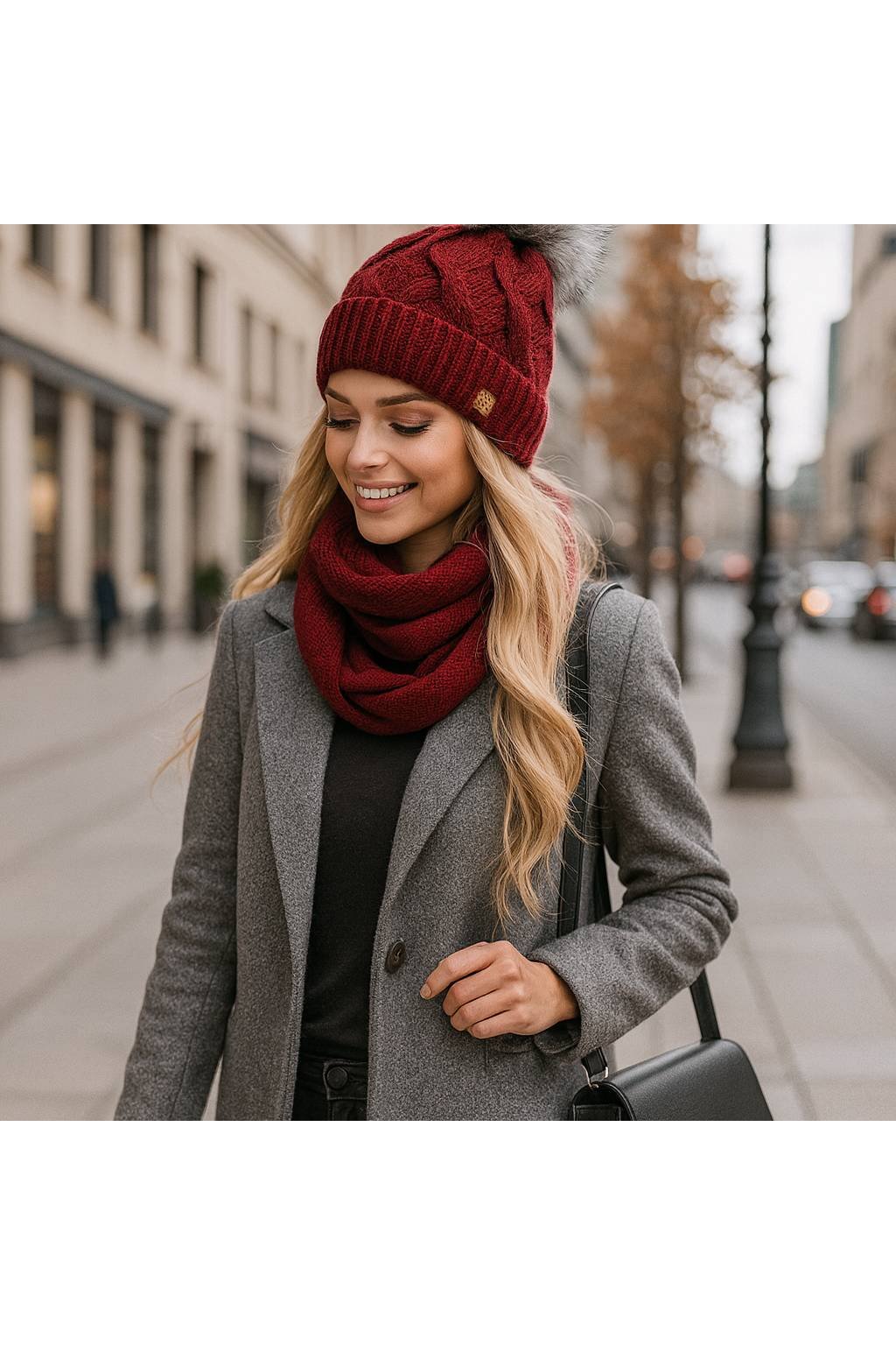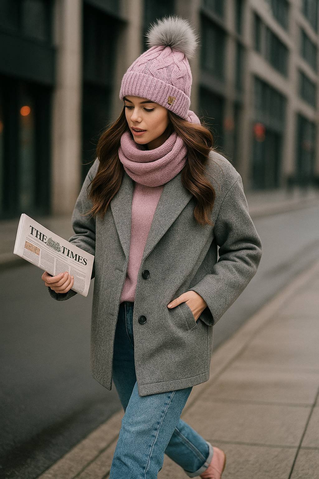 Moderni set: čiapka so komínom. Vyrobené z dvojvrstvového nadýchaného a mäsitého materiálu, veľmi mäkkého a na dotyk príjemného materiálu, ktorá je ideálna pre chladnejšie dni a je pohodlná na nosenie