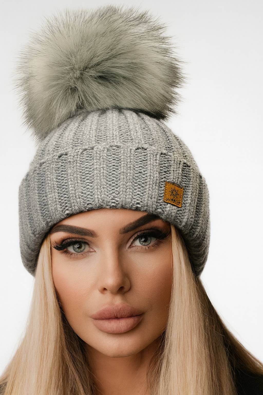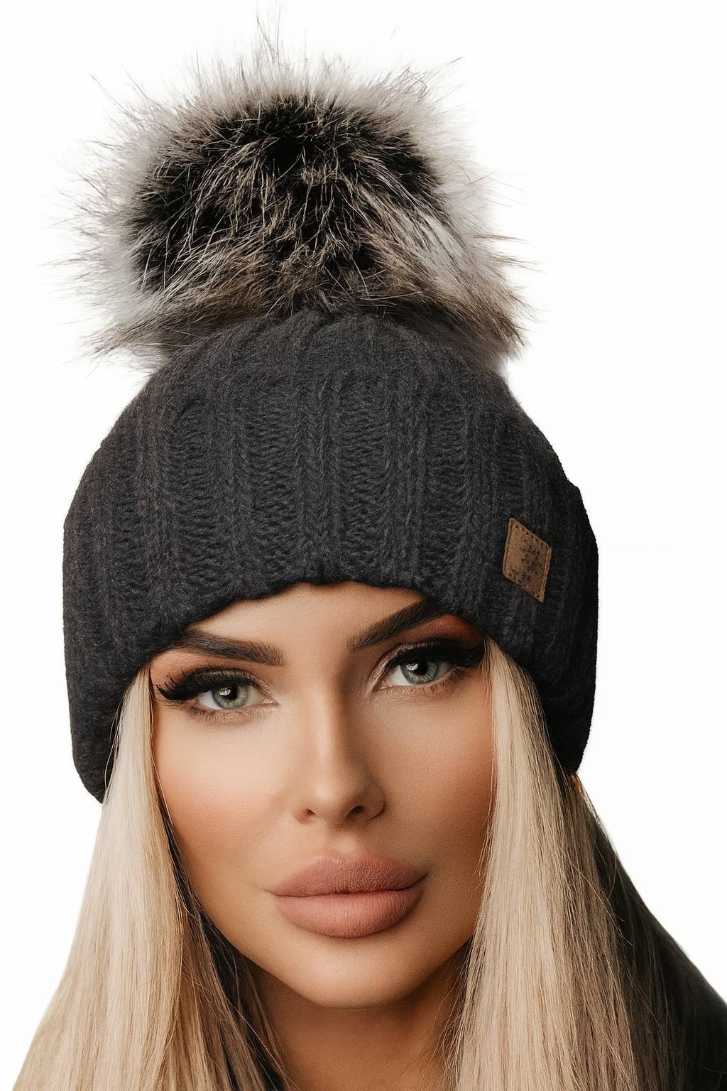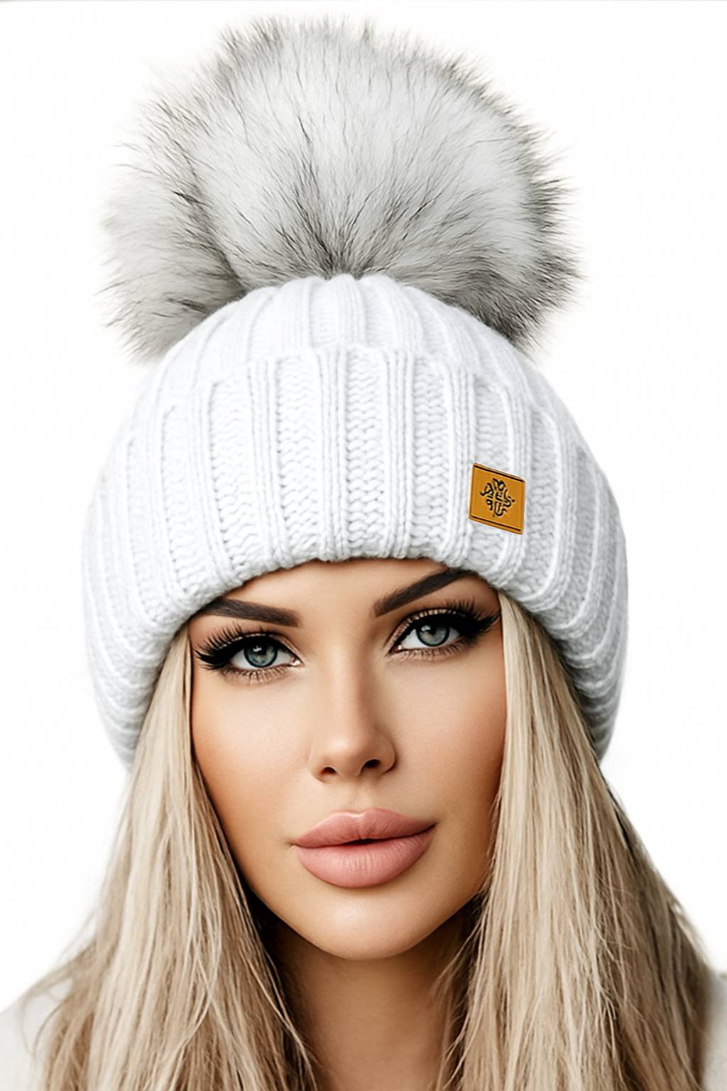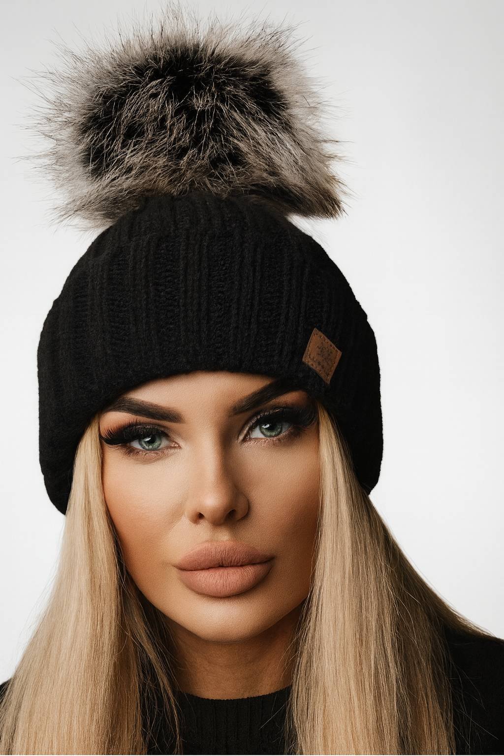 Štýlová zimná čiapka s nadýchaným brmbolcom z eko-kožušiny je ideálnou voľbou do chladného počasia.