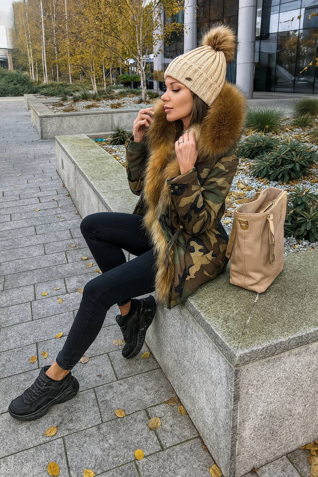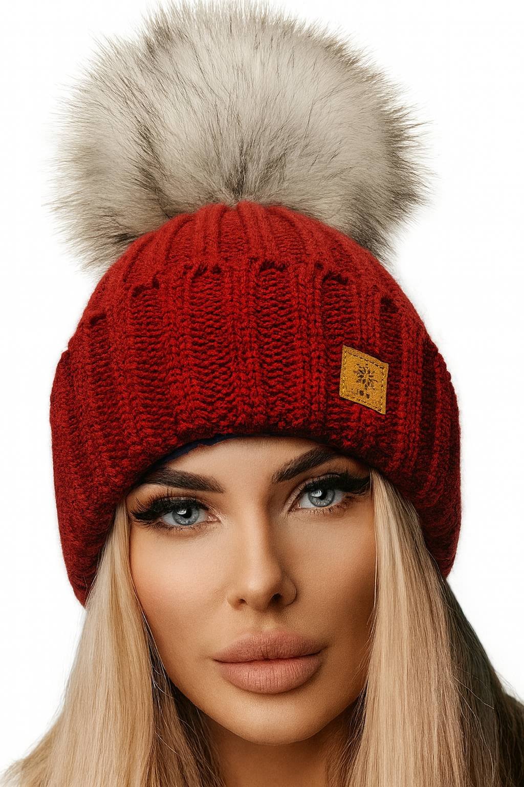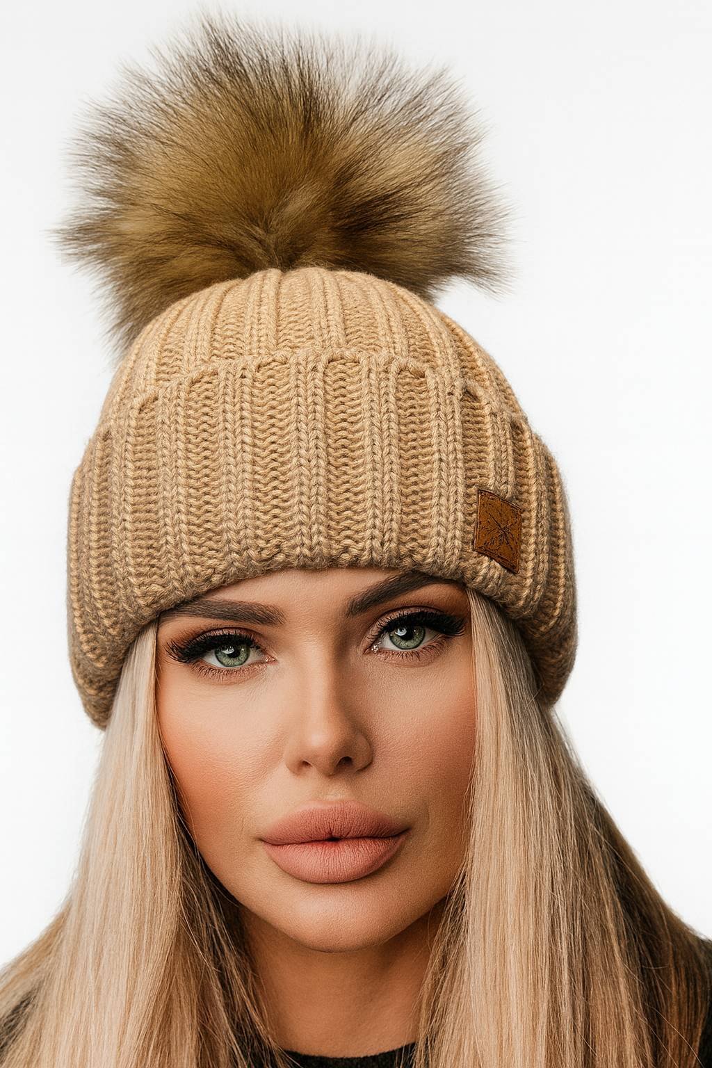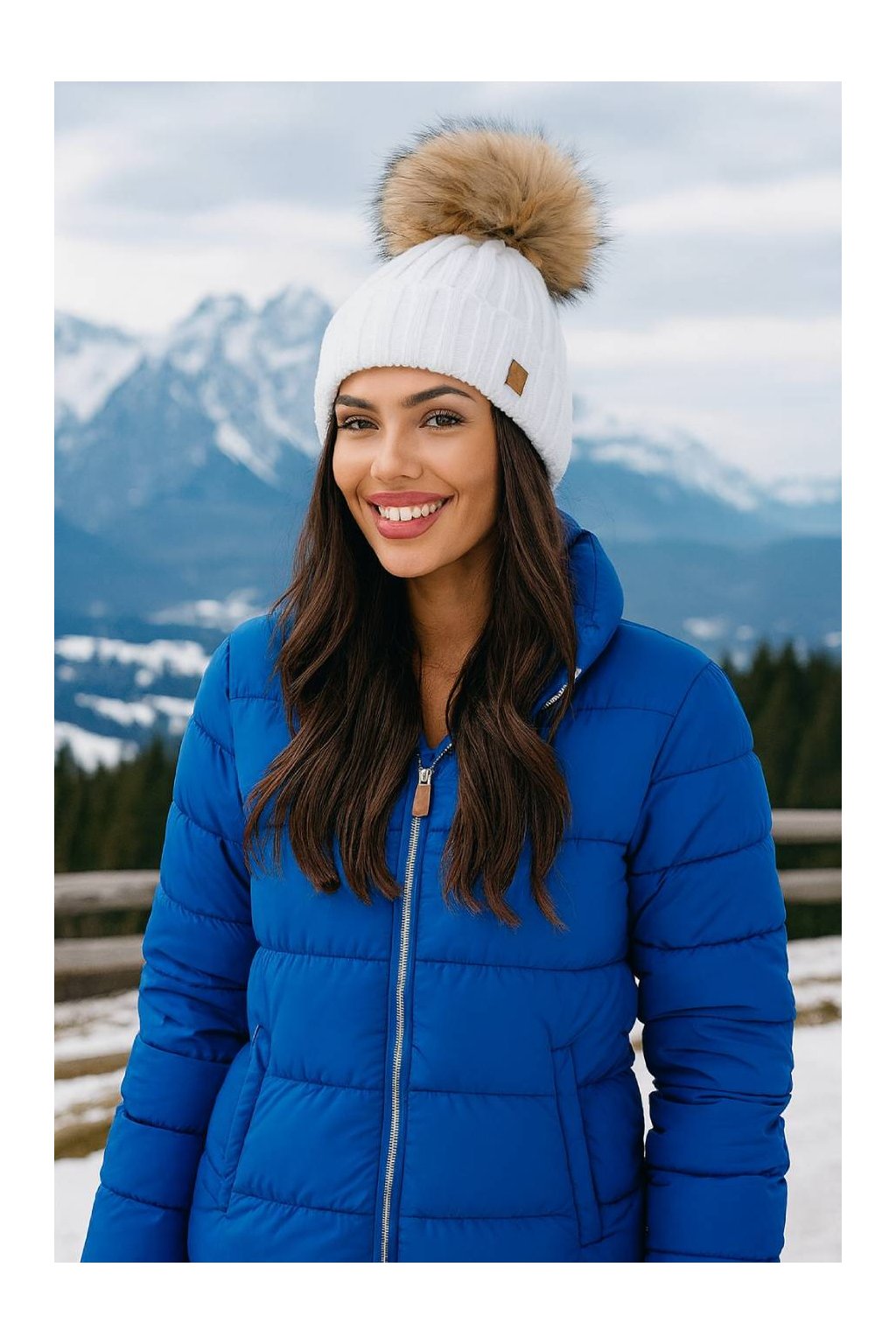 Štýlová zimná čiapka s nadýchaným brmbolcom z eko-kožušiny je ideálnou voľbou do chladného počasia.