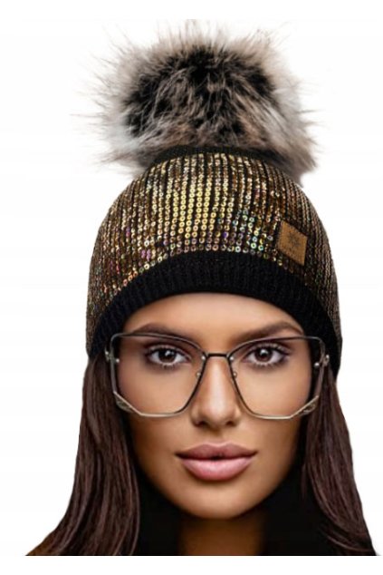 Dámska Lesklá flitrová čiapka - bohatý štýl s brmbolcom flísová podšívka MONTANA