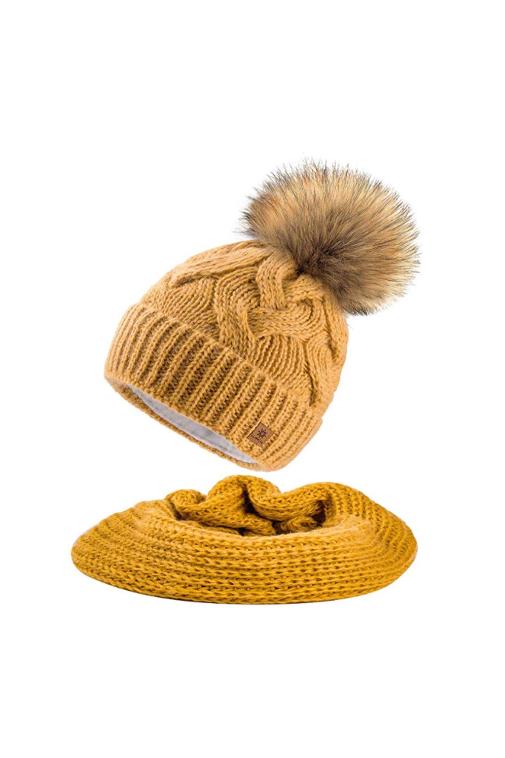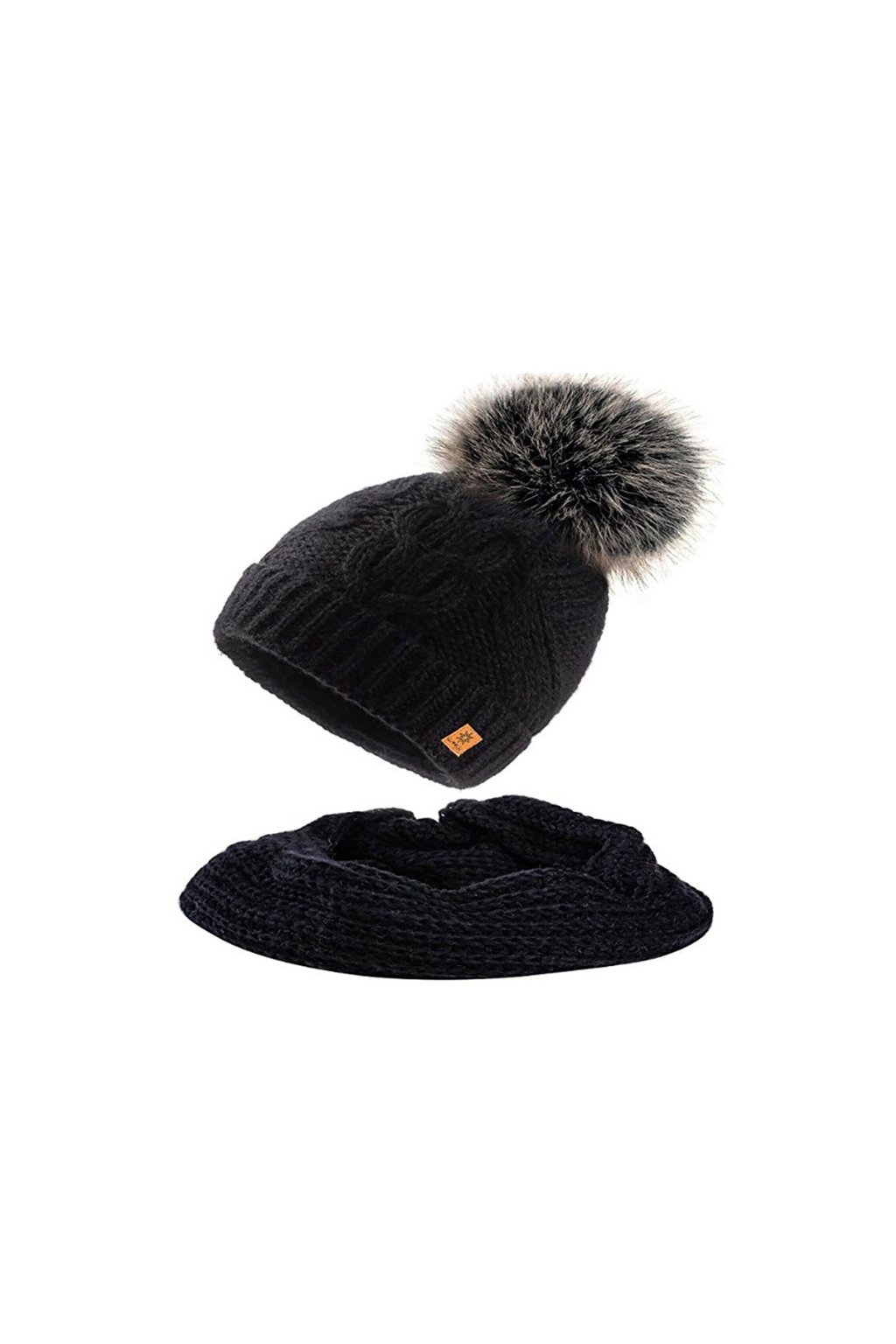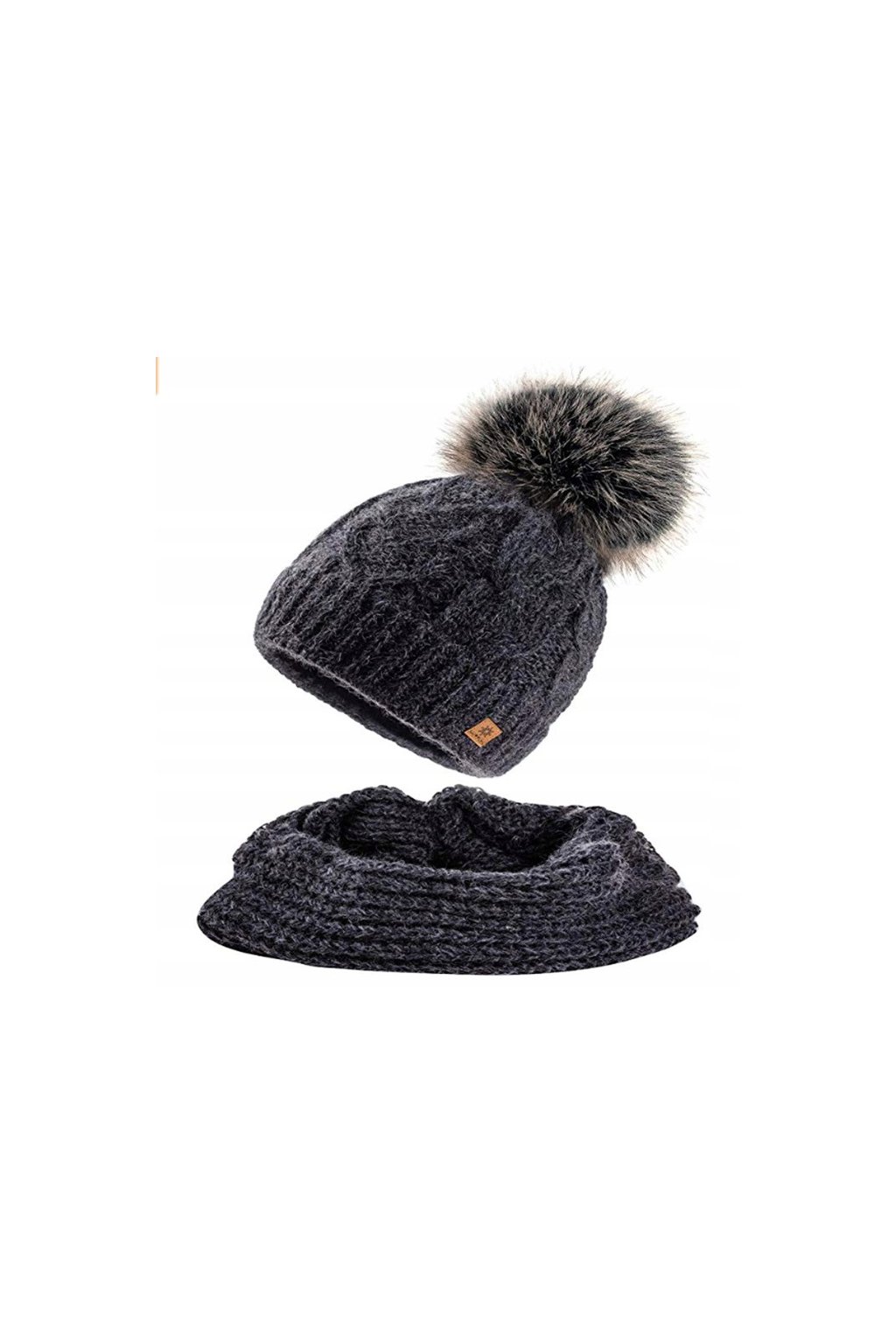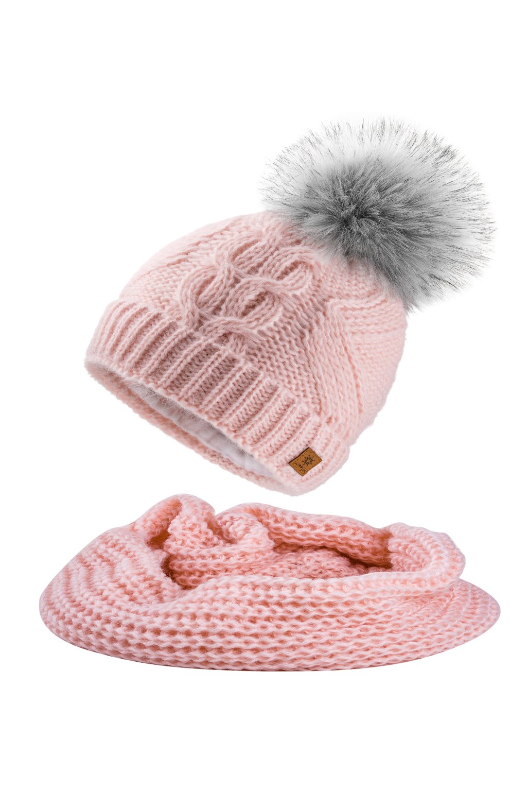 Pletená čiapka má ozdobnú bambuľu zo syntetickej kožušiny a vnútornú mikropolarovú čelenku, ktorá zabezpečuje výborný tepelný komfort. Nákrčník dokonale ladí s čiapkou a spoľahlivo chráni krk pred chladom.