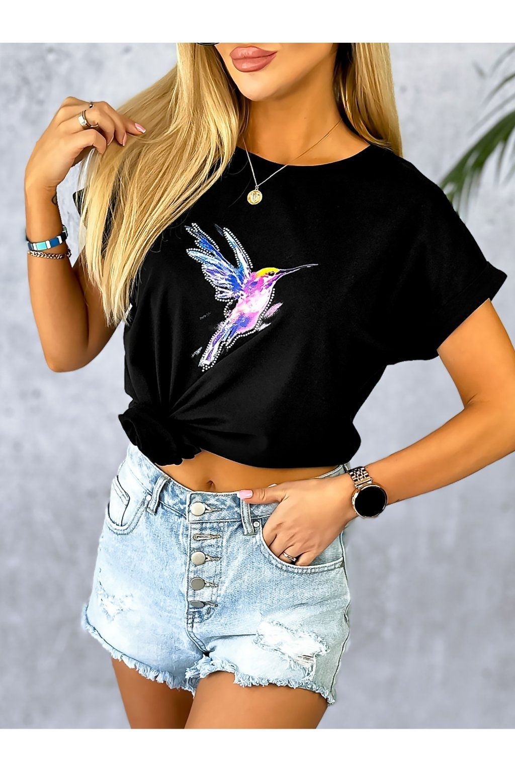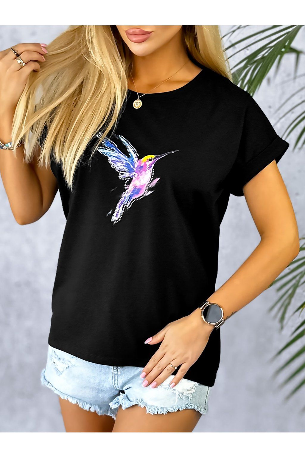 Dominantným prvkom je farebná grafika zdobená jemnými kamienkami, ktorá dodáva blúzke originálny a ženský vzhľad. Voľnejší strih zabezpečuje maximálne pohodlie a moderný, ležérny štýl.