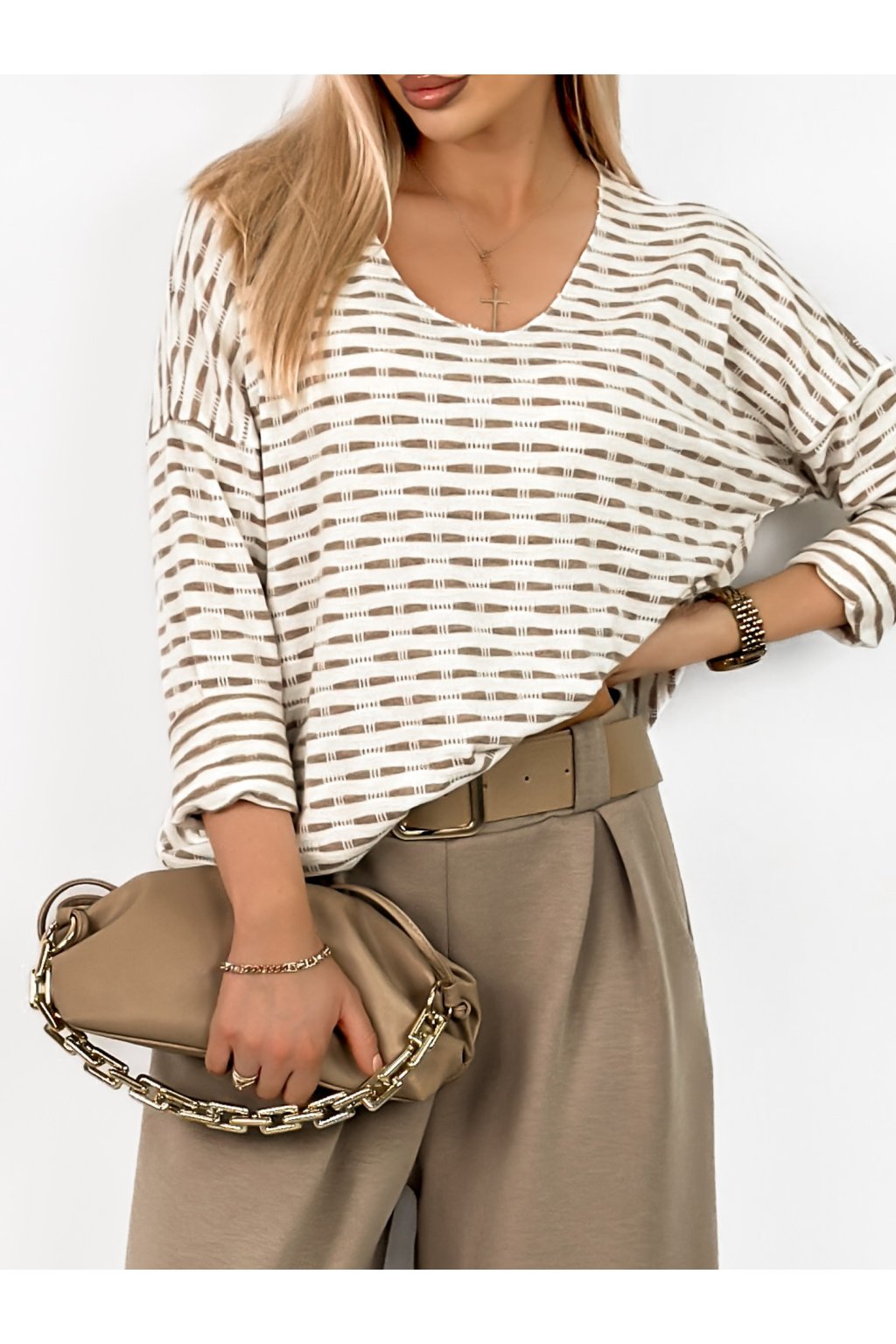 Model má výstrih do V, ktorý opticky zoštíhľuje postavu a dodáva ženský vzhľad. Voľný strih zabezpečuje maximálne pohodlie a lichotí rôznym typom postavy.