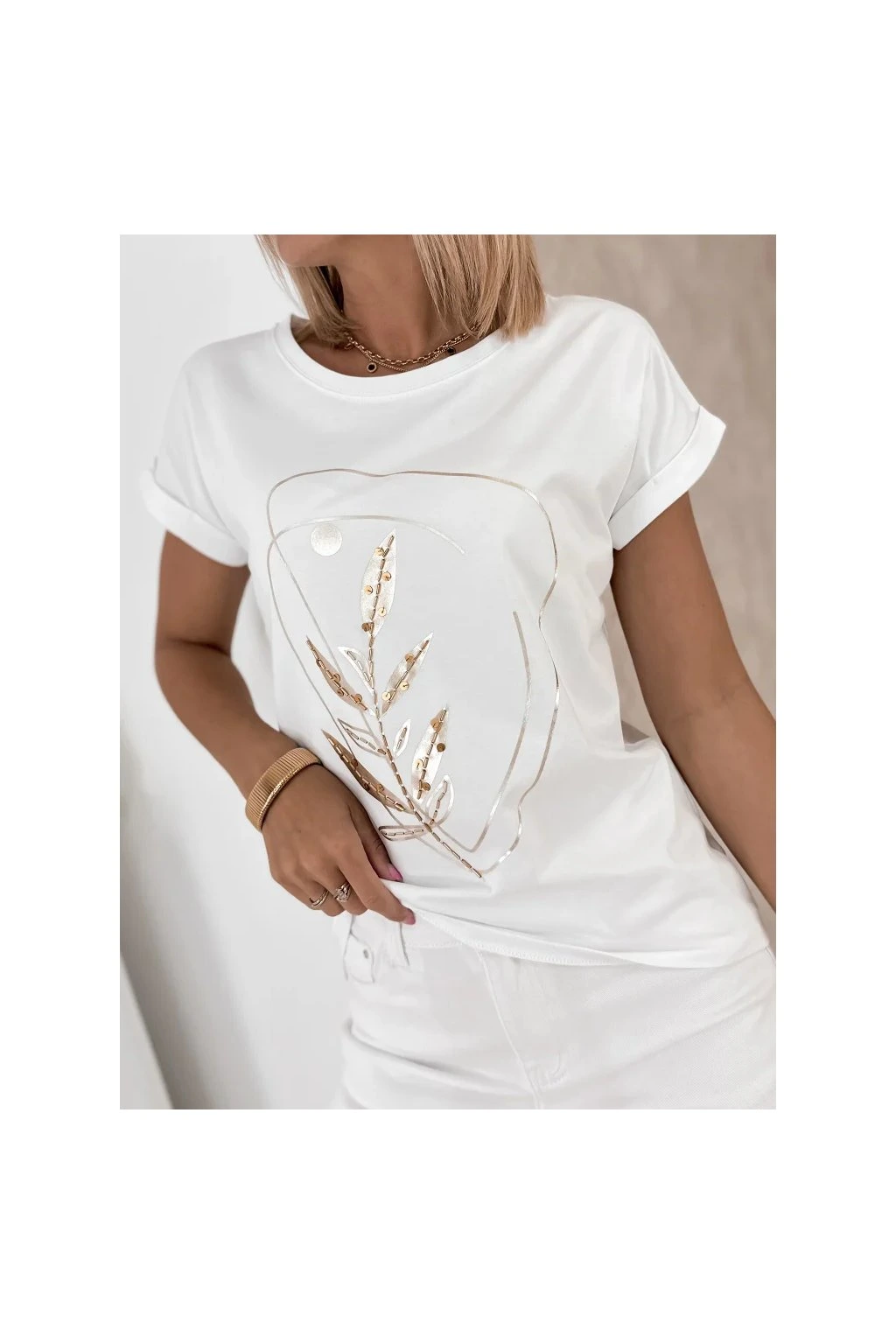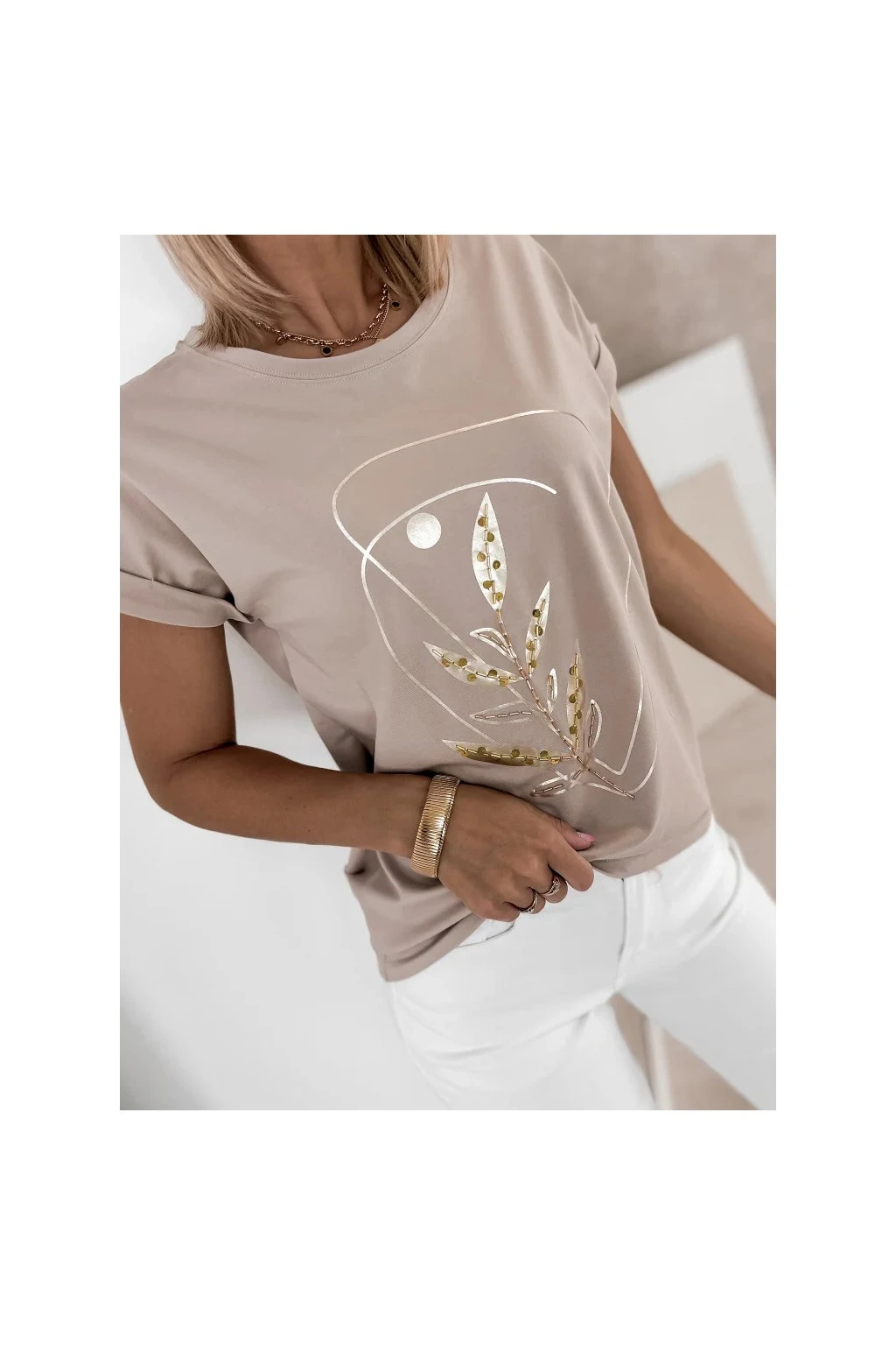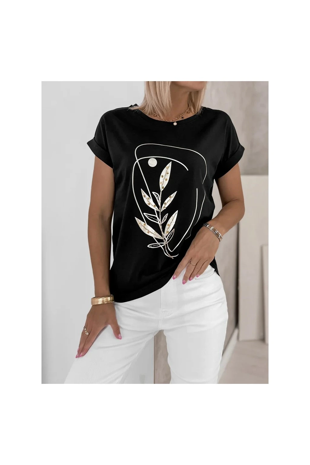 Elegantné dámske tričko je ideálnou voľbou pre každodenné outfity v modernom minimalistickom štýle. Decentná potlač s prírodným motívom dodáva modelu sofistikovaný vzhľad a ľahko ho skombinujete s džínsami aj elegantnými kúskami.