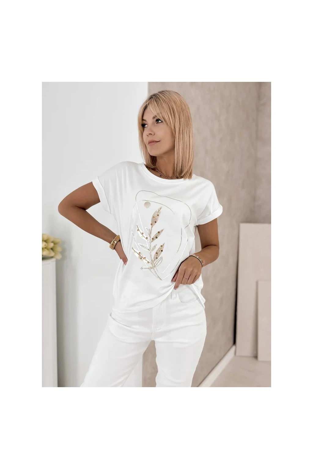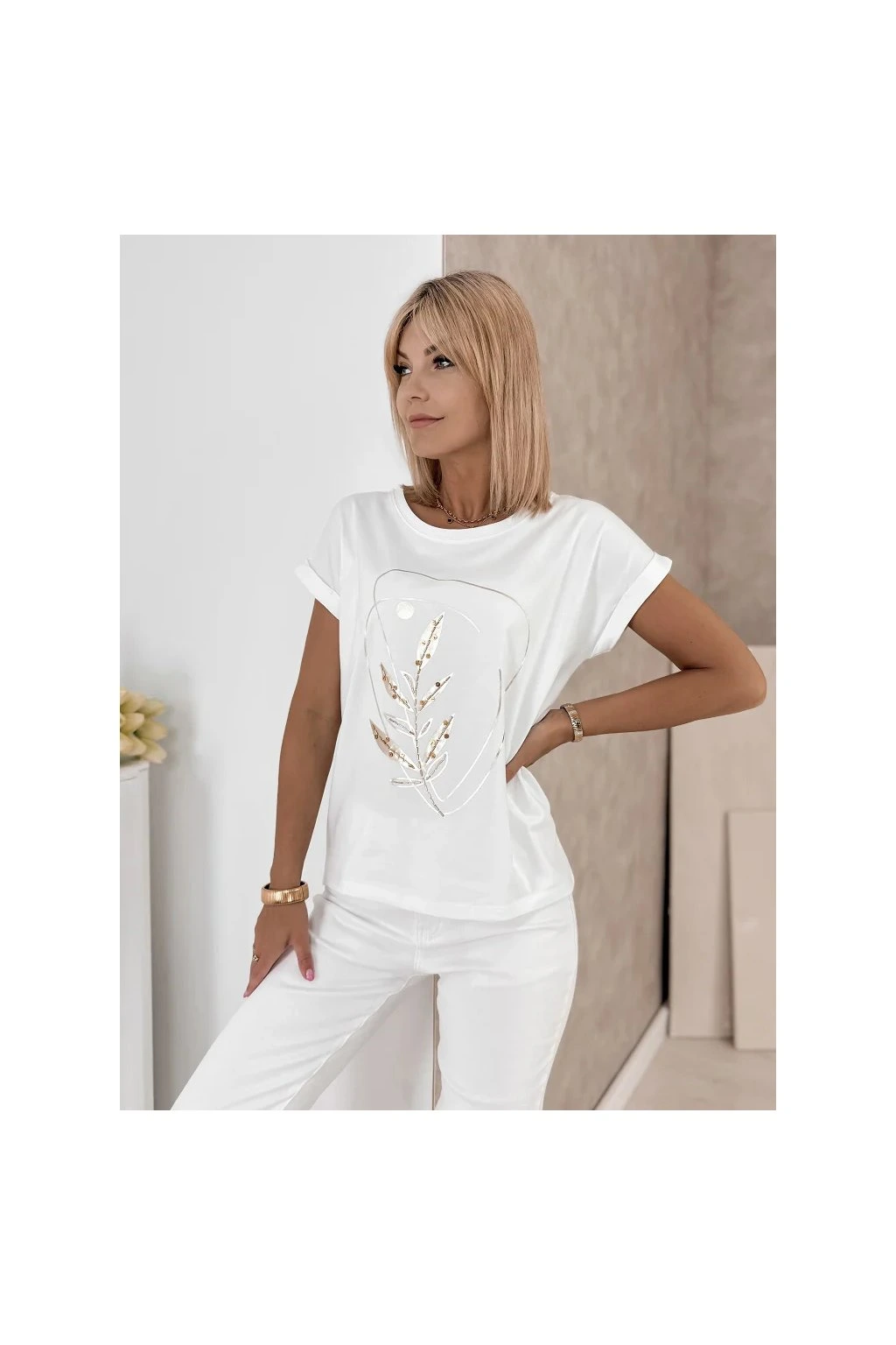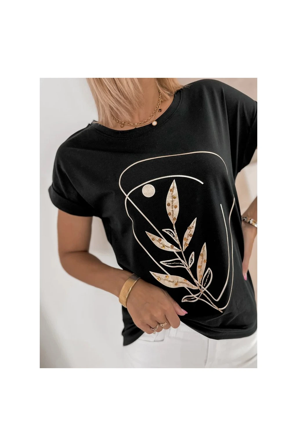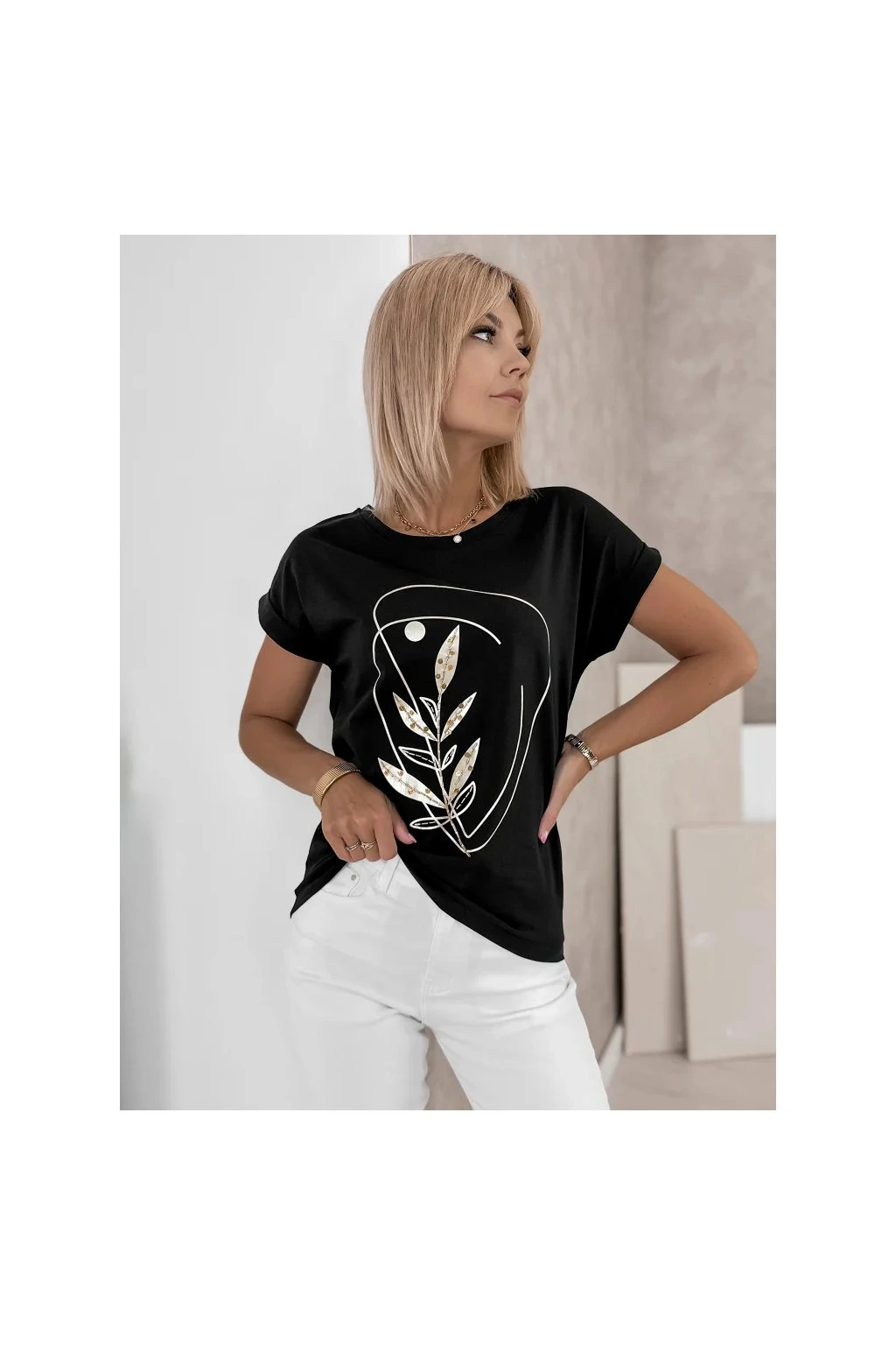 Elegantné dámske tričko je ideálnou voľbou pre každodenné outfity v modernom minimalistickom štýle. Decentná potlač s prírodným motívom dodáva modelu sofistikovaný vzhľad a ľahko ho skombinujete s džínsami aj elegantnými kúskami.