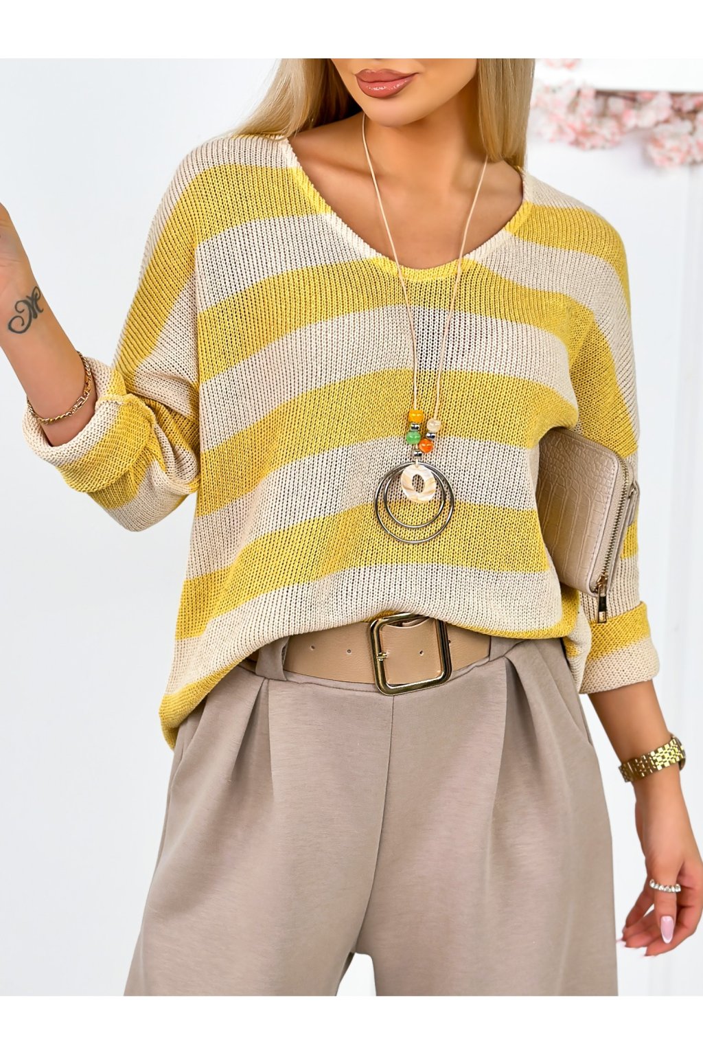 Štýlovým doplnkom je náhrdelník, ktorý je súčasťou balenia a dotvára celý outfit.