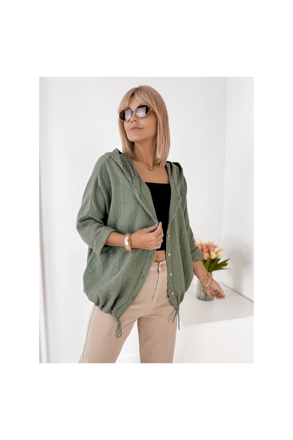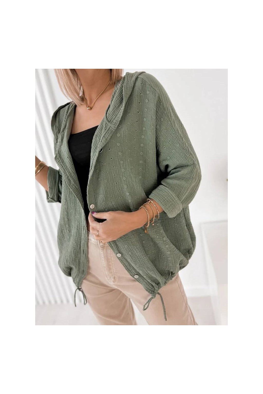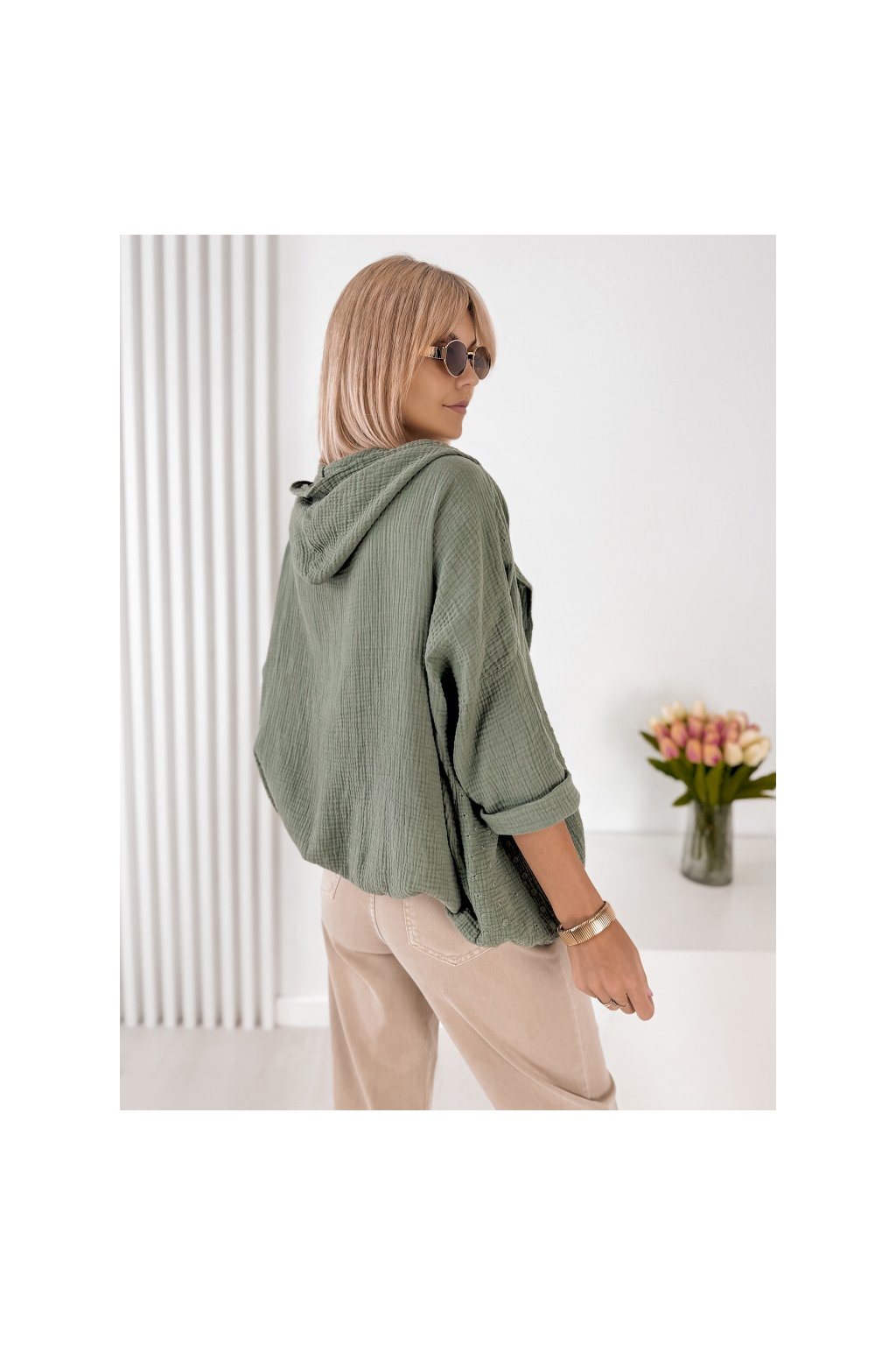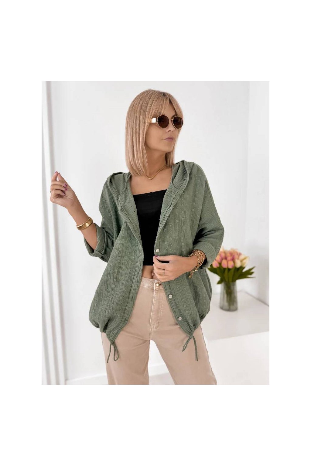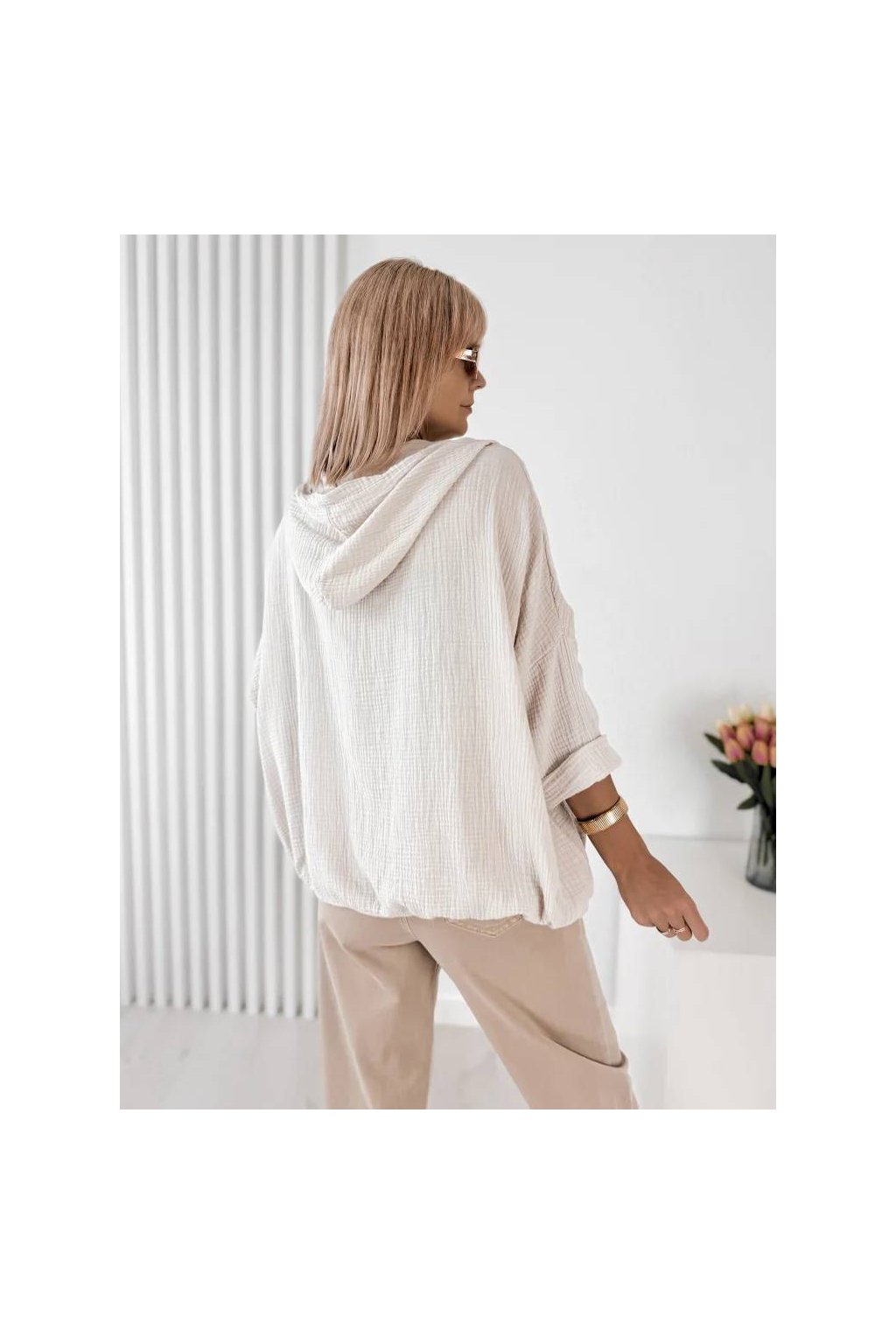 Košeľa je doplnená o praktickú kapucňu, vrecká a jemnú štruktúru materiálu. Voľný strih krásne splýva s postavou, neobopína a pôsobí veľmi prirodzene a štýlovo.