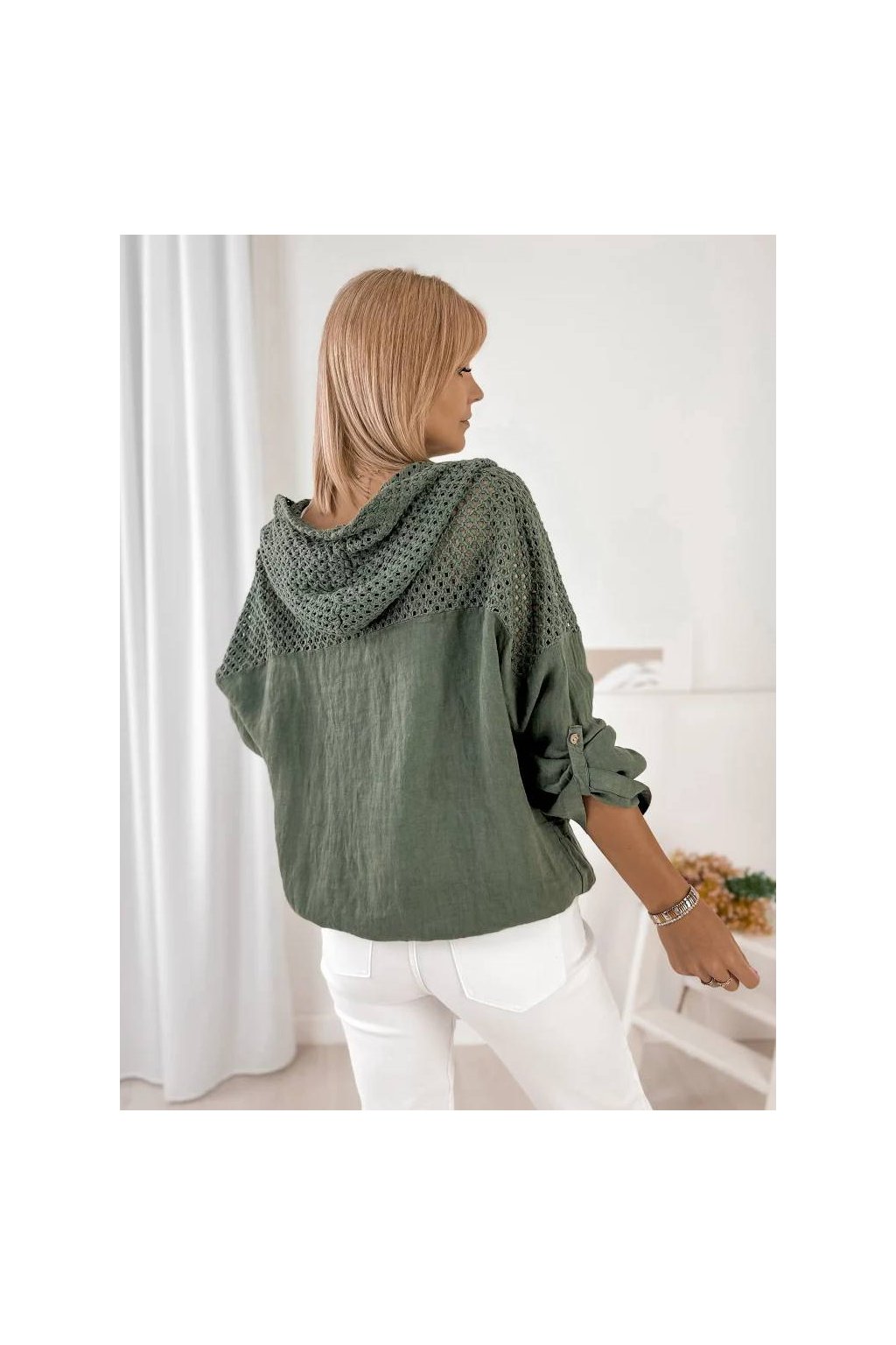 Moderná dámska mikina zo 100 % ľanu, ideálna na jarné a letné dni. Prírodný, priedušný materiál zabezpečuje maximálne pohodlie pri každodennom nosení. Voľný strih krásne sedí na postave, neobmedzuje pohyb a pôsobí štýlovo a žensky.