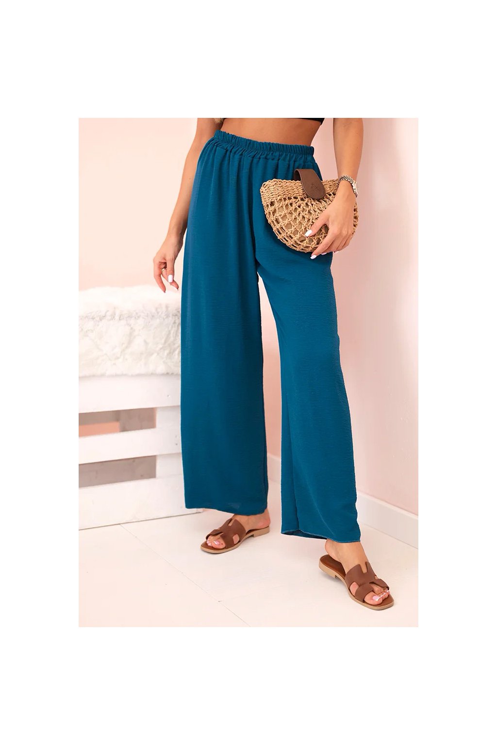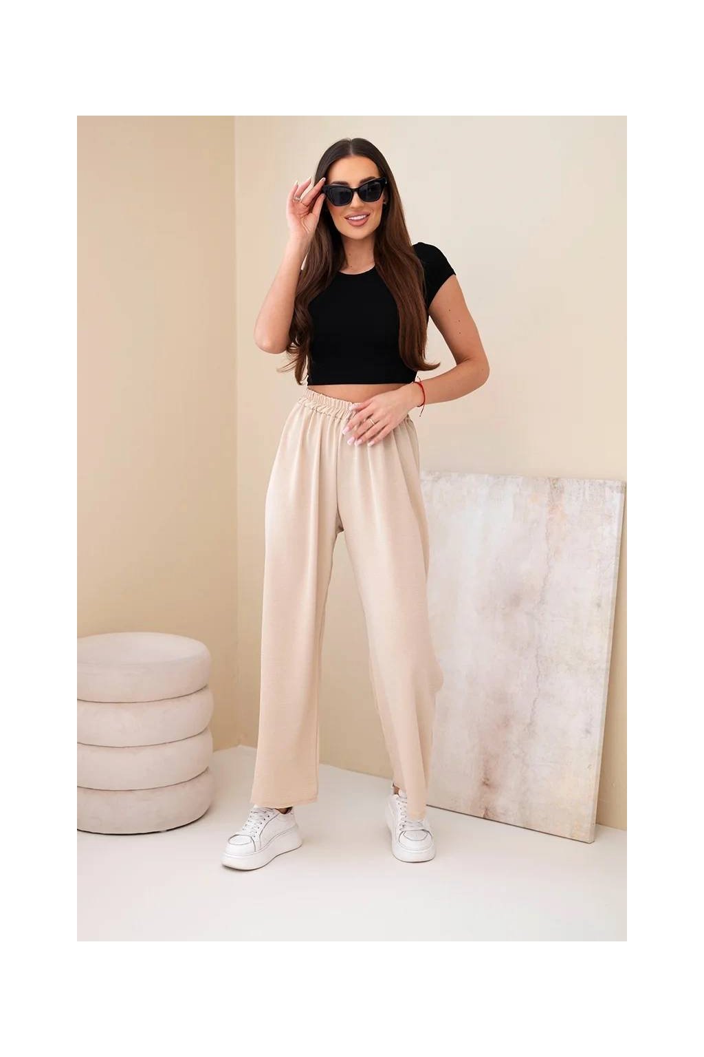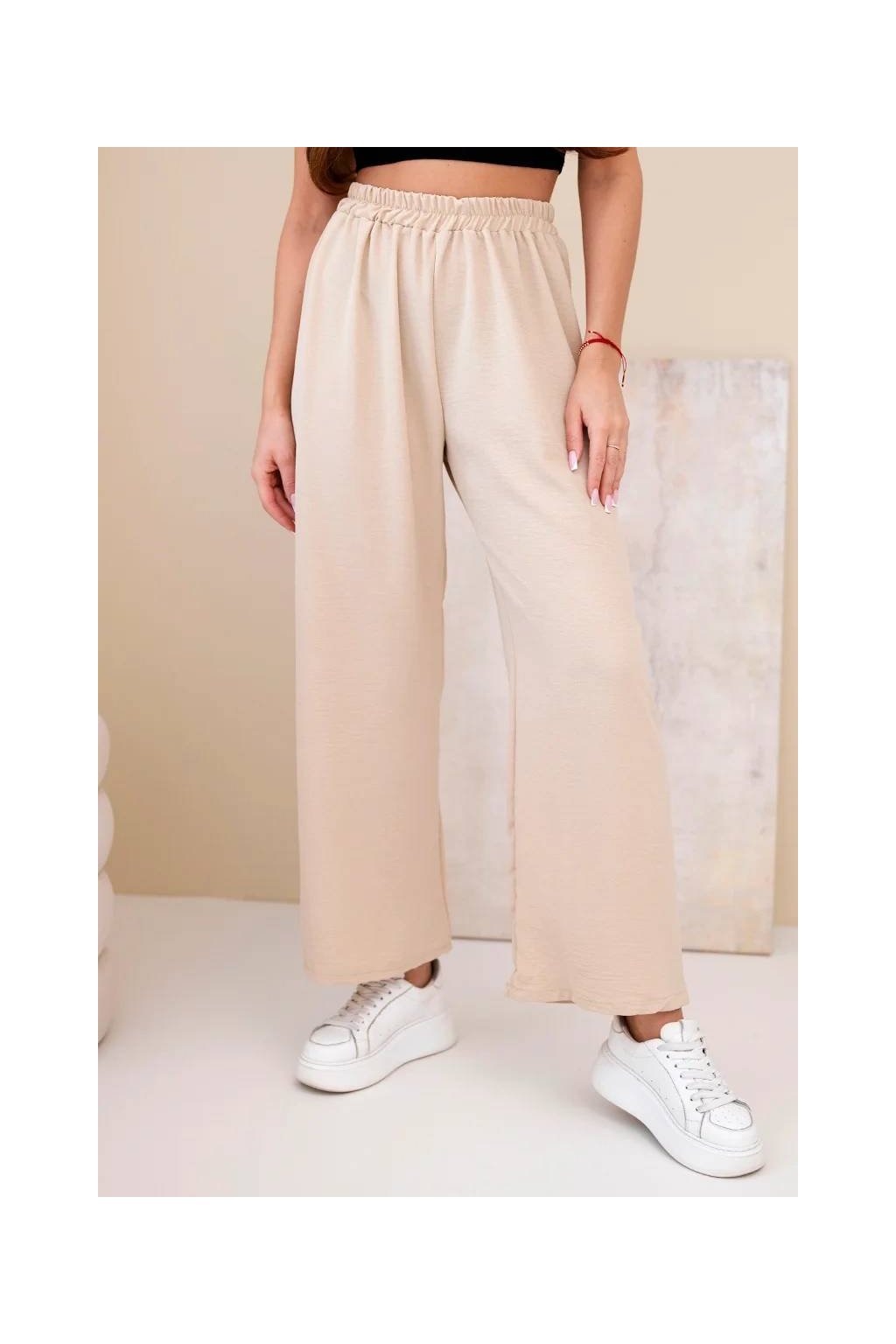 Talianske dámske nohavice so širokými nohavicami - ľahké a vzdušné! Pohodlné látkové nohavice sú skvelým základom pre každodennú štylizáciu. Strih má sťahovacia guma v páse, vďaka ktorej sa dokonale prispôsobí postave. Tento model bude vyzerať fantasticky v neformálnom vydaní. Produkt je vyrobený z vysoko kvalitného materiálu a je k dispozícii v niekoľkých farebných variantoch.