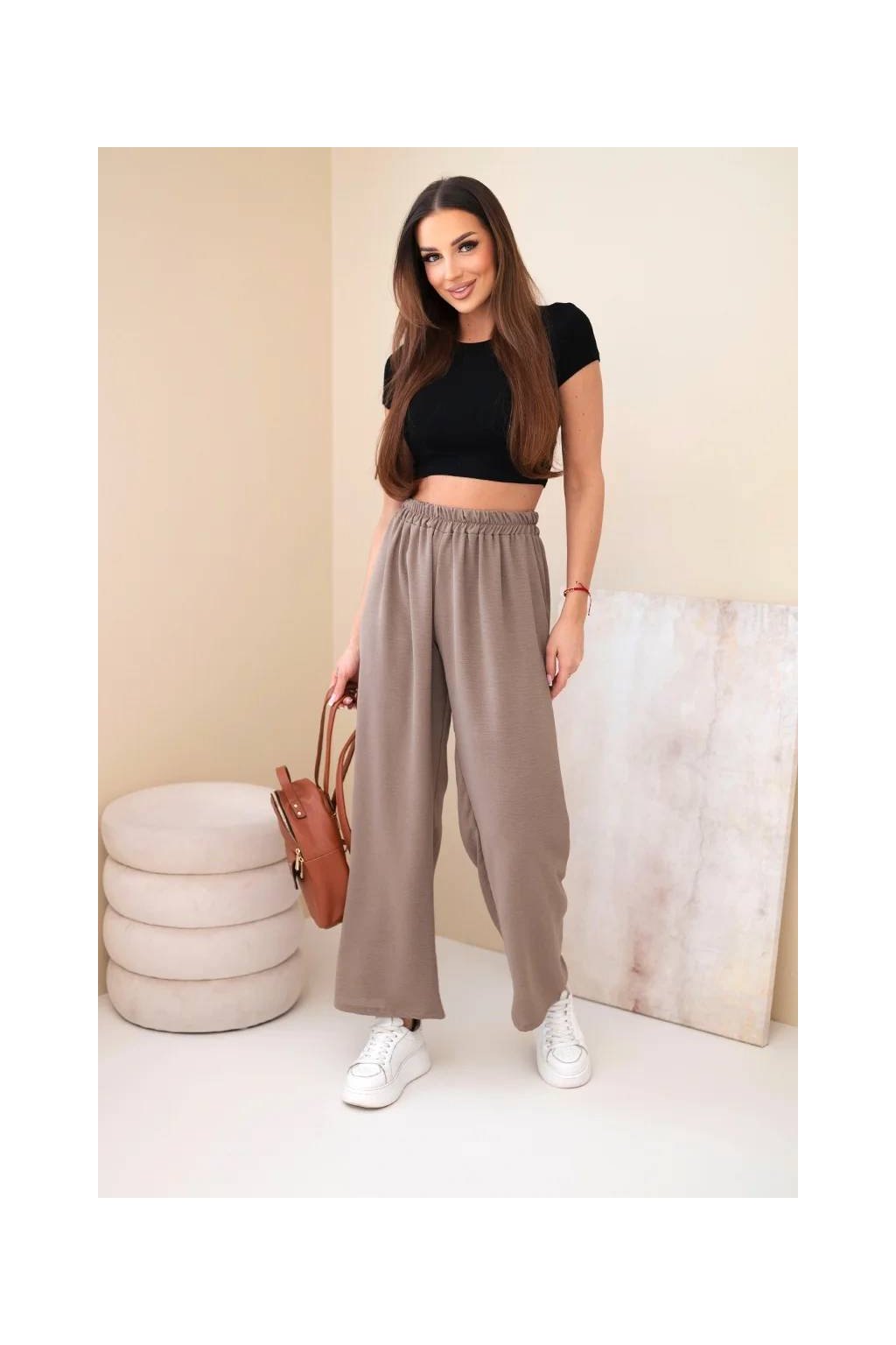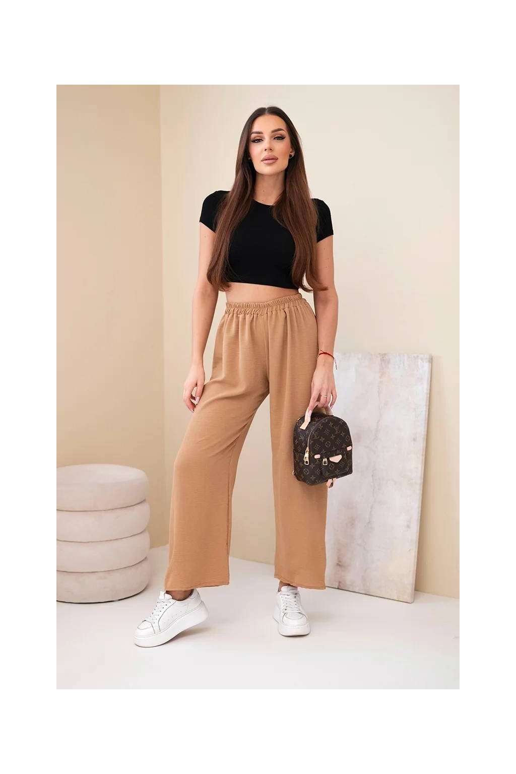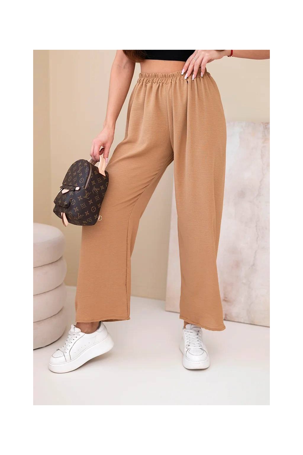 Talianske dámske nohavice so širokými nohavicami - ľahké a vzdušné! Pohodlné látkové nohavice sú skvelým základom pre každodennú štylizáciu. Strih má sťahovacia guma v páse, vďaka ktorej sa dokonale prispôsobí postave. Tento model bude vyzerať fantasticky v neformálnom vydaní. Produkt je vyrobený z vysoko kvalitného materiálu a je k dispozícii v niekoľkých farebných variantoch.