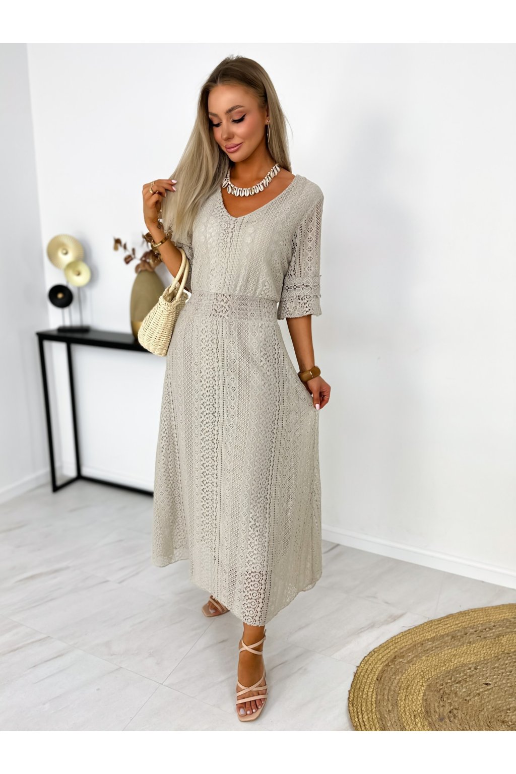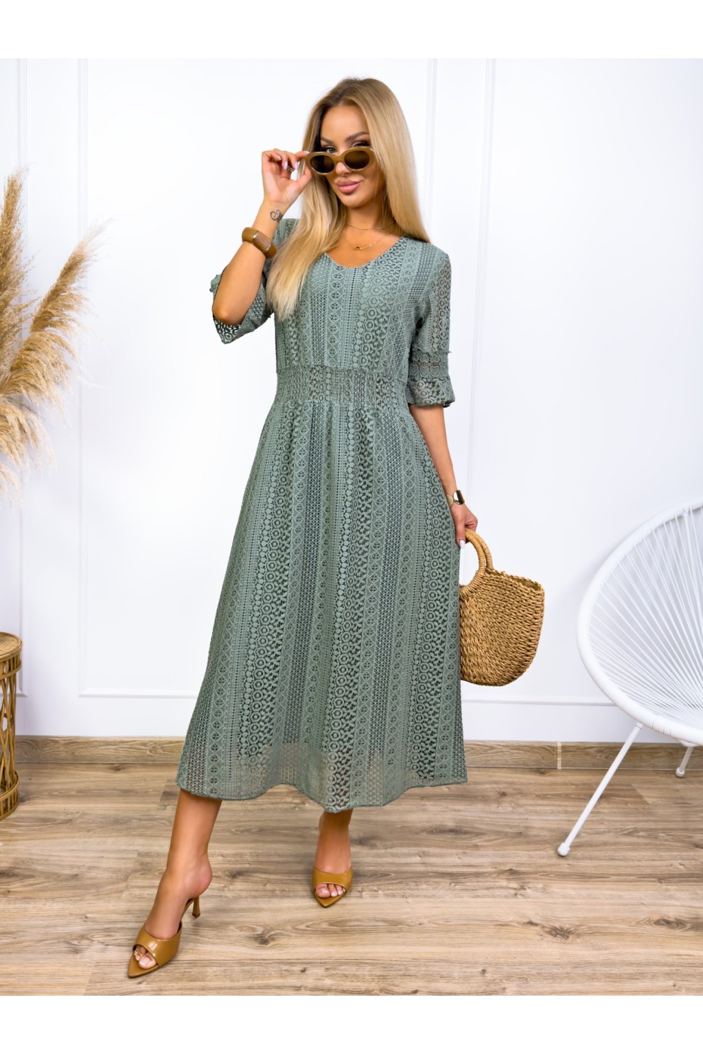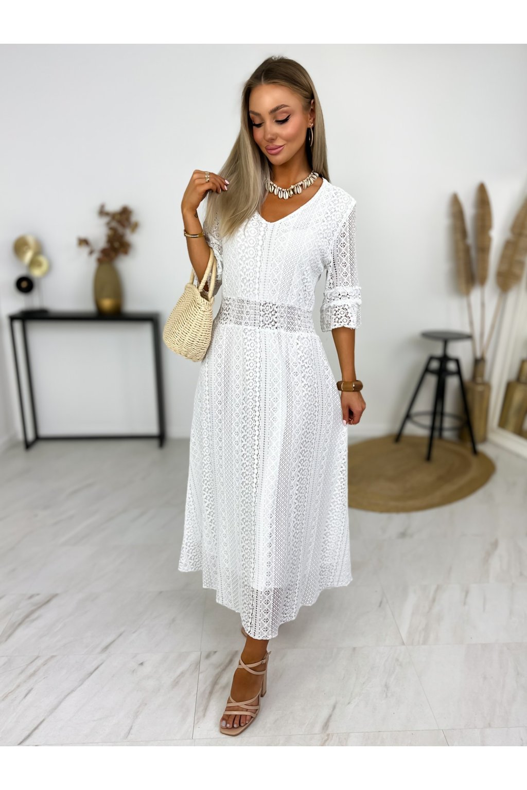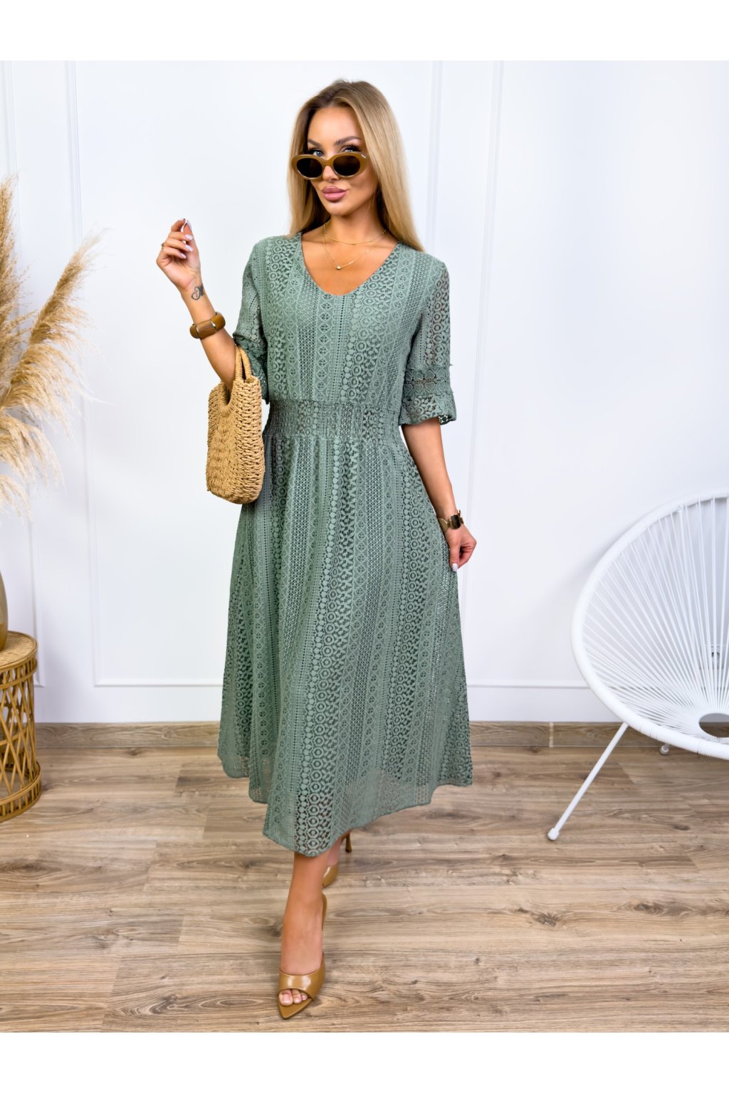 Krásne čipkované šaty s 3/4 rukávmi. Podšité výstrihom do V a elastickým pásom. Jemné krajkové šaty sú stelesnením vycibrené a veľmi ženskej módy, ktorá sa ľahko nosí a skvele vyzerá. Navyše patrí medzi top trendy tohtoročnej sezóny, takže pokiaľ ste sa s nimi ešte nezoznámili, je najvyšší čas.