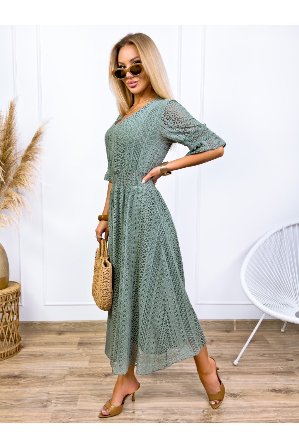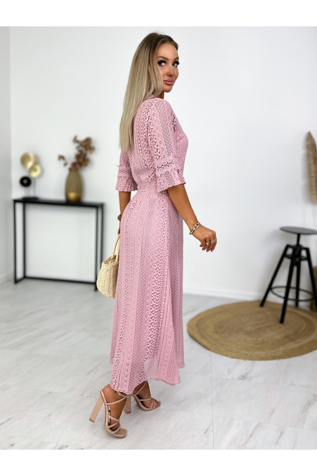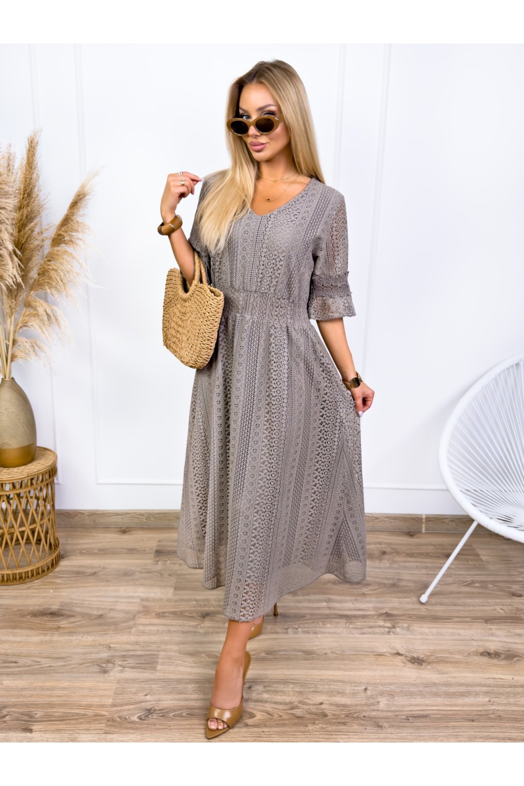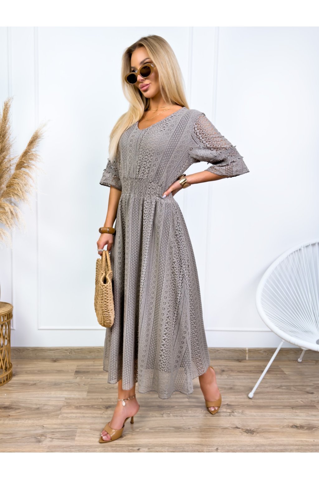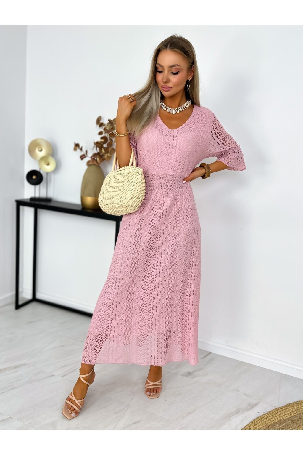 Krásne čipkované šaty s 3/4 rukávmi. Podšité výstrihom do V a elastickým pásom. Jemné krajkové šaty sú stelesnením vycibrené a veľmi ženskej módy, ktorá sa ľahko nosí a skvele vyzerá. Navyše patrí medzi top trendy tohtoročnej sezóny, takže pokiaľ ste sa s nimi ešte nezoznámili, je najvyšší čas.