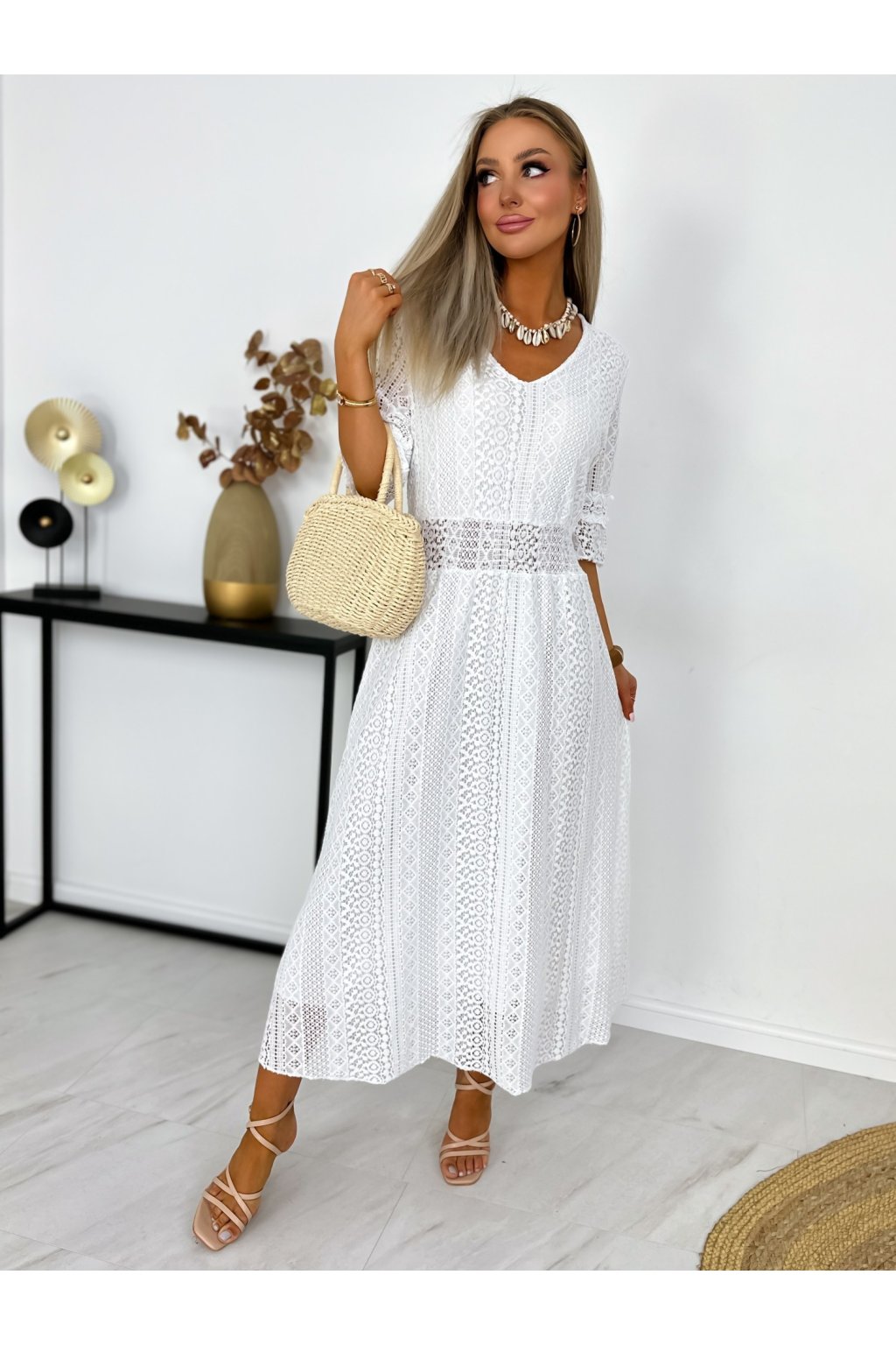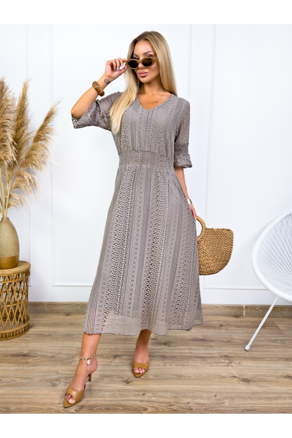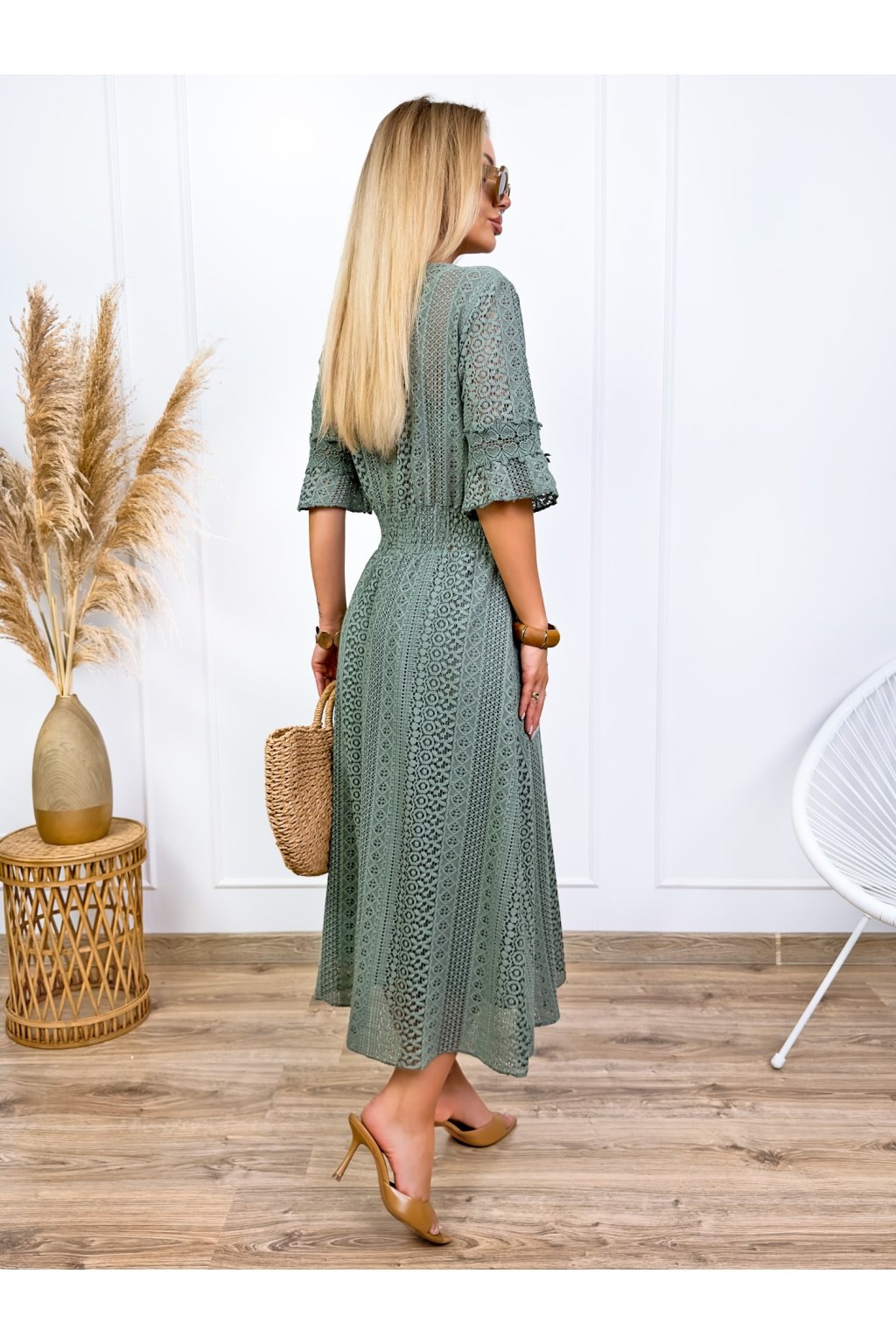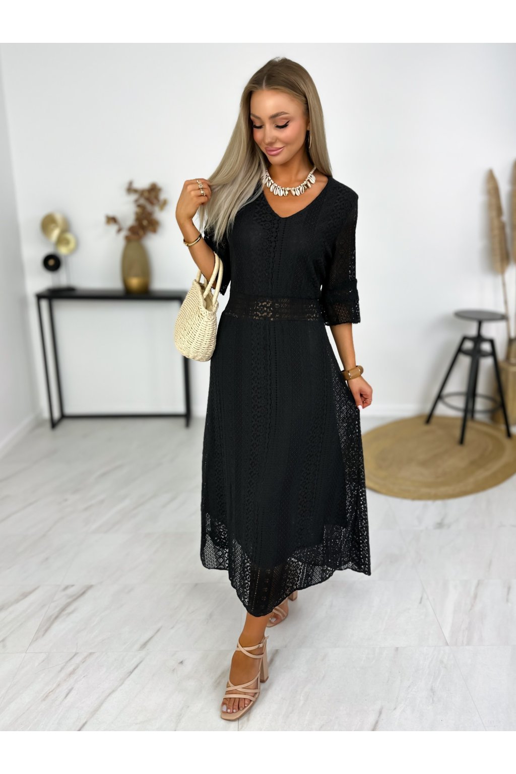 Krásne čipkované šaty s 3/4 rukávmi. Podšité výstrihom do V a elastickým pásom. Jemné krajkové šaty sú stelesnením vycibrené a veľmi ženskej módy, ktorá sa ľahko nosí a skvele vyzerá. Navyše patrí medzi top trendy tohtoročnej sezóny, takže pokiaľ ste sa s nimi ešte nezoznámili, je najvyšší čas.