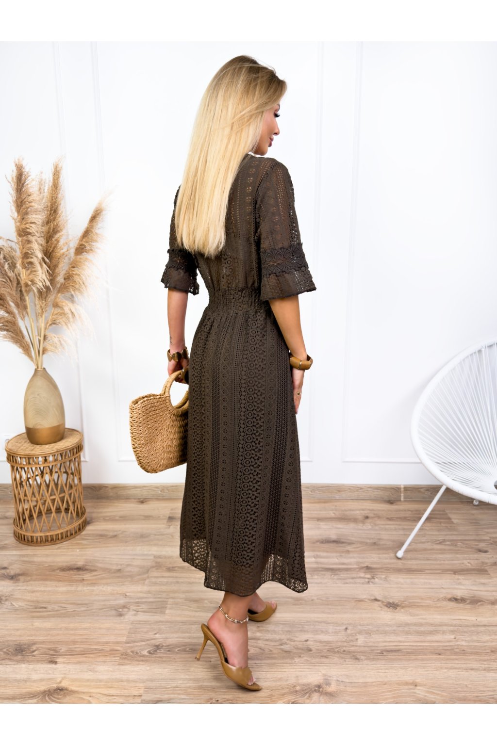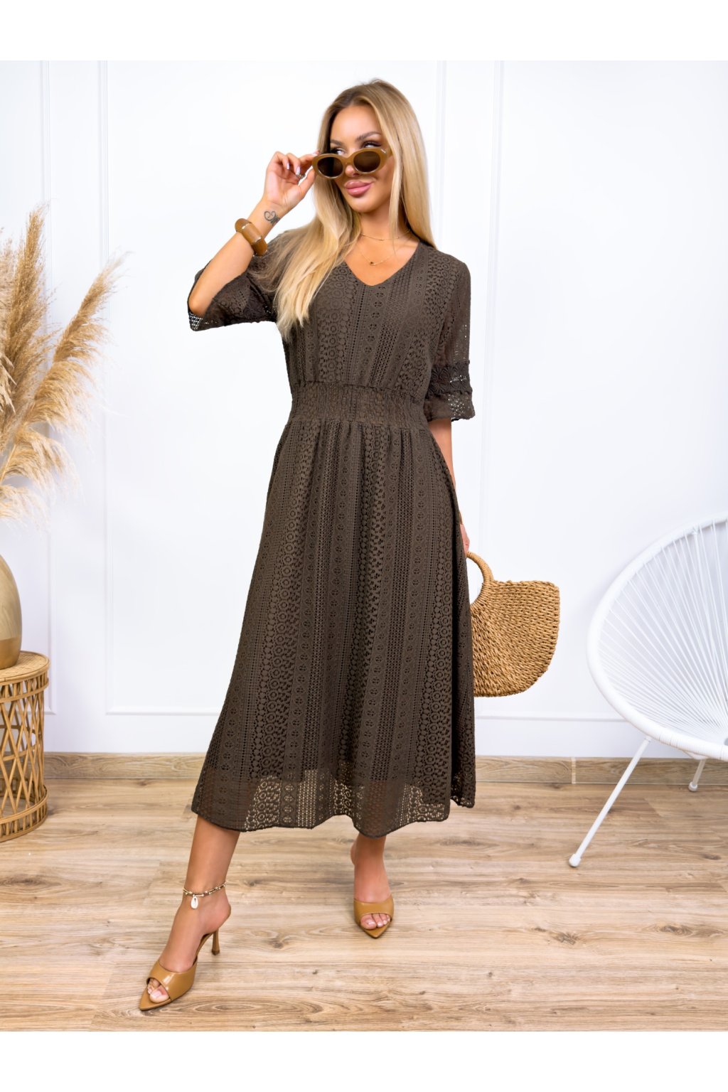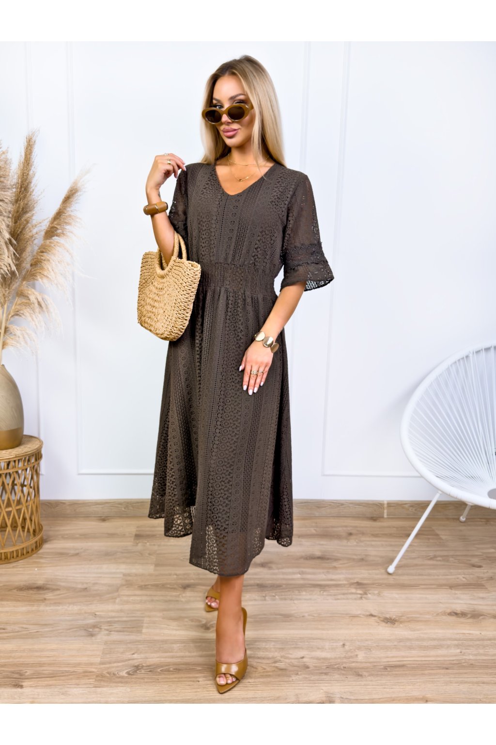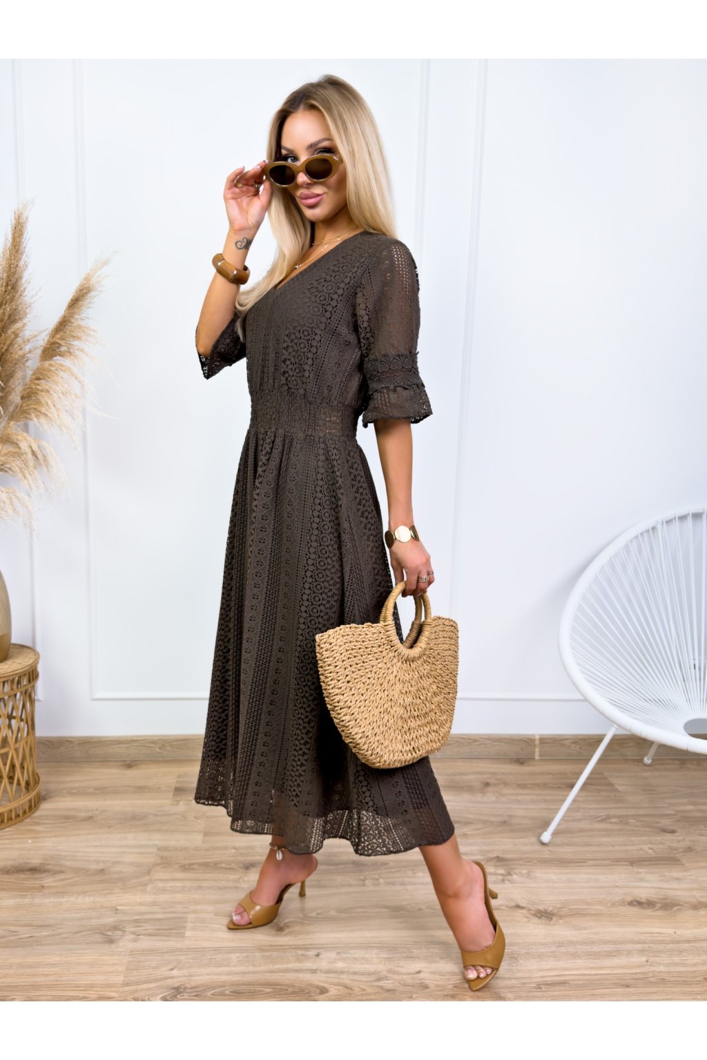 Krásne čipkované šaty s 3/4 rukávmi. Podšité výstrihom do V a elastickým pásom. Jemné krajkové šaty sú stelesnením vycibrené a veľmi ženskej módy, ktorá sa ľahko nosí a skvele vyzerá. Navyše patrí medzi top trendy tohtoročnej sezóny, takže pokiaľ ste sa s nimi ešte nezoznámili, je najvyšší čas.