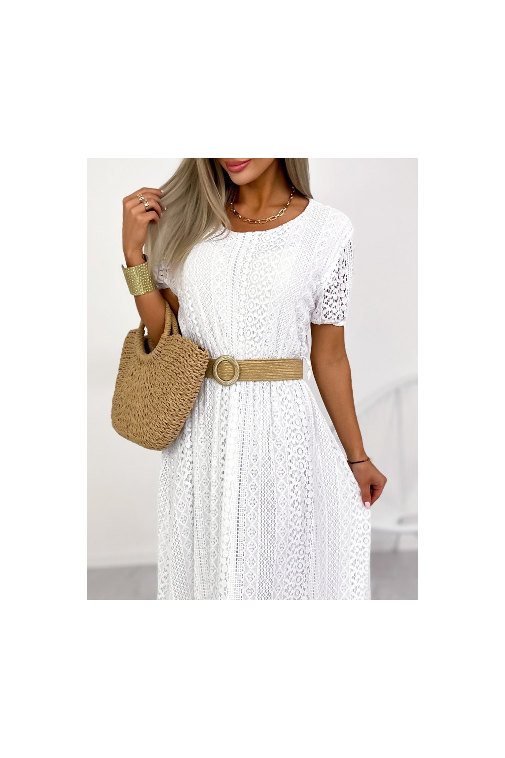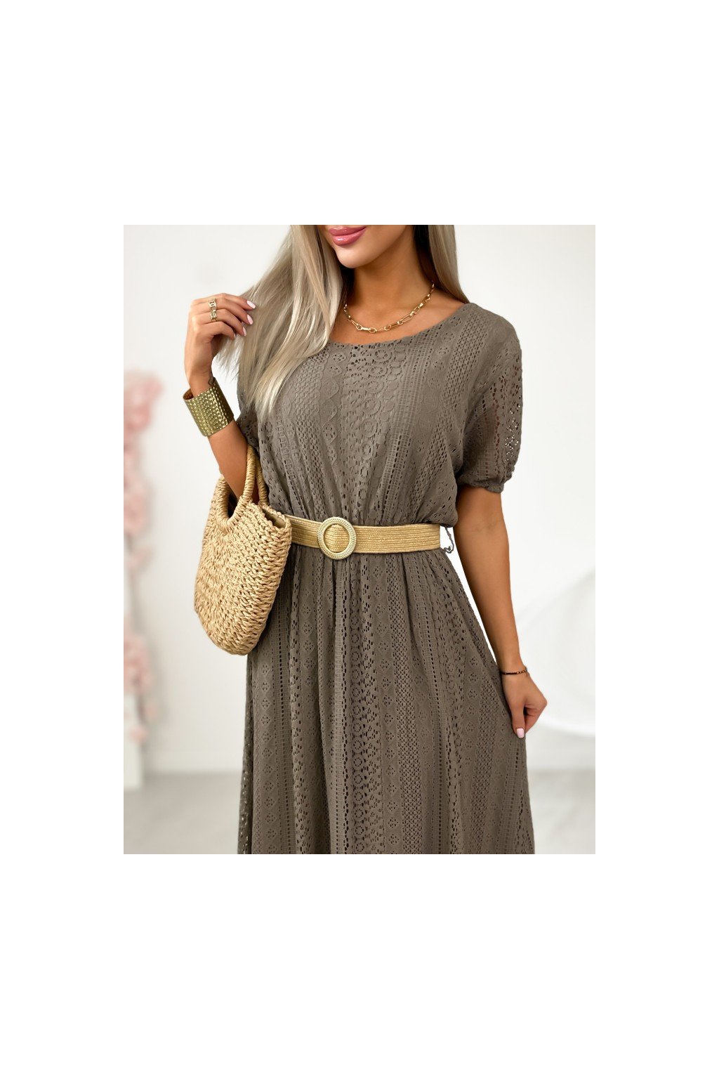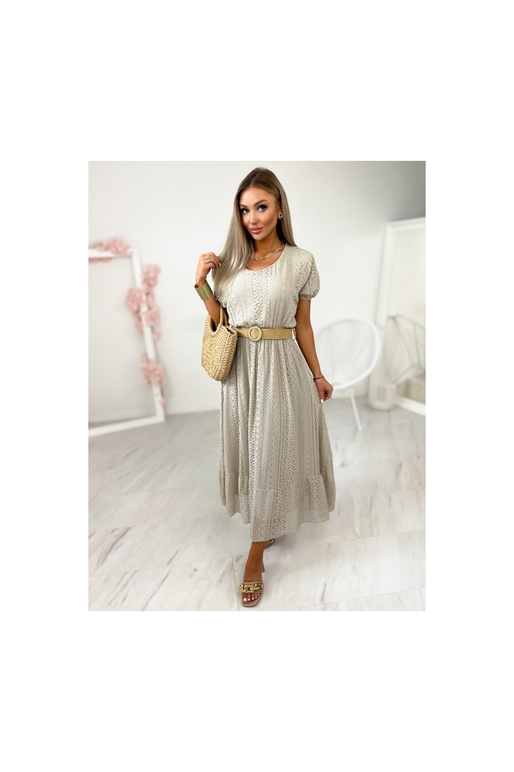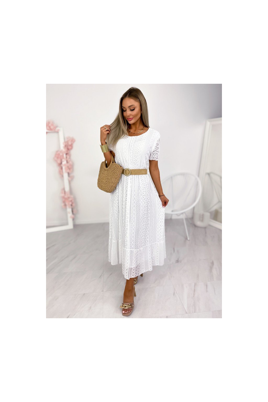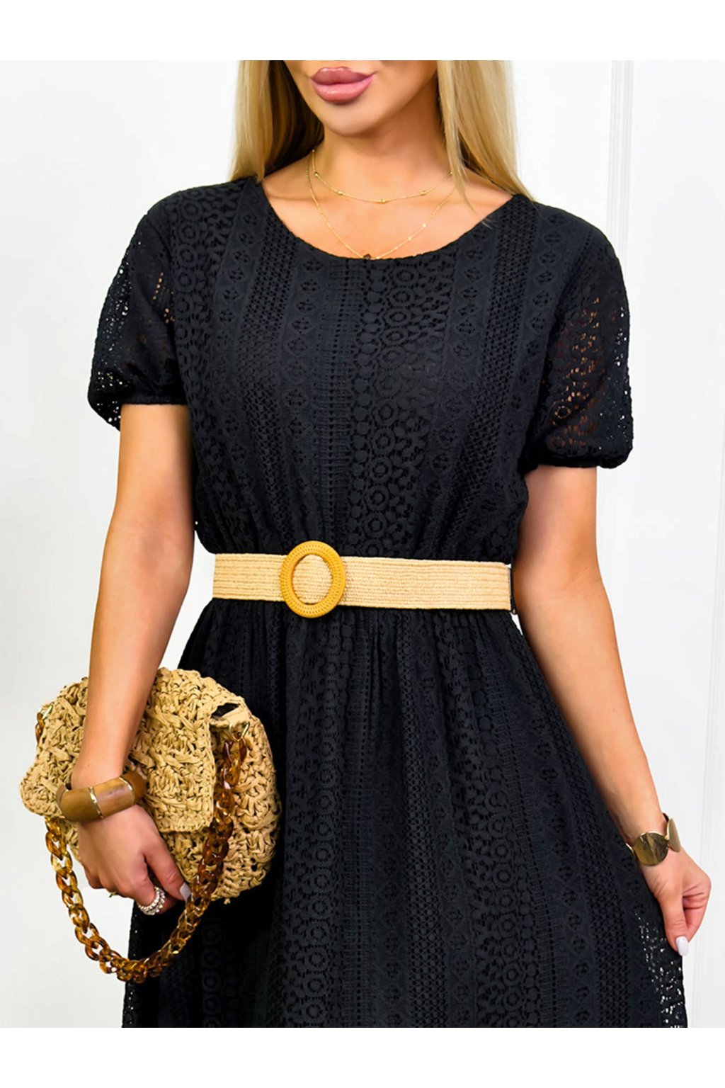 Očarujúce, podšité čipkované šaty. Vyrobené z pohodlnej bavlny. Majú elastický pás a štýlový opasok. Šaty sa zapínajú vzadu na gombík. Nafúknuté rukávy sú zakončené gumou. Jemné krajkové šaty sú ztelesnením vycibrenej a veľmi ženskej módy, ktorá sa ľahko nosí a skvele vyzerá. Navyše patrí medzi top trendy tohtoročnej sezóny, takže pokiaľ ste sa s nimi ešte nezoznámili, je najvyšší čas.