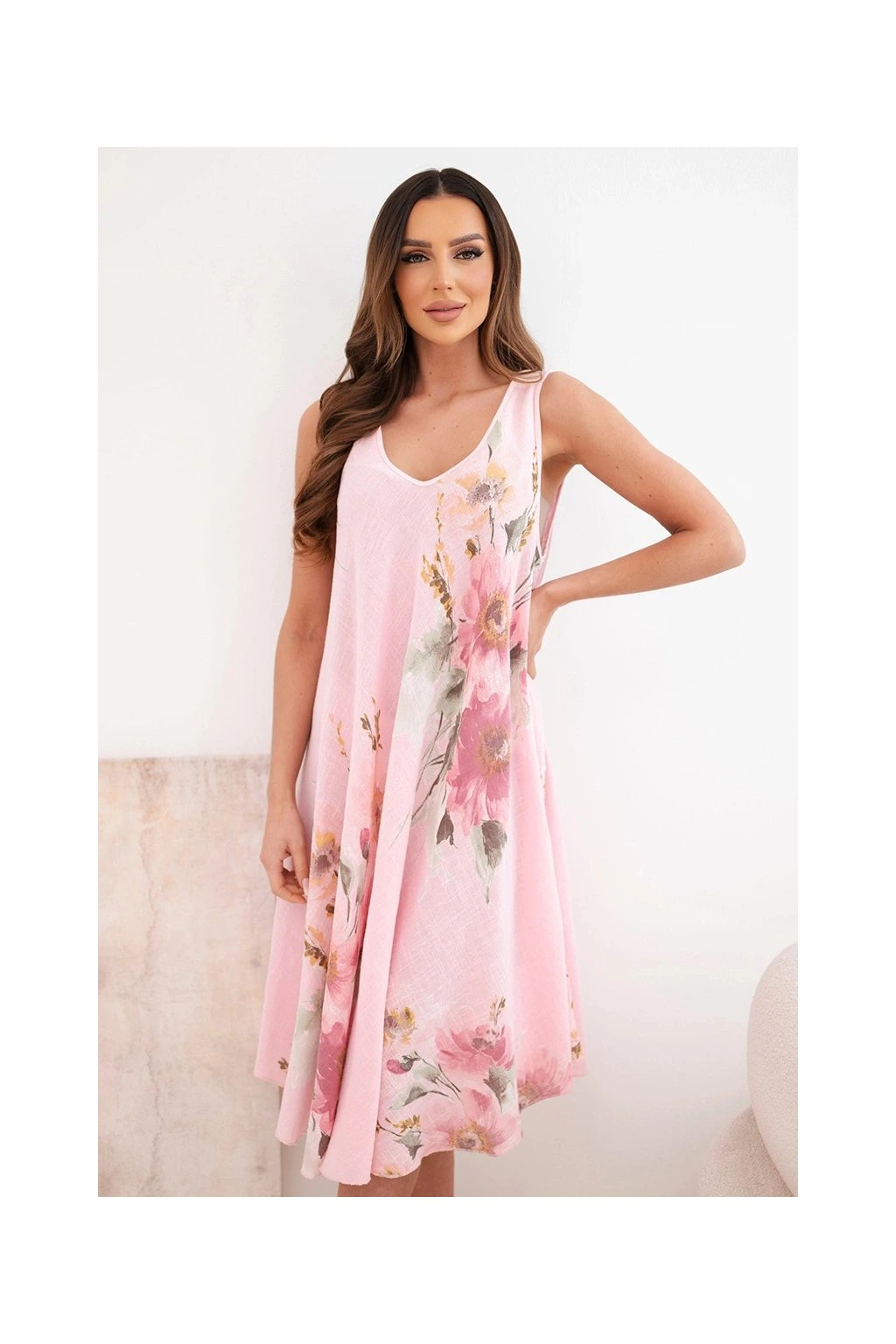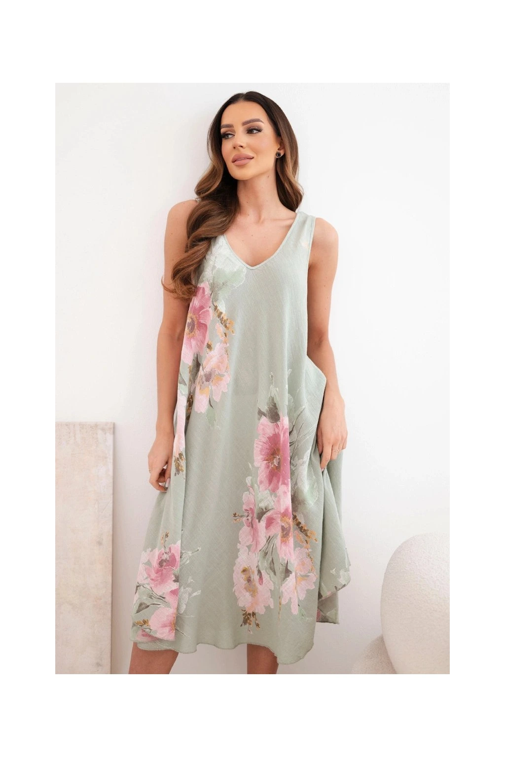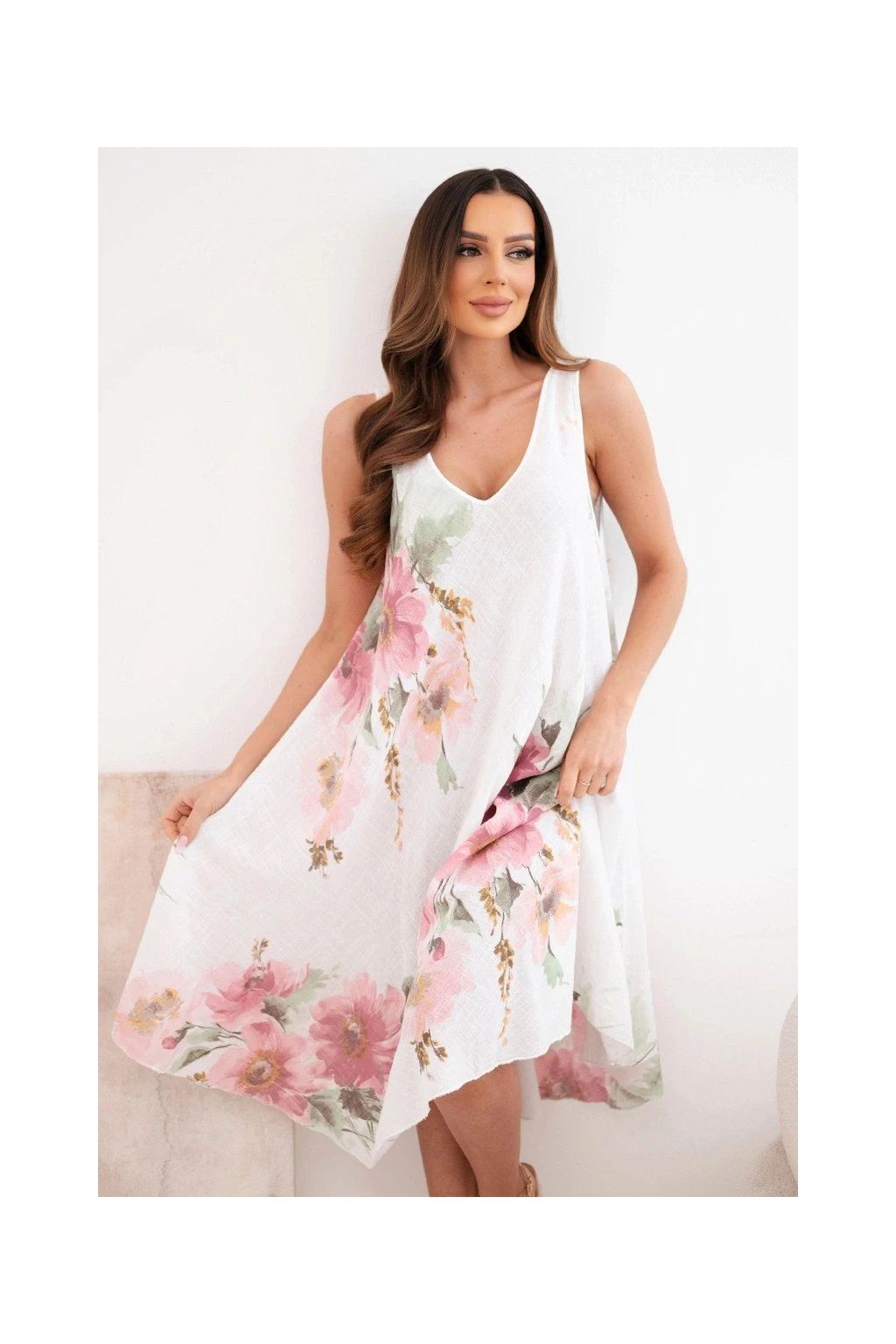 Tieto dámske voľné šaty zo 100% bavlny sú ideálnou voľbou na každodenné nosenie počas teplých dní.,ss kvetinovým motívom dodáva modelu romantický a svieži vzhľad.