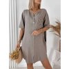 Model má výstrih do V, krátky rukáv a minimalistický dizajn bez vzoru, ktorý je nadčasový a ľahko kombinovateľný. Šaty sú vhodné na bežné nosenie, dovolenku aj letné mestské outfity.