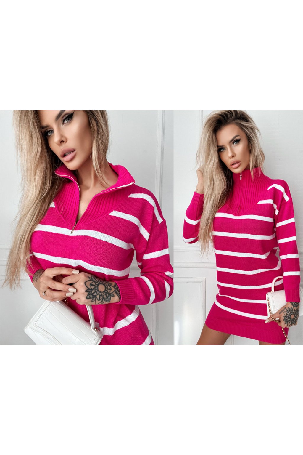 Dámské teplé, pruhované svetrové šaty se stojáčkem a zipem.