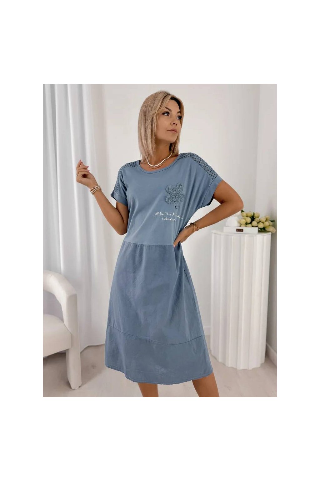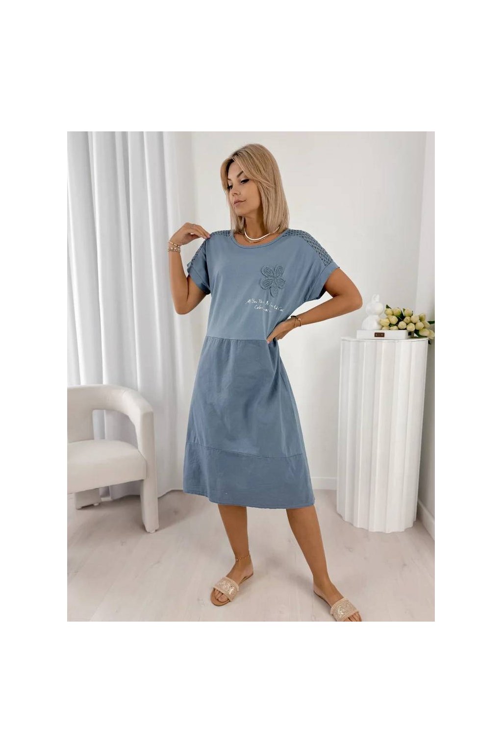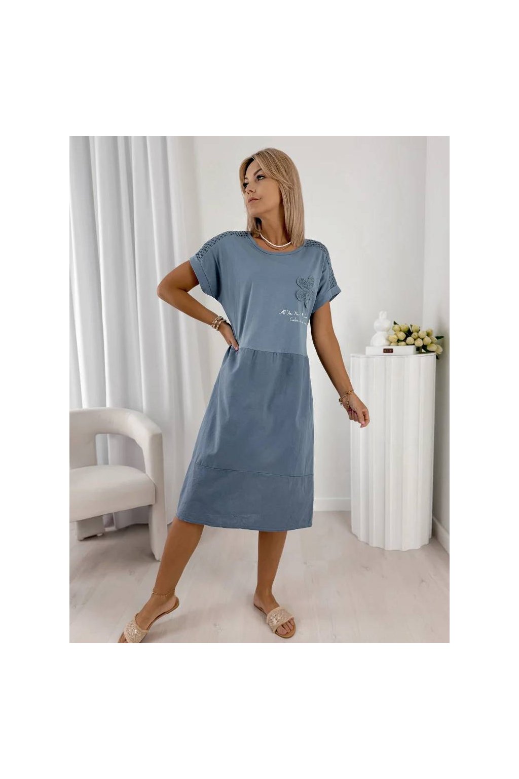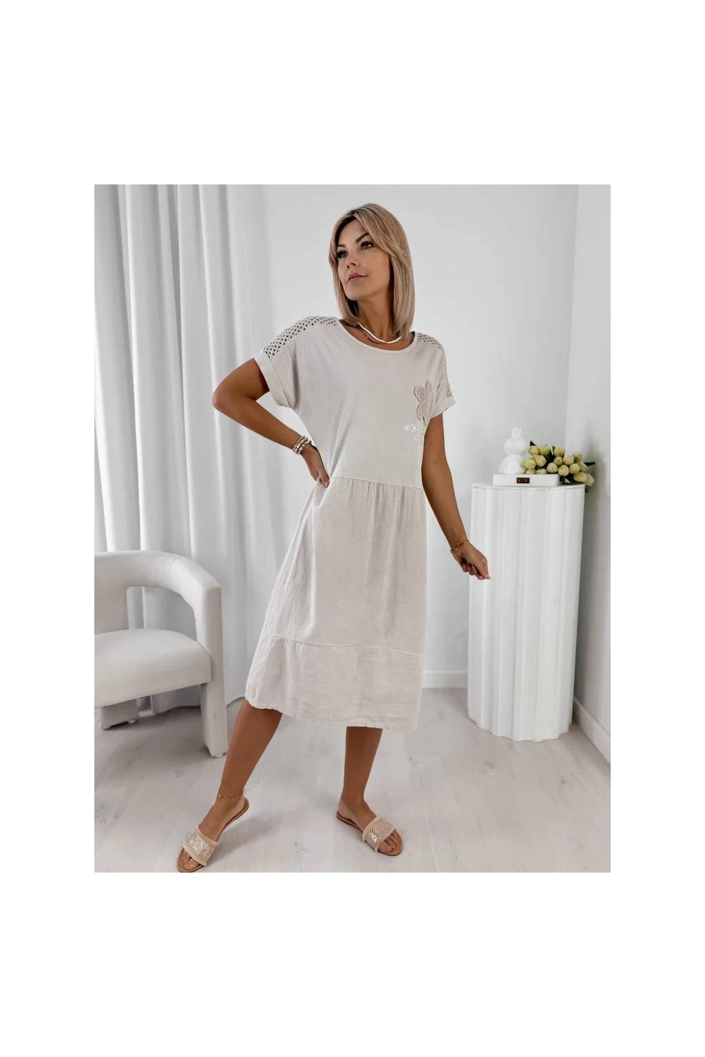 Elegantné dámske midi šaty z bavlny a ľanu, vyrobené v Taliansku. Model vyniká prírodným materiálom, jemným potlačou s výšivkou a pohodlným strihom, ktorý lichotí postave a zabezpečuje komfort počas celého dňa.