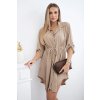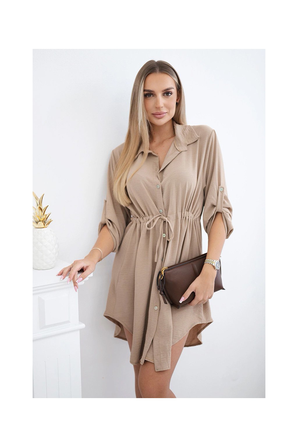 Šaty so zapínaním na gombíky a zaväzovaním v páse je perfektnou voľbou pre looky pre rôzne príležitosti. Model má predĺžený, asymetrický strih. Táto varianta má golier a dlhé, nastaviteľné rukávy. Možno použiť aj ako dlhá košeľa alebo tunika.