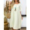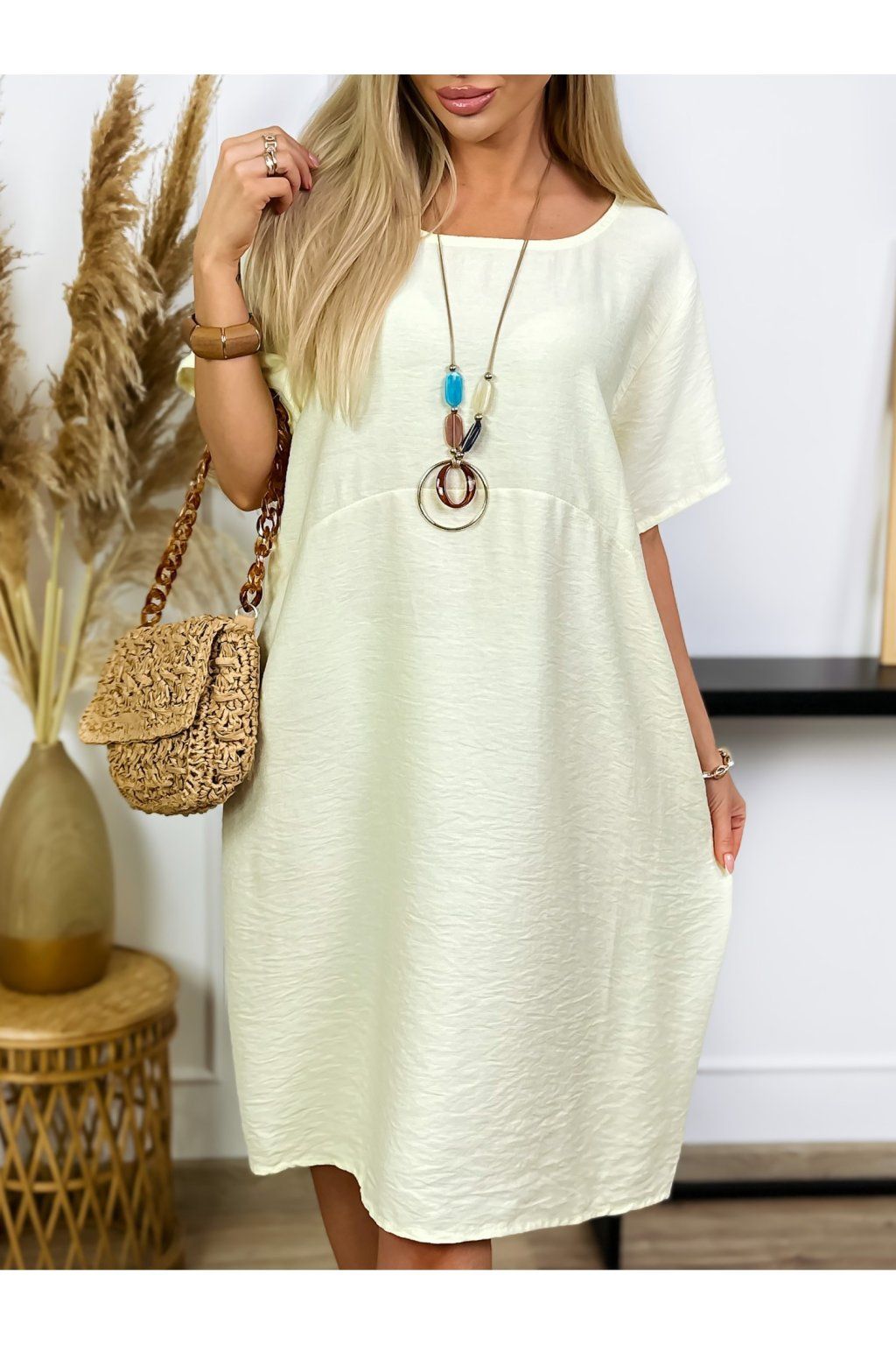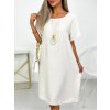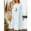 Voľné šaty zo vzdušnej viskózy. Rovný strih s ozdobným prešívaním pod prsiami. Materiál je stredne elastický, príjemný na nosenie. Ideálne na horúce letné dni. Prívesok je súčasťou setu (jeho vzor sa môže líšiť). Strih voľný, rozšírený-skvele umožňuje skryť nedostatky postavy. Krásny zdobený výstrih. Pohodlné a praktické