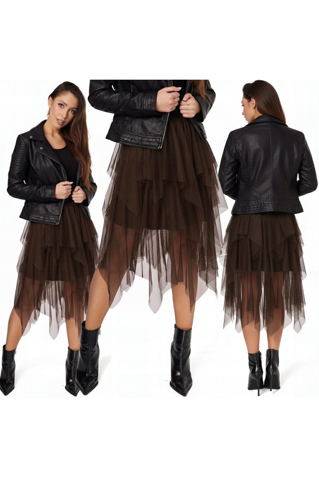 Vzdušný vrstvený tyl dodáva modelu ľahkosť a pohyb, zatiaľ čo podšívka zabezpečuje komfort pri nosení. Asymetrický strih vytvára efektnú siluetu a dodáva outfitom módny charakter.