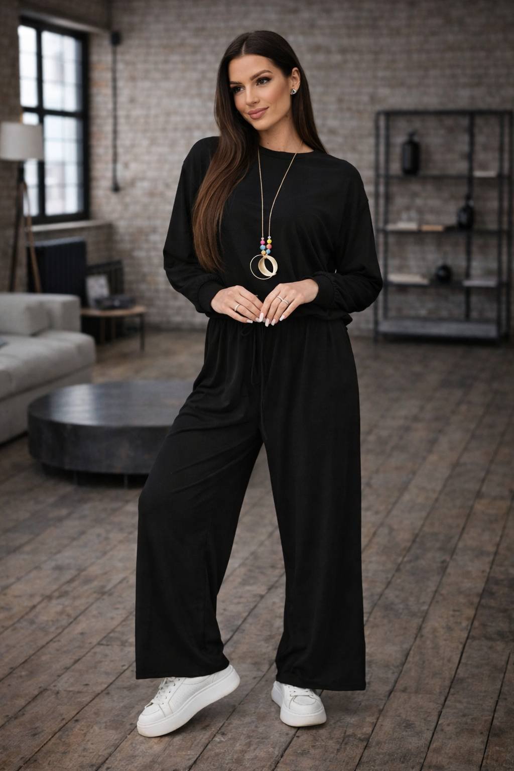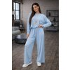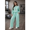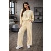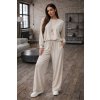 Moderná dámska súprava z jemnej viskózy, ktorá ponúka maximálne pohodlie a nadčasový štýl. Voľná mikina so sťahovaním v spodnej časti a široké nohavice s elastickým pásom vytvárajú ležérny a elegantný outfit.