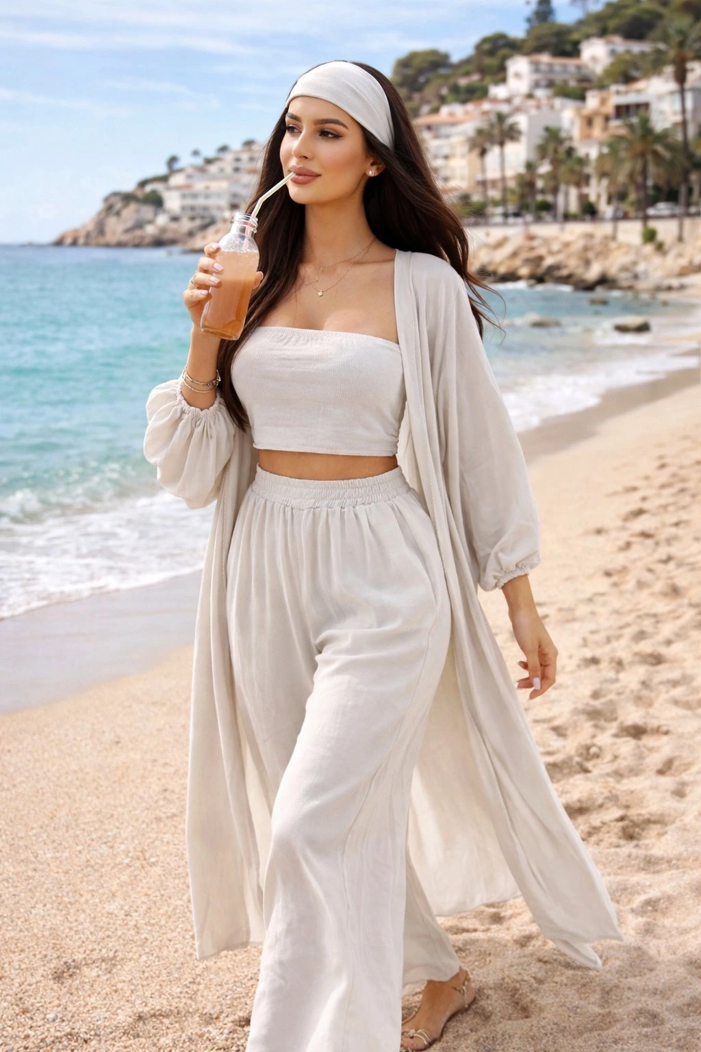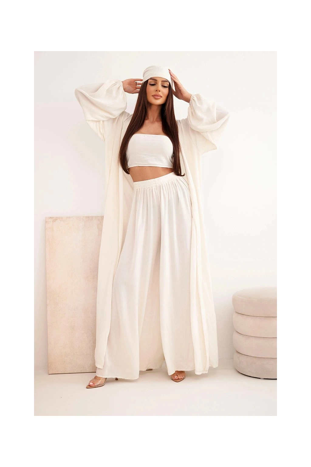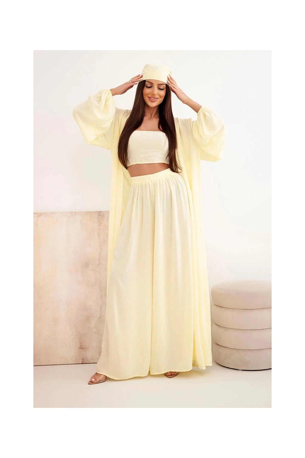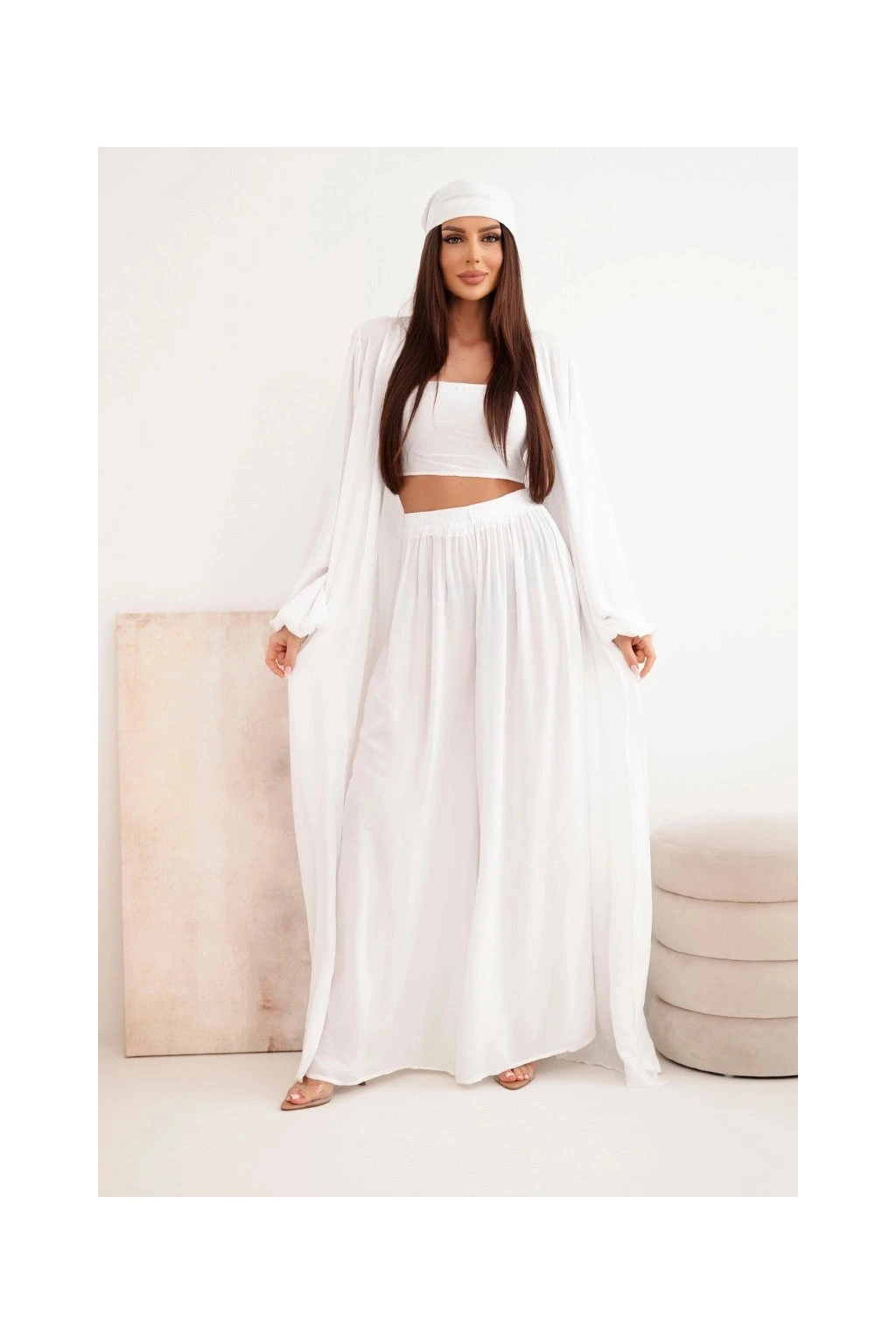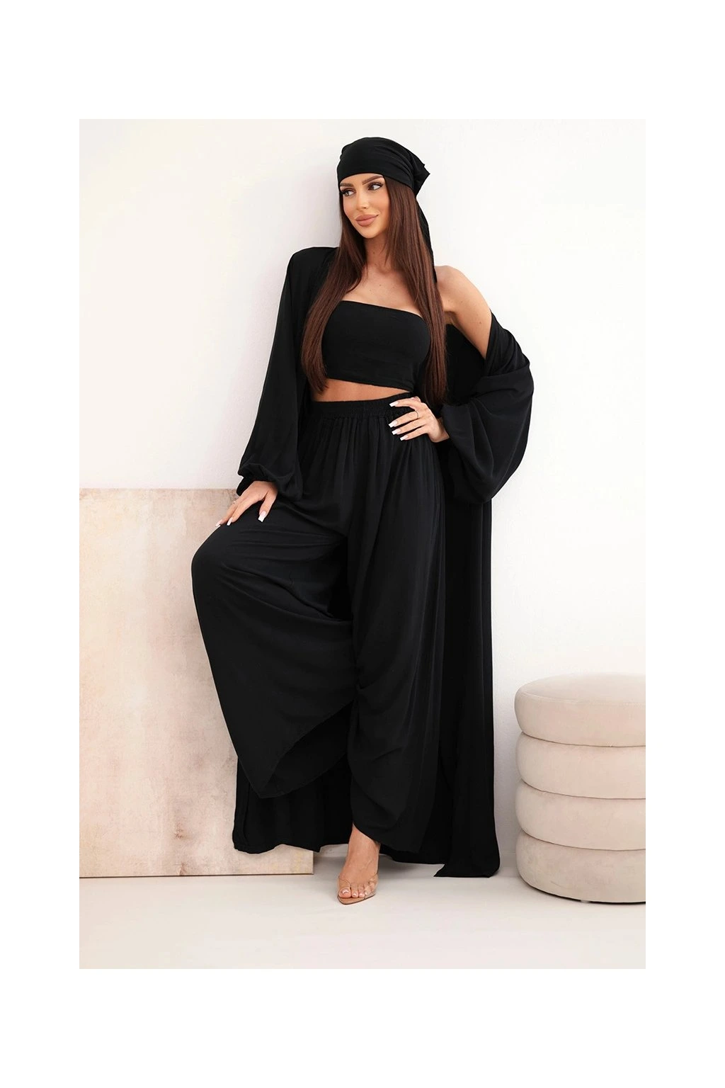 Objav dokonalú kombináciu štýlu a pohodlia s dámskym kompletom 4v1 K3354. Tento nadčasový set obsahuje voľný top, ľahkú košeľu, pohodlné nohavice a modernú čelenku, vďaka čomu vytvoríš kompletný outfit bez námahy.