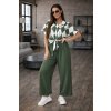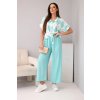 Štýlový dámsky viskózový komplet, ktorý pozostáva z krátkej košele s golierikom a zaväzovaním v páse a zo širokých nohavíc s elastickým pásom. Ľahká a priedušná tkanina s prímesou elastanu zabezpečuje pohodlie počas jarných a letných dní.