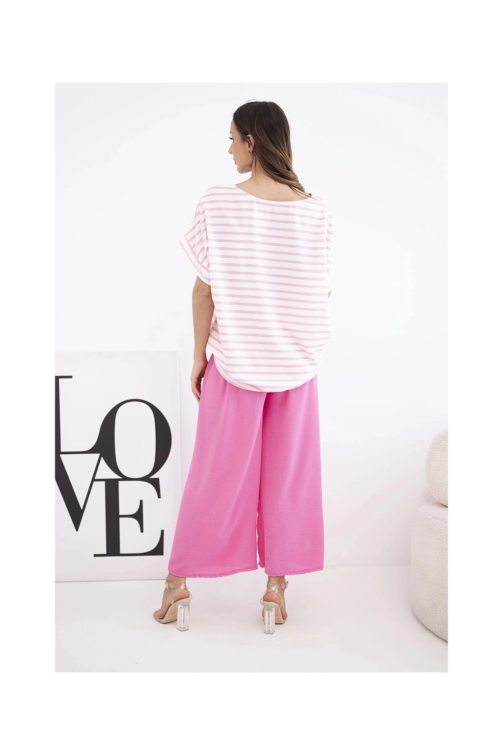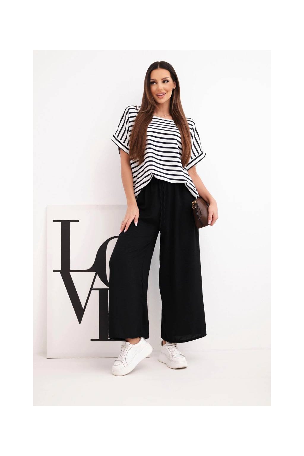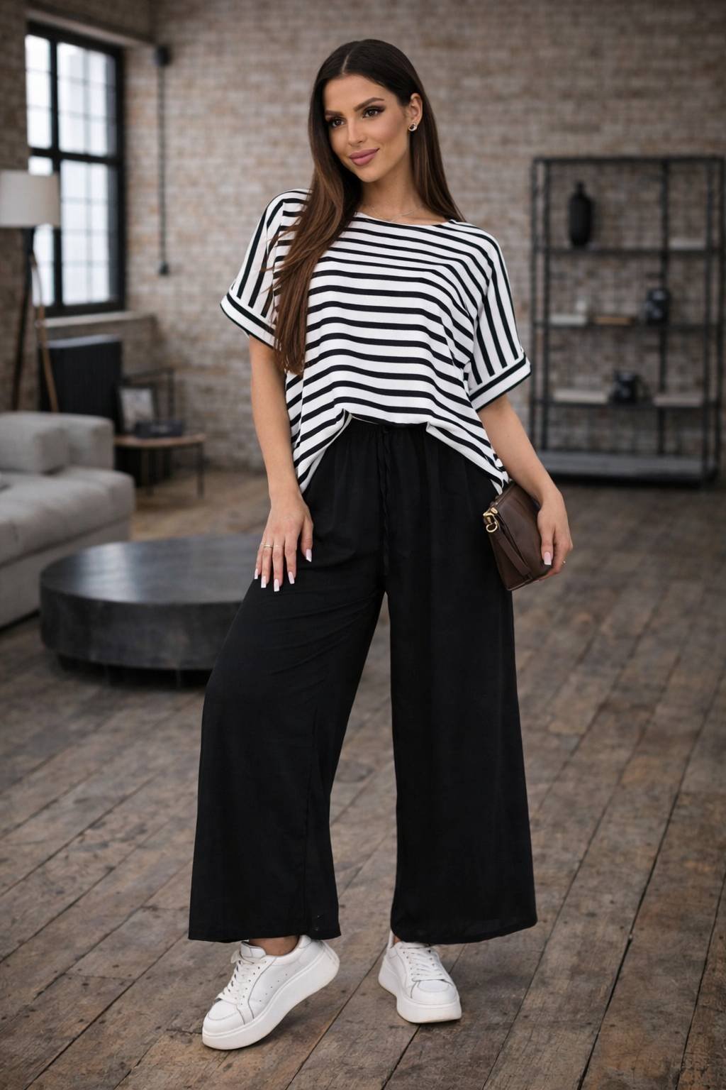 Dámsky viskózový komplet – pruhovaná blúzka a široké nohavice