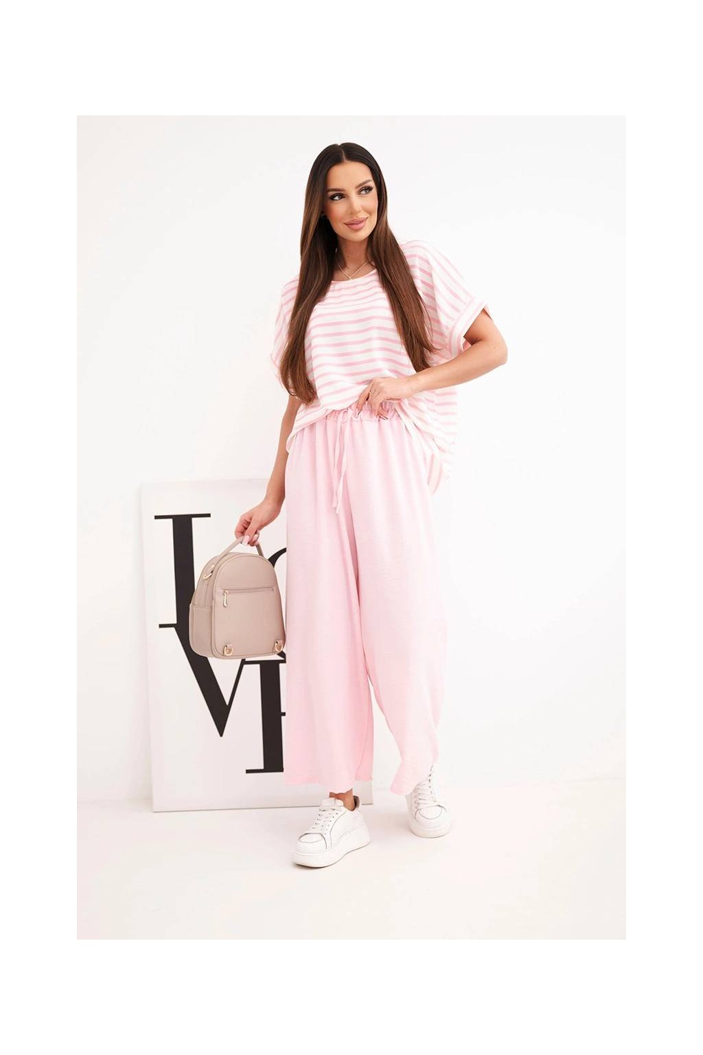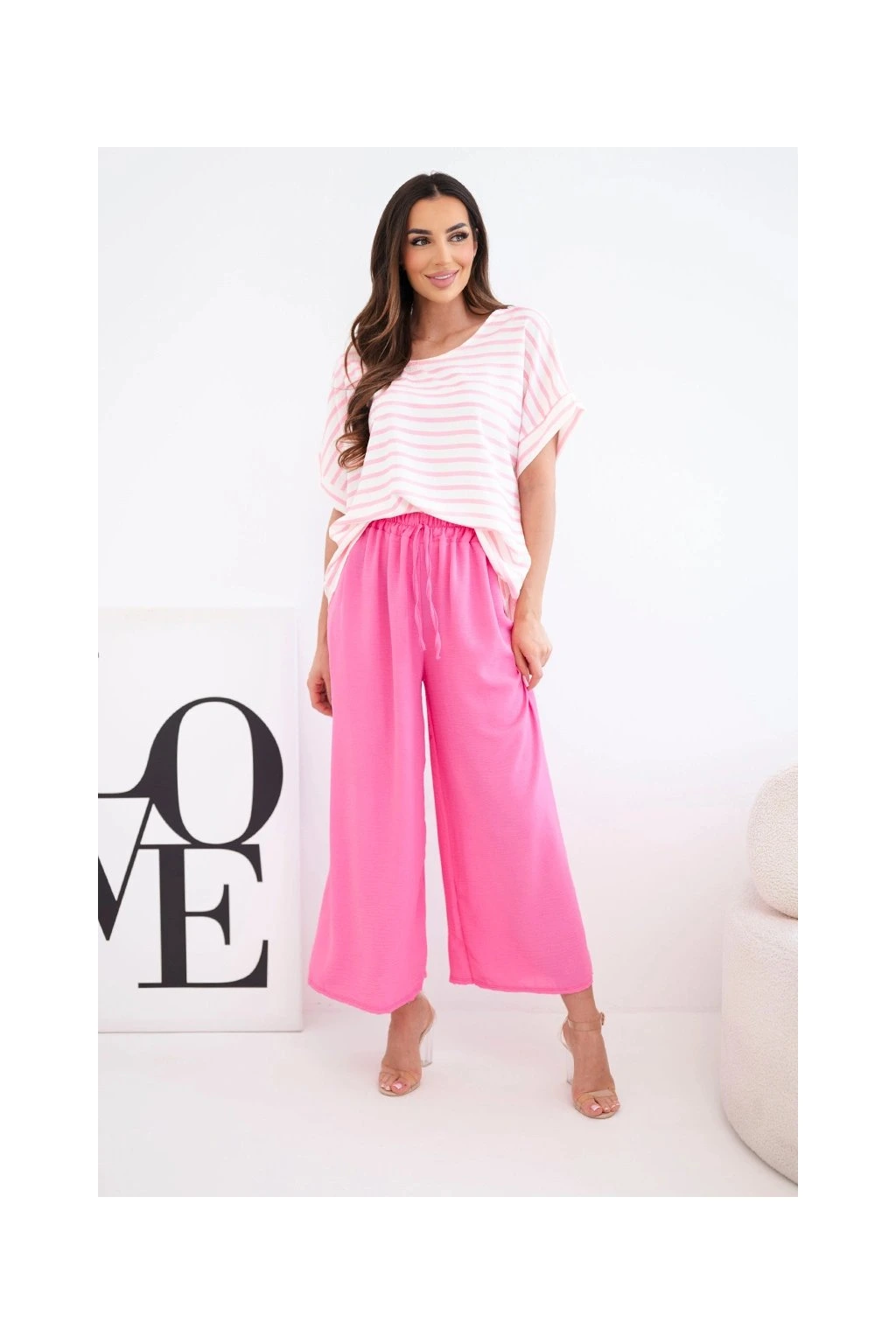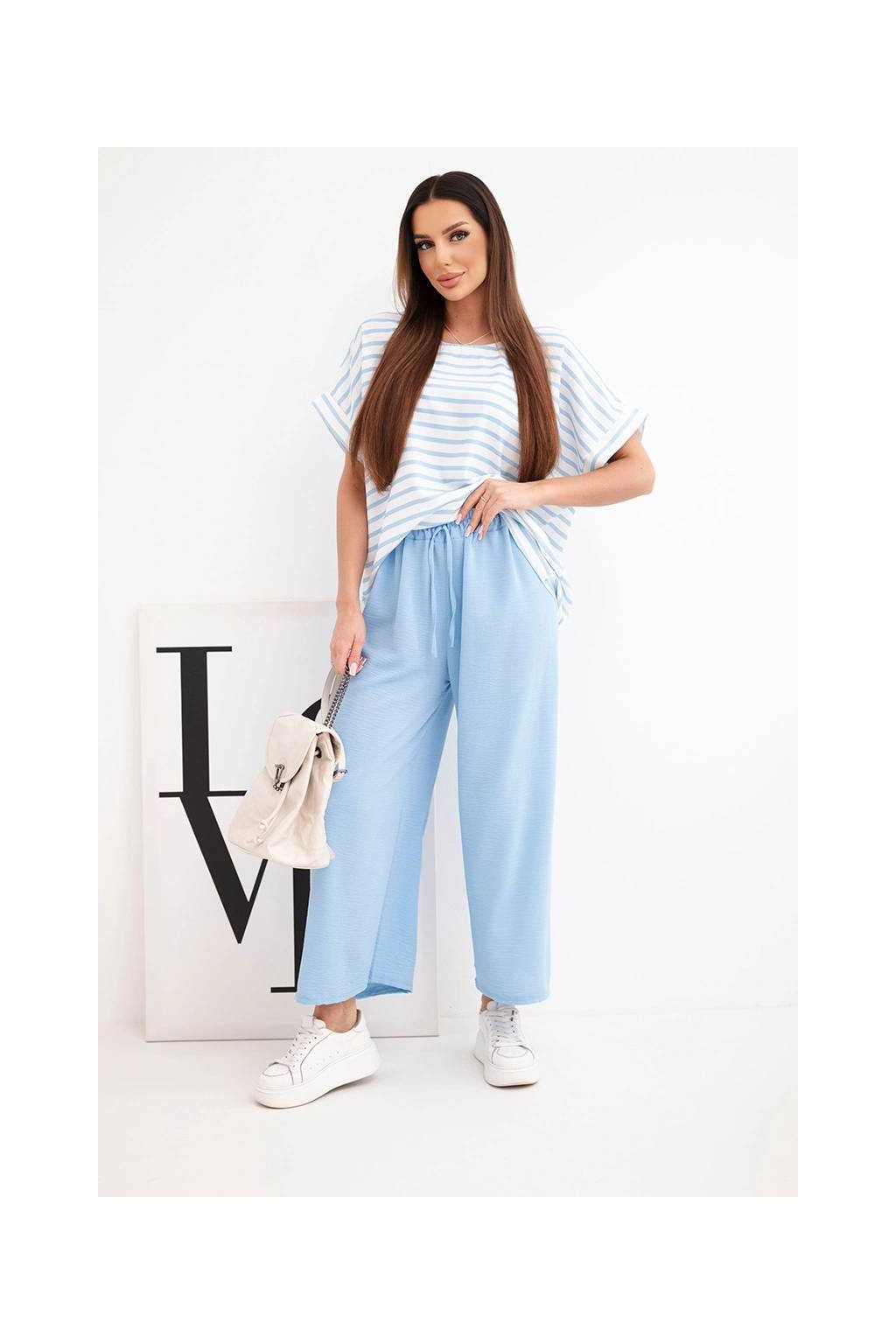 Dámsky viskózový komplet – pruhovaná blúzka a široké nohavice