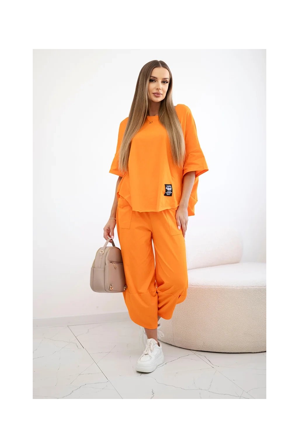 Jedinečná súprava vyrobená z vysoko kvalitného materiálu je dokonalým základom mnohých každodenných lookov. Blúzka s okrúhlym výstrihom a nášivkou na spodnej časti. Nohavice 3/4 s elastickým pásom a bočnými vreckami voľný, pohodlný štýl!