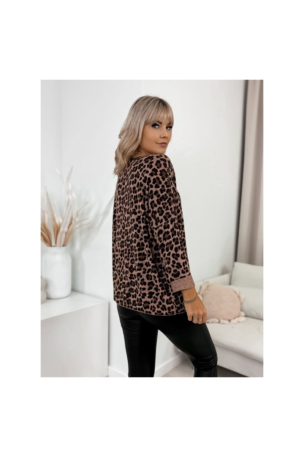 Dámsky štýlový sveter s leopardím vzorom je perfektnou voľbou pre ženy, ktoré hľadajú pohodlie, teplo a výrazný módny vzhľad. Vďaka zmesi angory, viskózy a vlny je sveter mimoriadne mäkký, príjemný na pokožke a krásne splýva na postave.