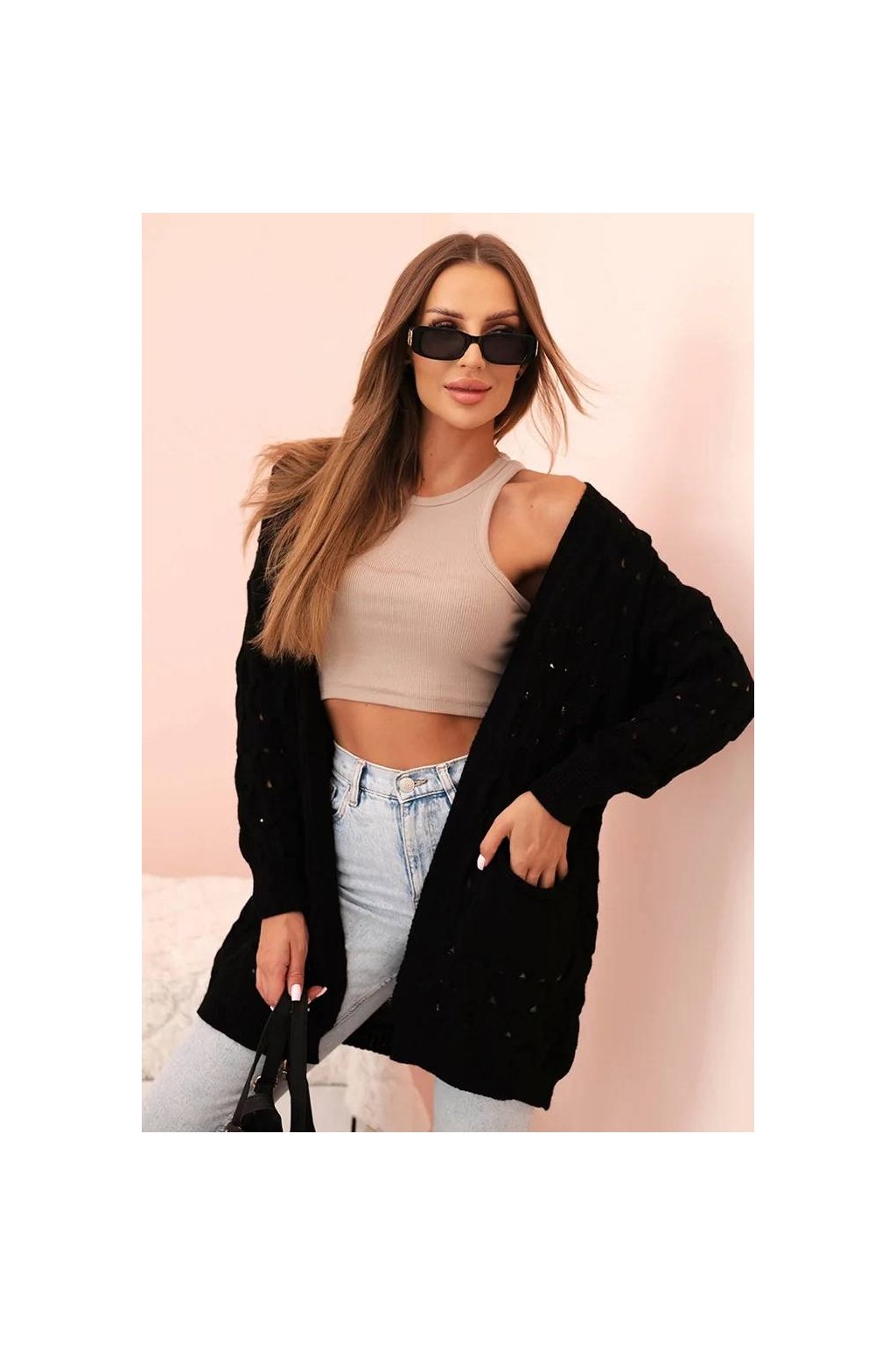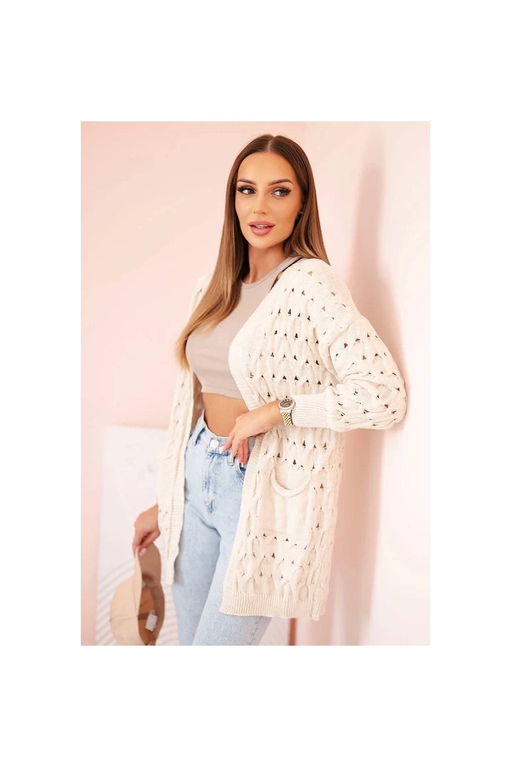 Tento dámsky ažúrový kardigán je skvelou voľbou pre ženy, ktoré si cenia pohodlie, štýl a originálny vzhľad. Vyrobený z mäkkého, na dotyk príjemného materiálu, vyniká módnym ažúrovým vzorom, ktorý mu dodáva ľahkosť a ženský šarm. Dlhší strih sa skvele hodí k legínam aj k úzkym rifliam. Kardigán má praktické predné vrecká, ktoré zvyšujú jeho funkčnosť, a absencia zapínania podčiarkuje jeho voľný, ležérny štýl. Ideálny na chladnejšie jarné a letné dni, vhodný aj ako štýlový doplnok do kancelárie alebo na prechádzku. Veľkosť je univerzálna a bude vhodná pre dámy nosiace veľkosti S, M alebo L.