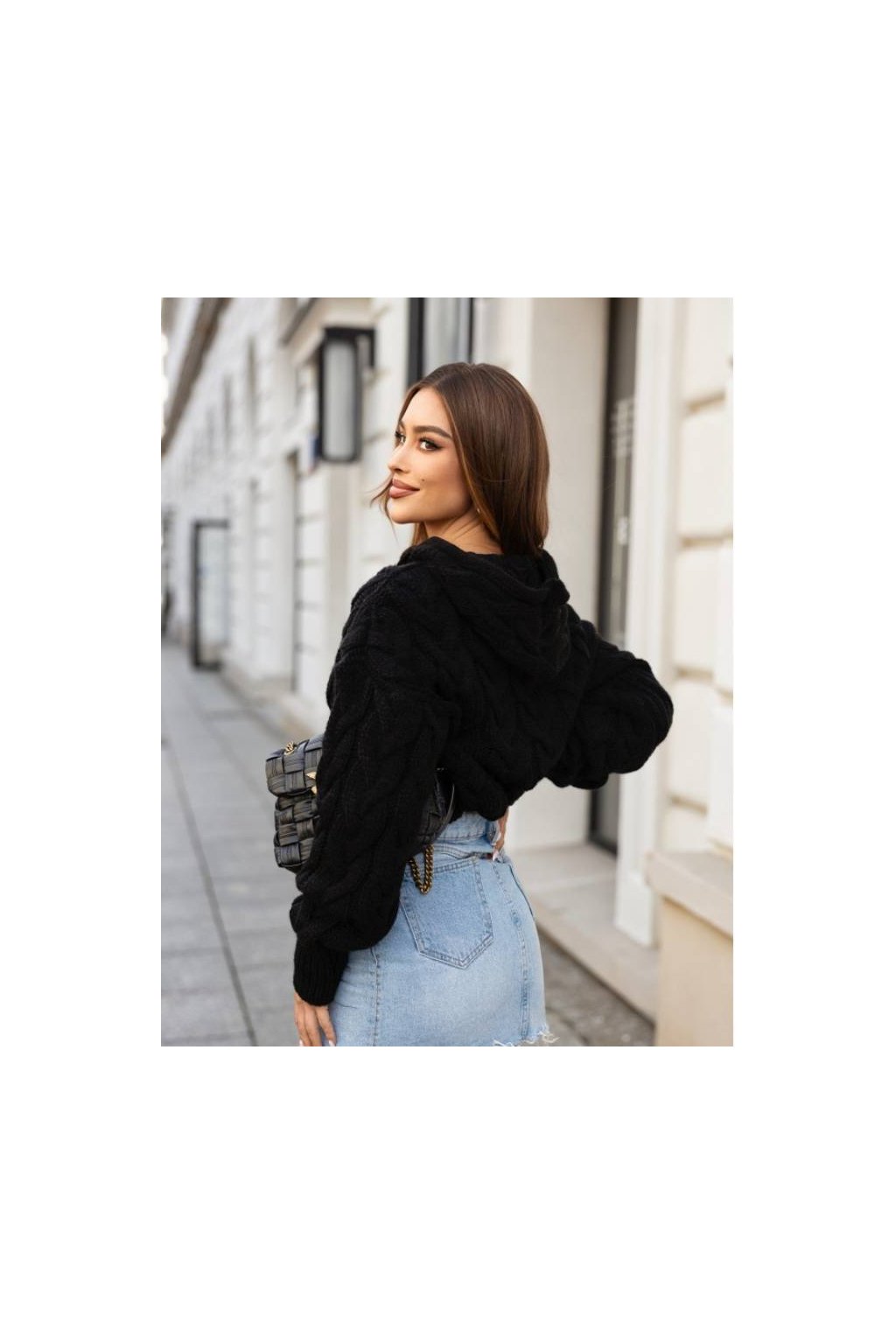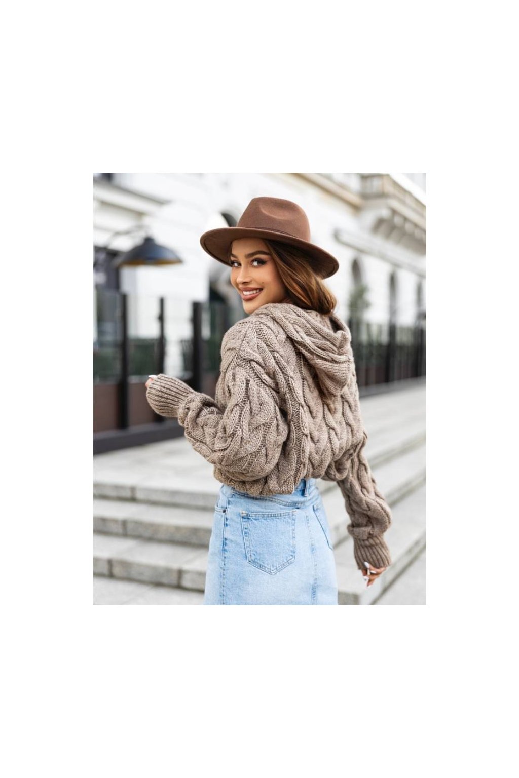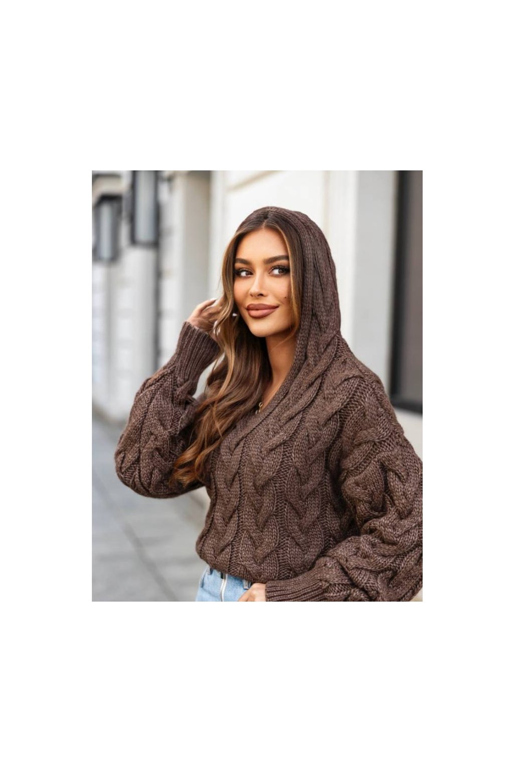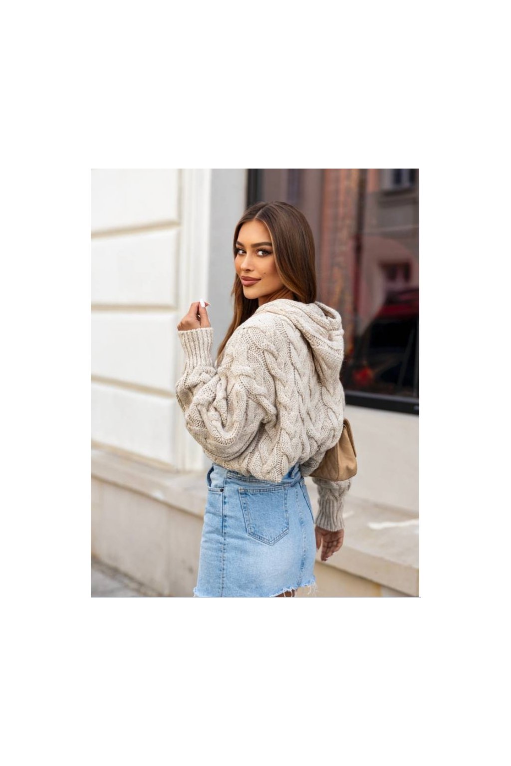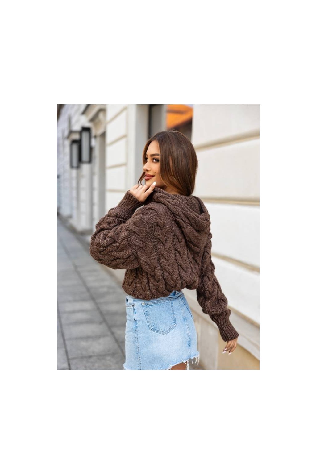 Sveter JK-ROCO je vyrobený z mäkkej priadze s výrazným vrkočovým vzorom, ktorý mu dodáva jedinečný vzhľad. Praktická kapucňa poskytuje pohodlie a ochranu počas chladných dní.