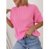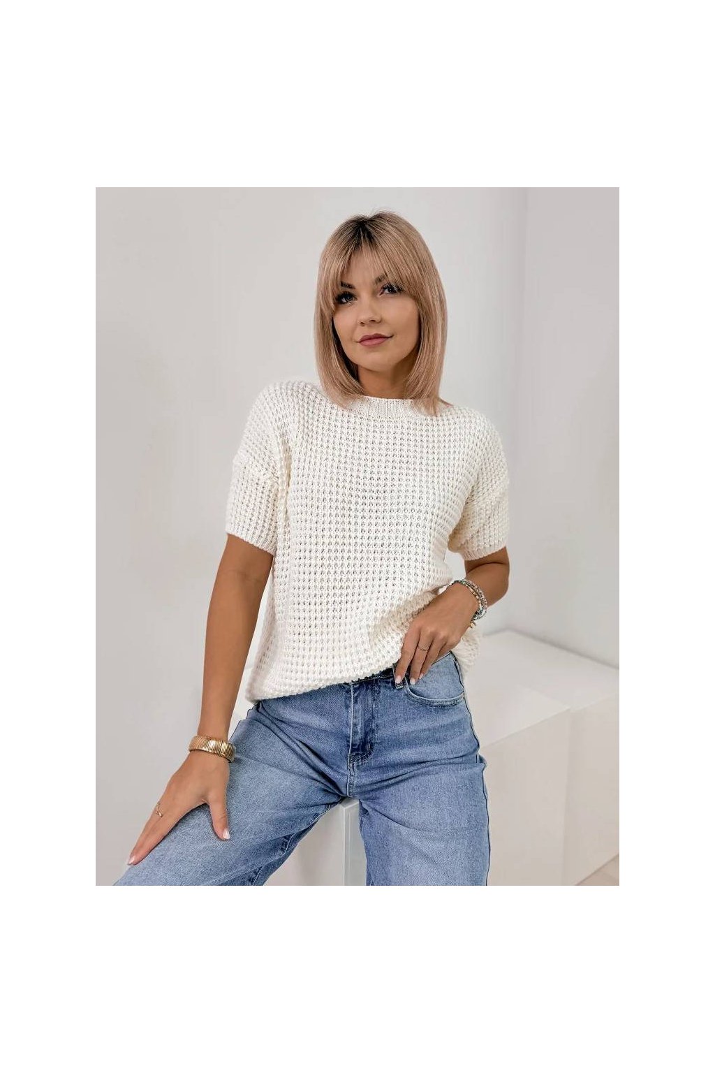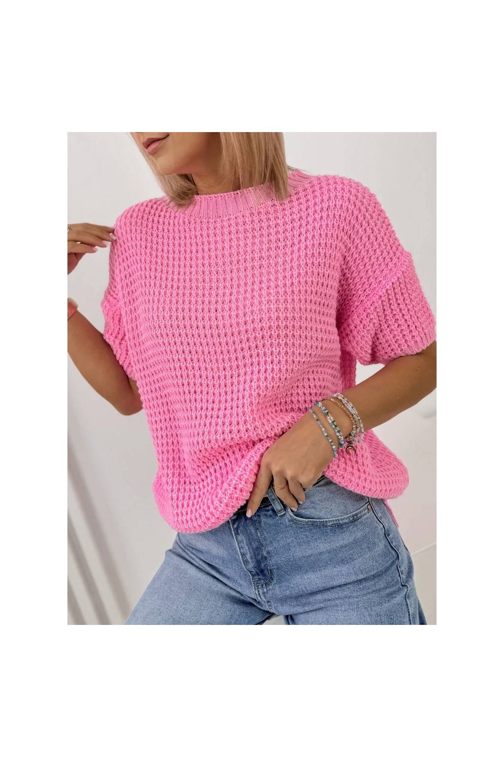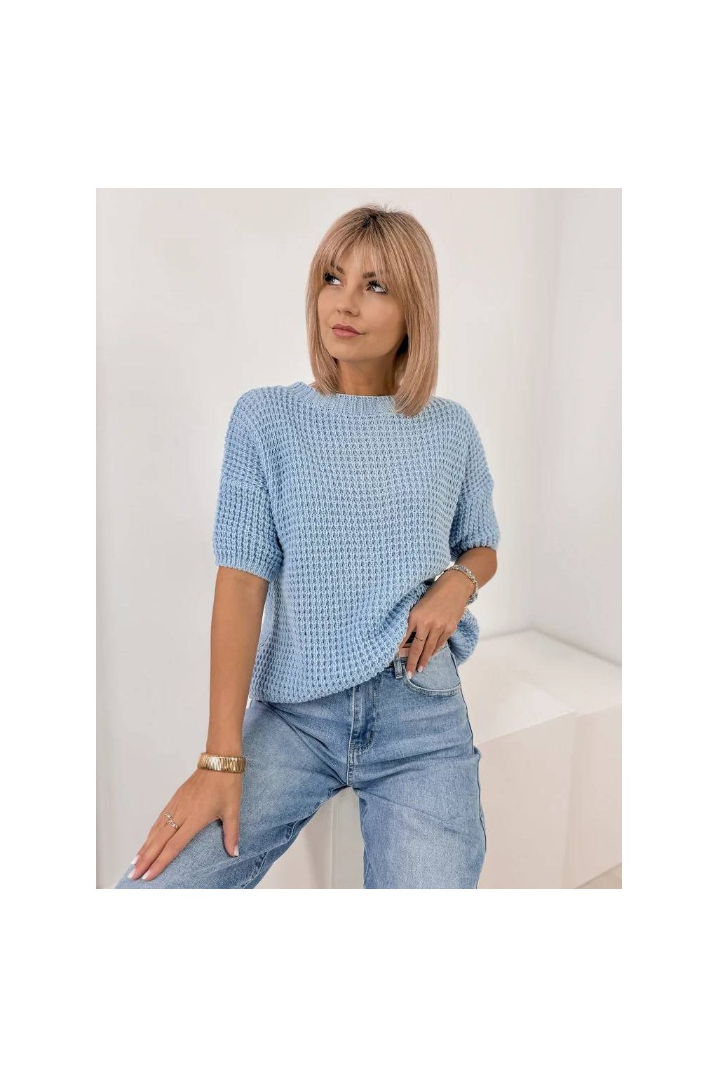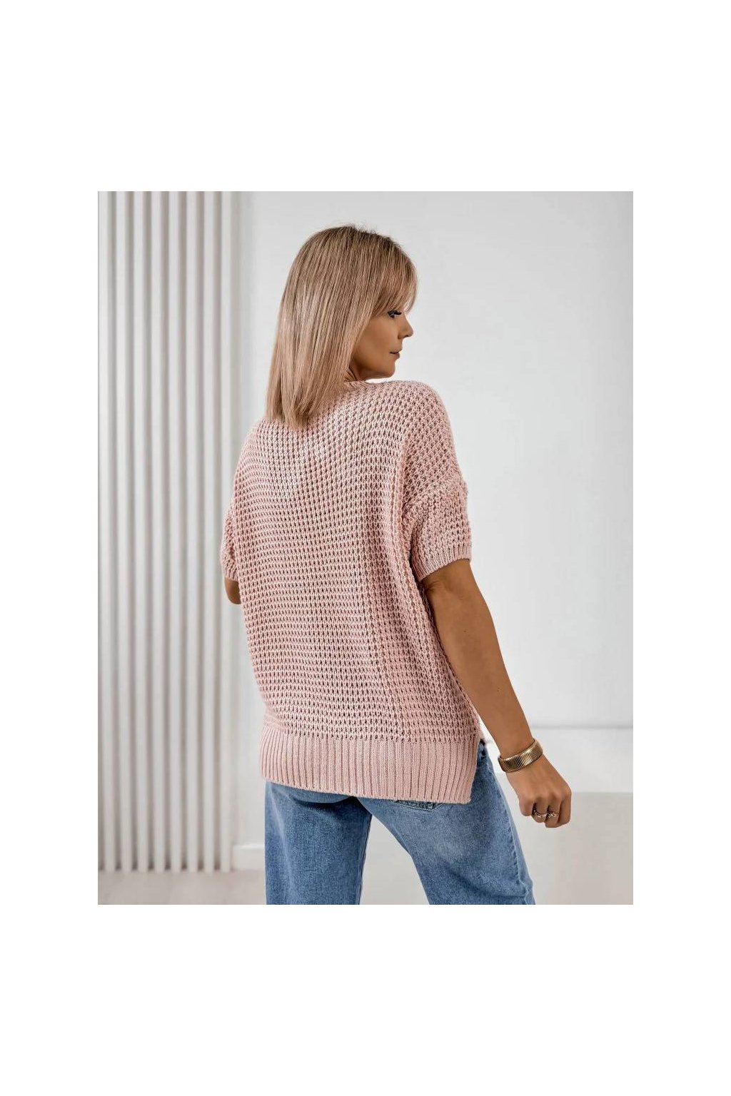 Dámsky pletený sveter s krátkym rukávom je pohodlným a štýlovým kúskom na každý deň. Voľný strih poskytuje maximálny komfort a krásne sa prispôsobí postave. Jemná pletená štruktúra dodáva svetru moderný vzhľad, zatiaľ čo okrúhly výstrih pôsobí nadčasovo a univerzálne.
