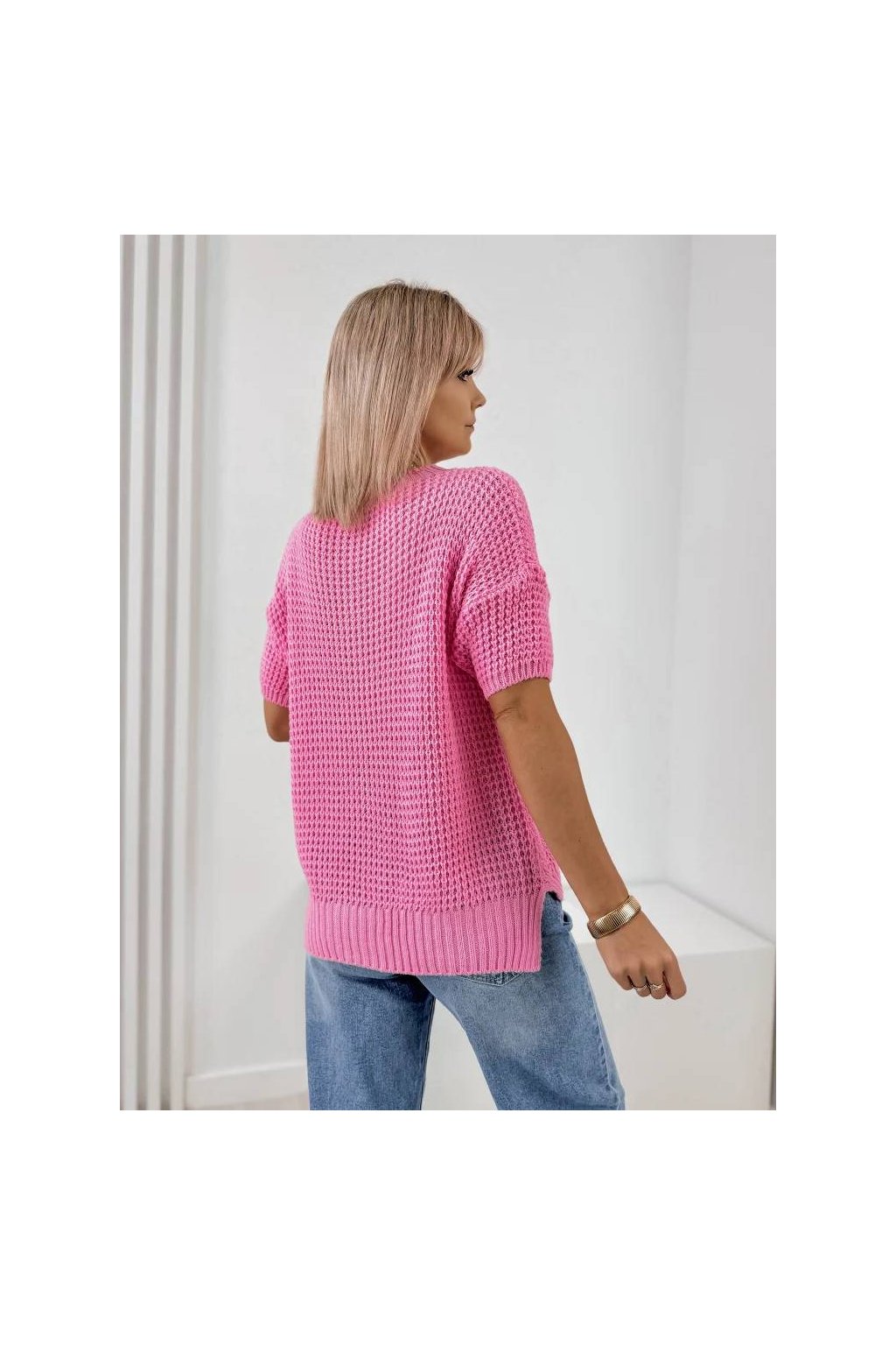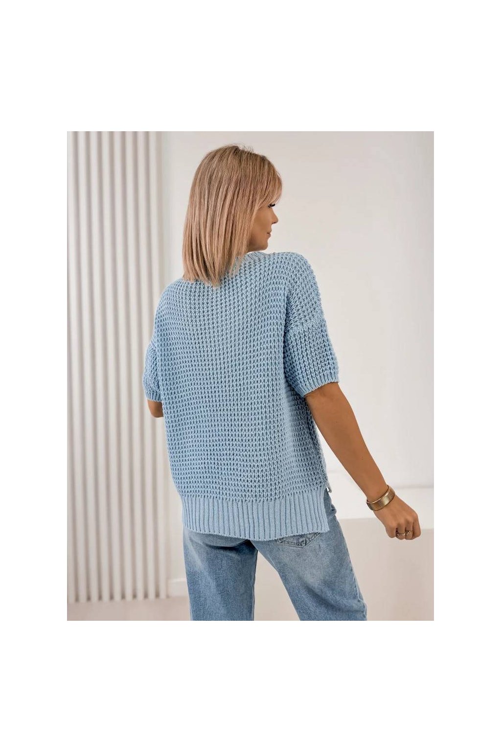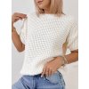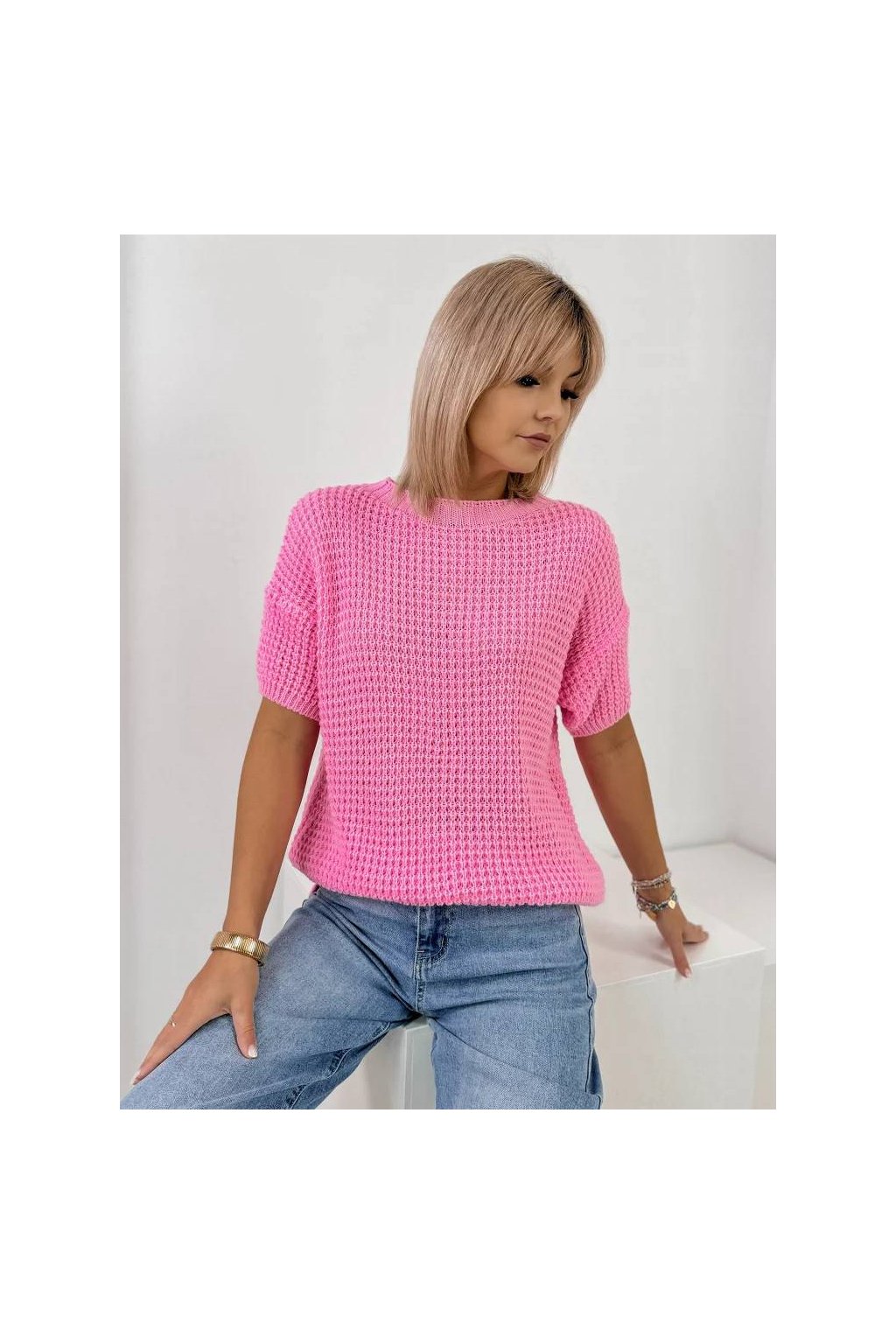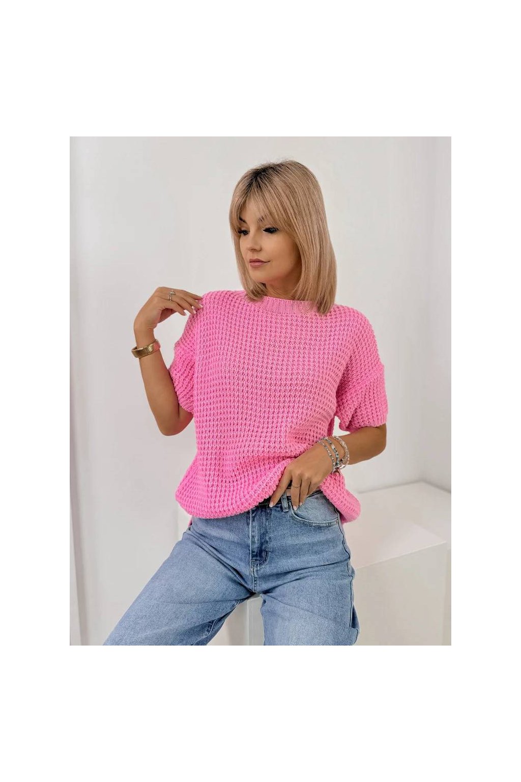Dámsky pletený sveter s krátkym rukávom je pohodlným a štýlovým kúskom na každý deň. Voľný strih poskytuje maximálny komfort a krásne sa prispôsobí postave. Jemná pletená štruktúra dodáva svetru moderný vzhľad, zatiaľ čo okrúhly výstrih pôsobí nadčasovo a univerzálne.