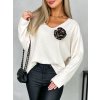 Výstrih, rukávy a spodná časť sú zakončené striebornou niťou. Zadný diel svetra je mierne dlhší a rameno je znížené.