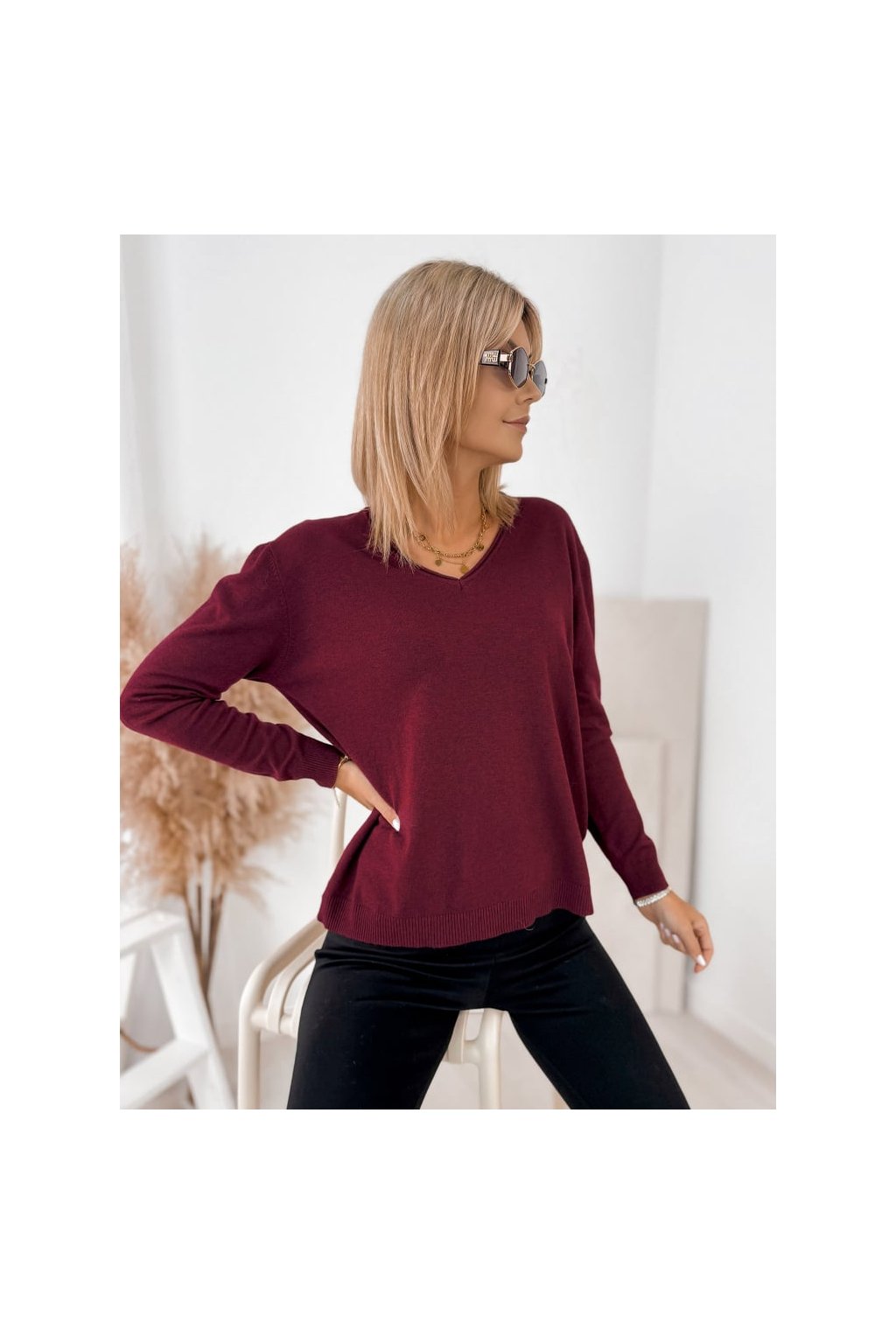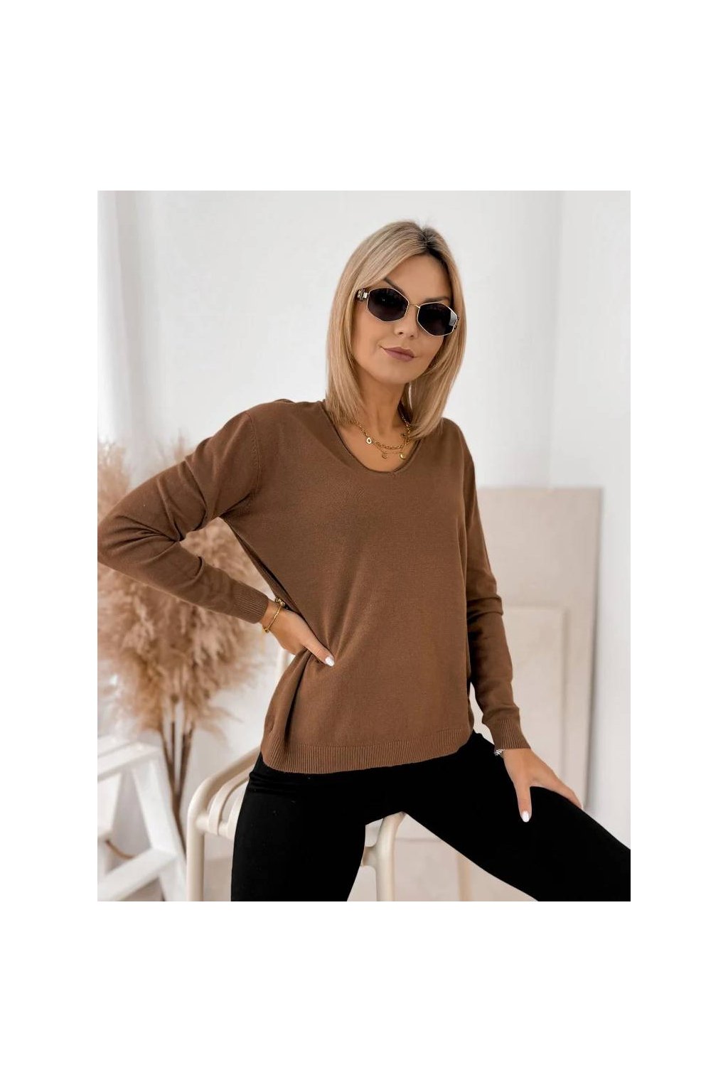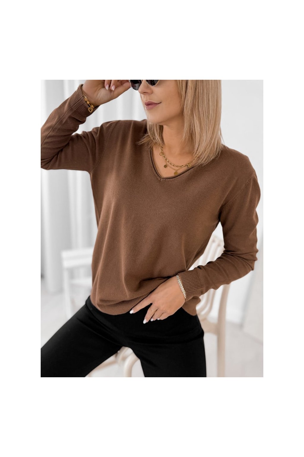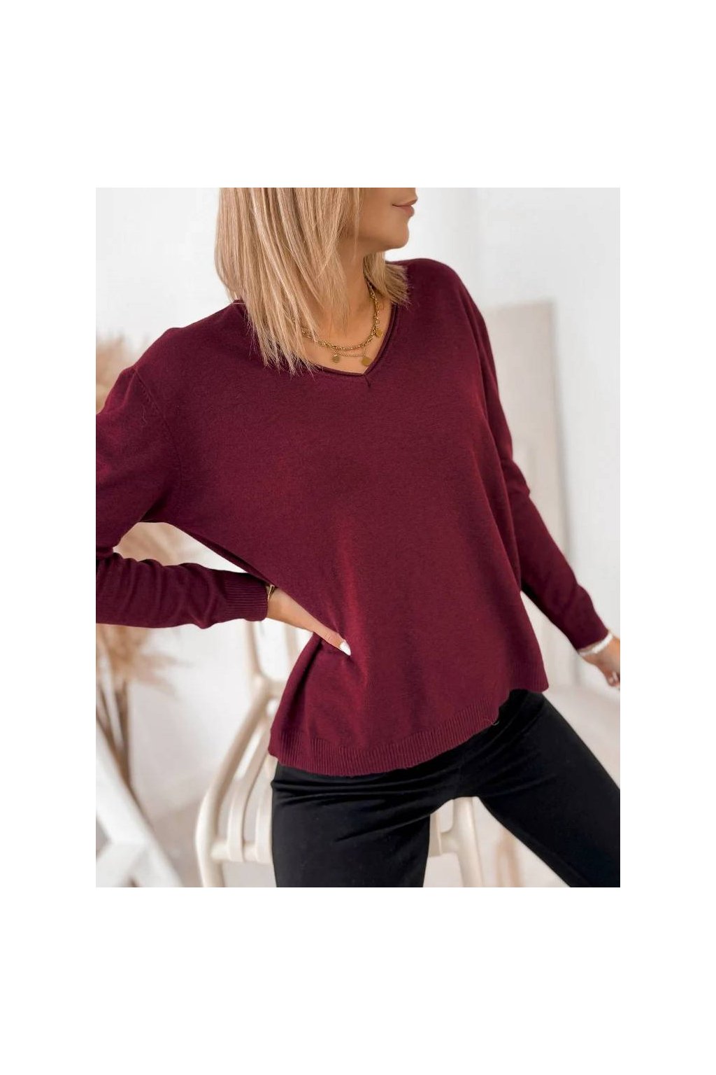 Elegantný dámsky sveter s výstrihom do „V“ je skvelou voľbou na bežné nosenie aj na elegantnejšie príležitosti.